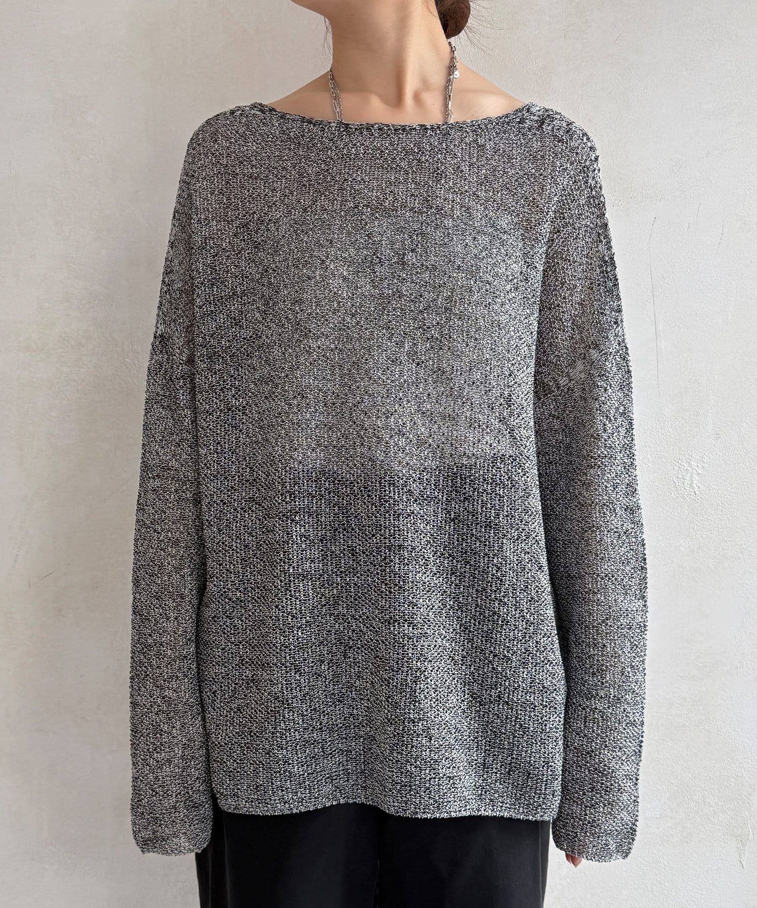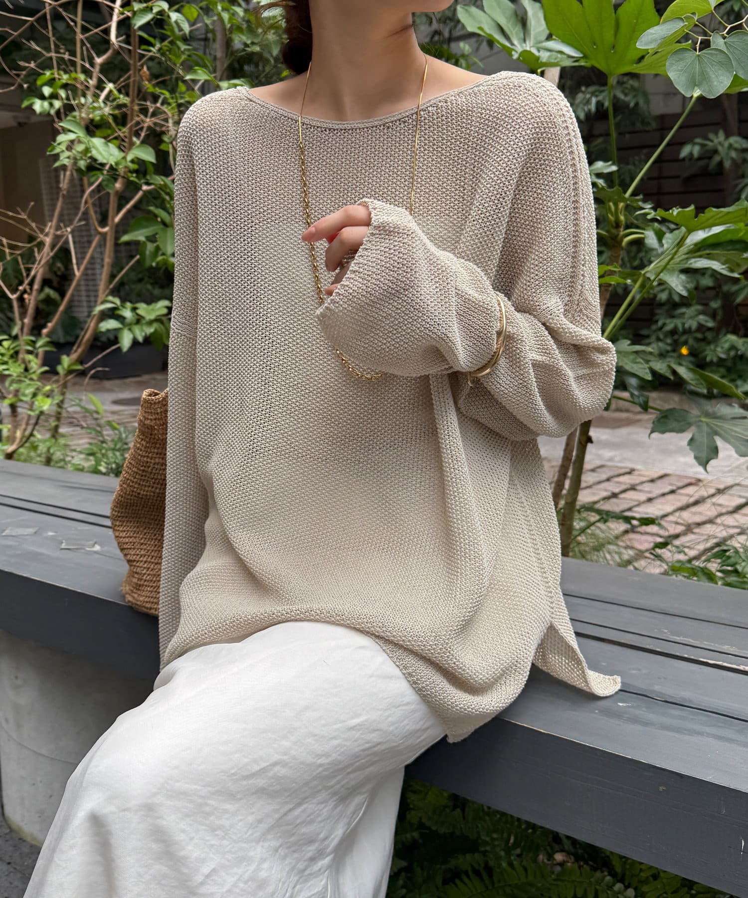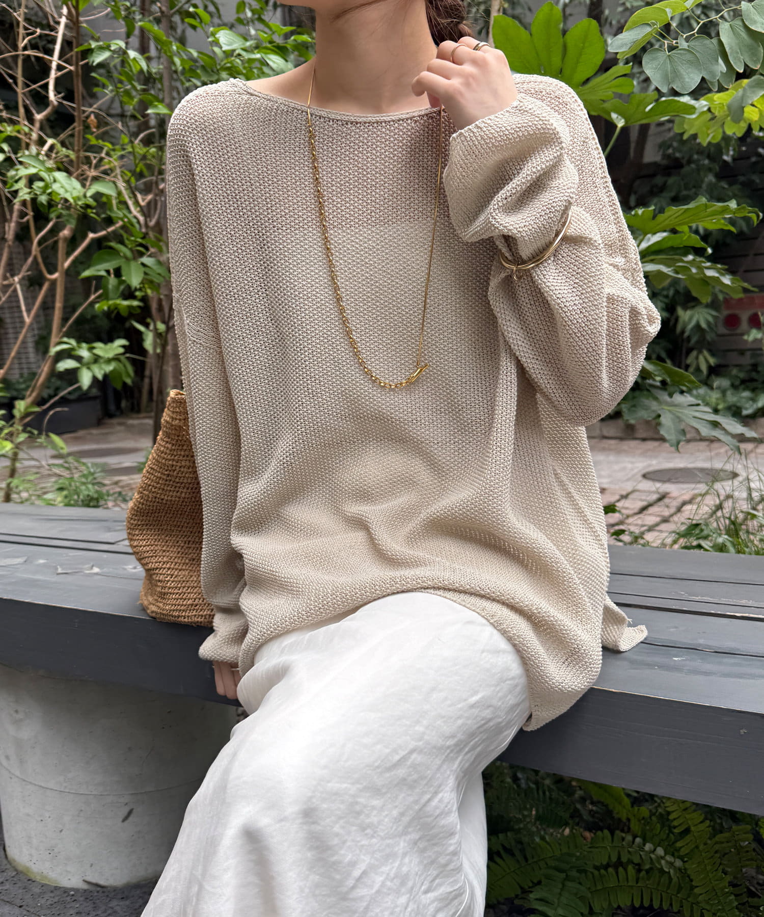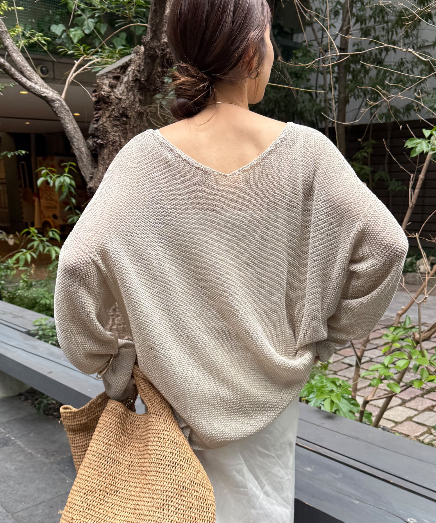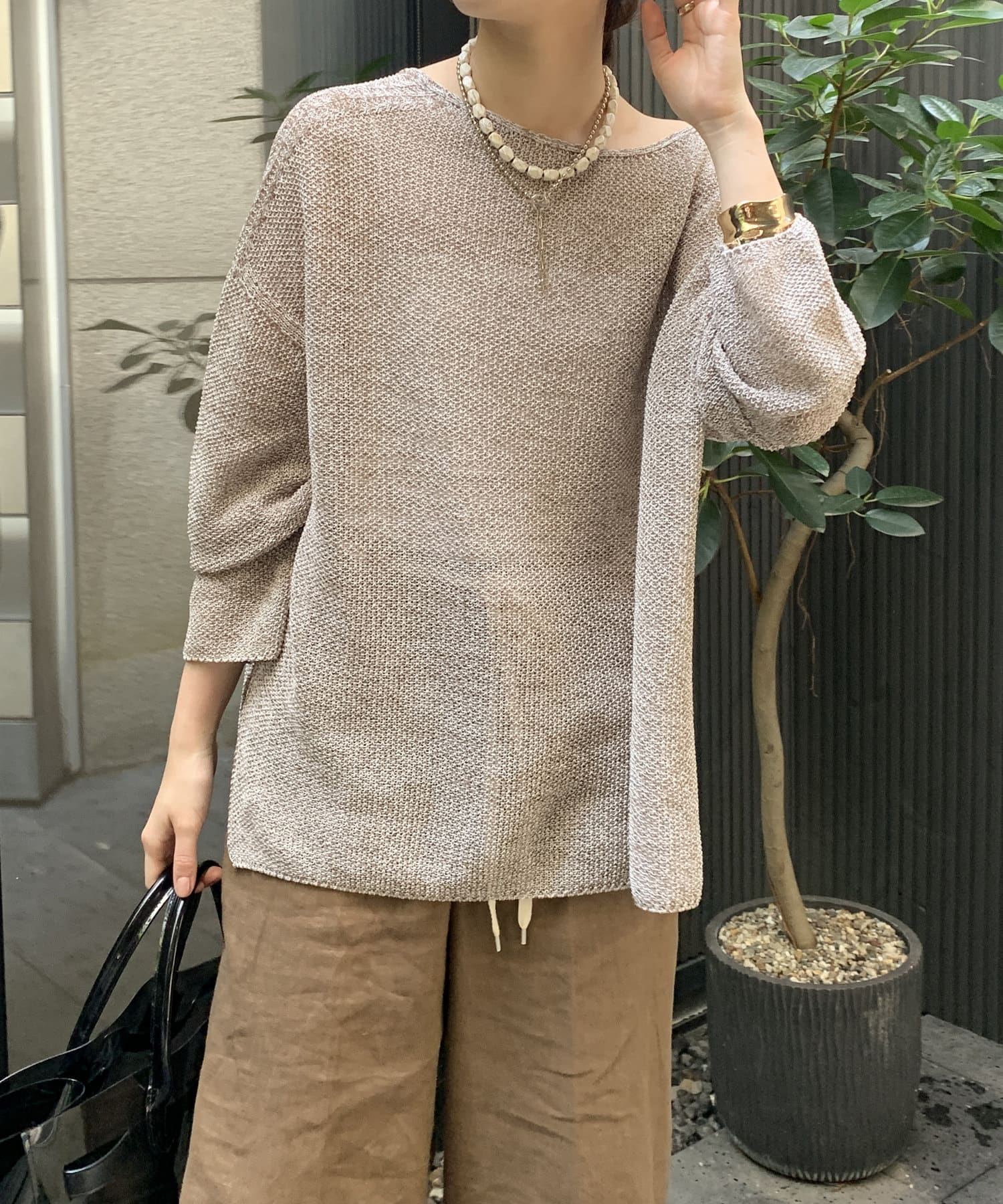 ゴワつかず、シャリ感のある和紙素材で軽い着心地のサマーニット。