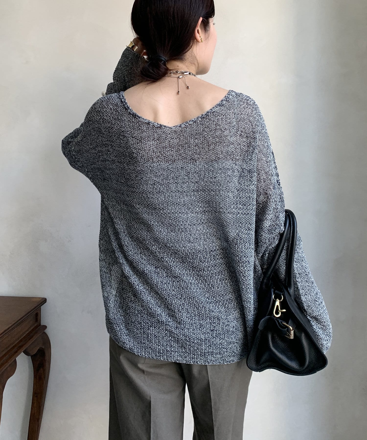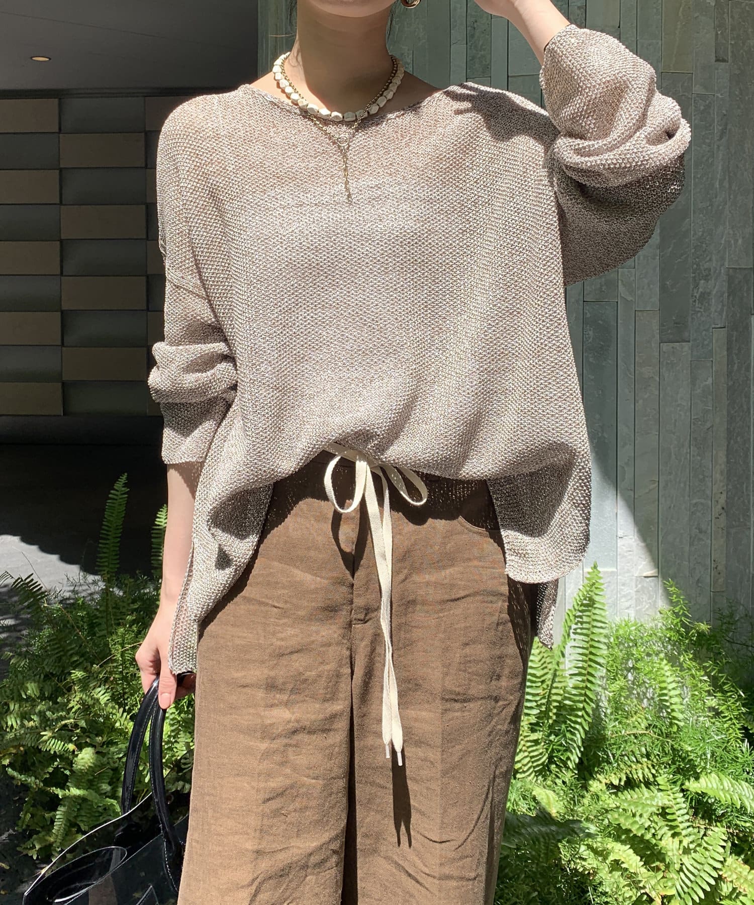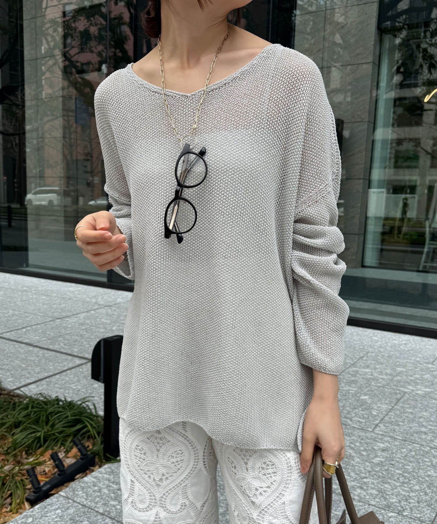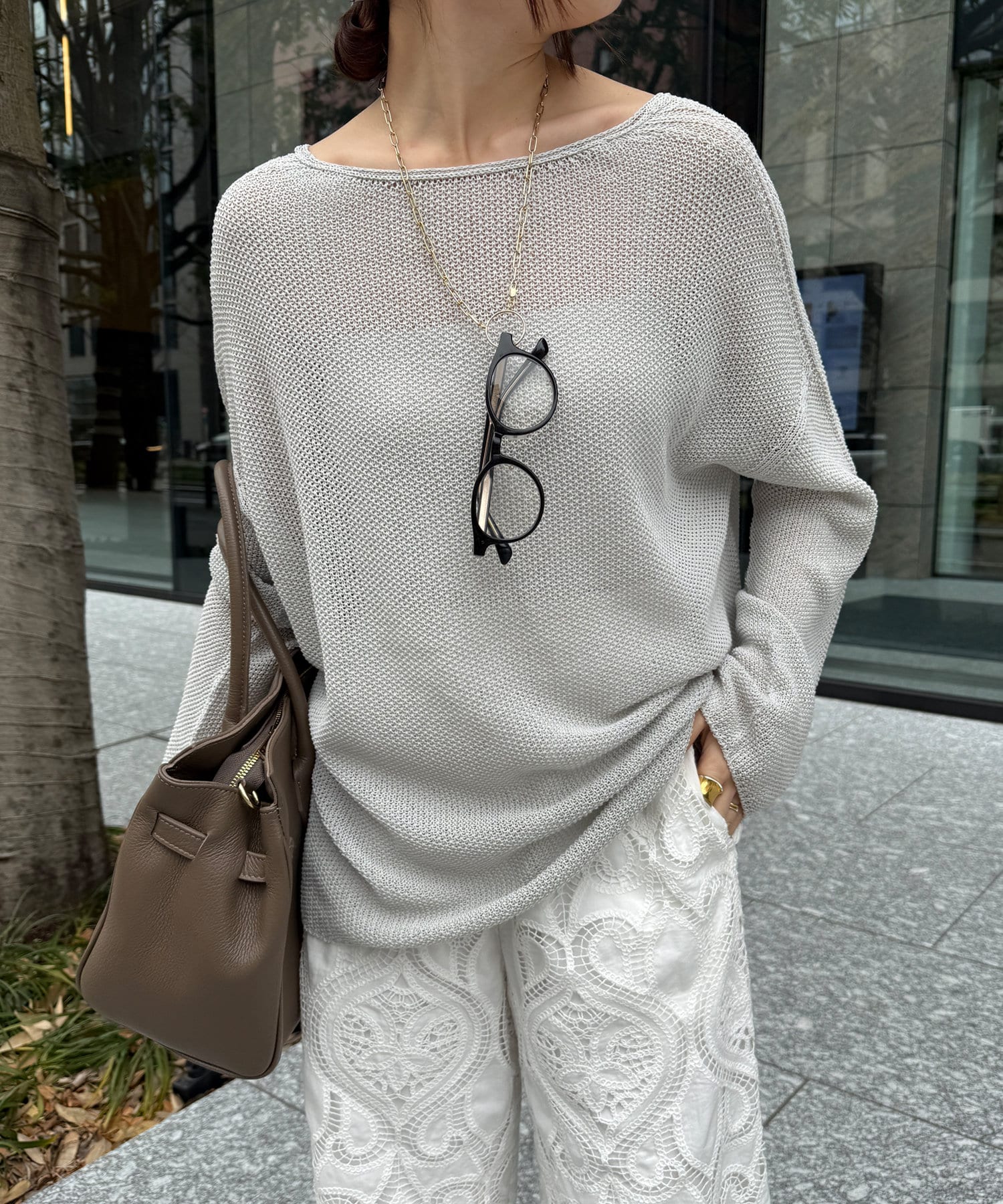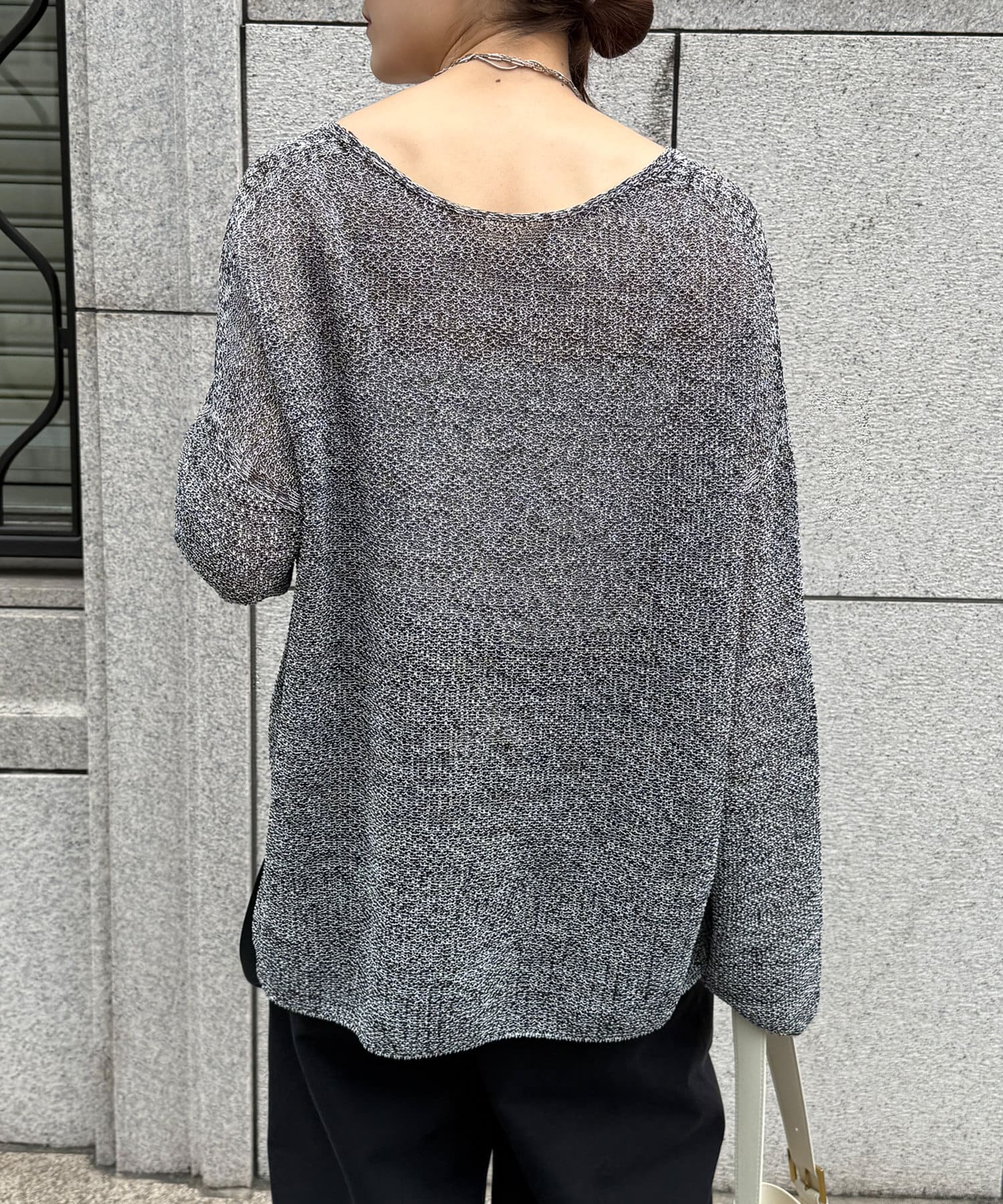 ゴワつかず、シャリ感のある和紙素材で軽い着心地のサマーニット。