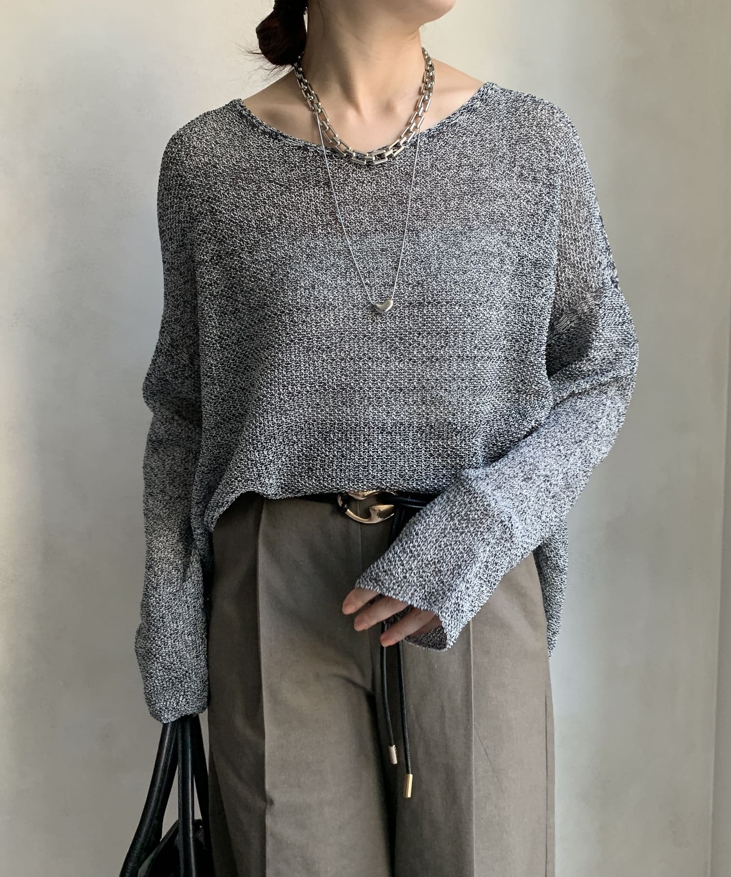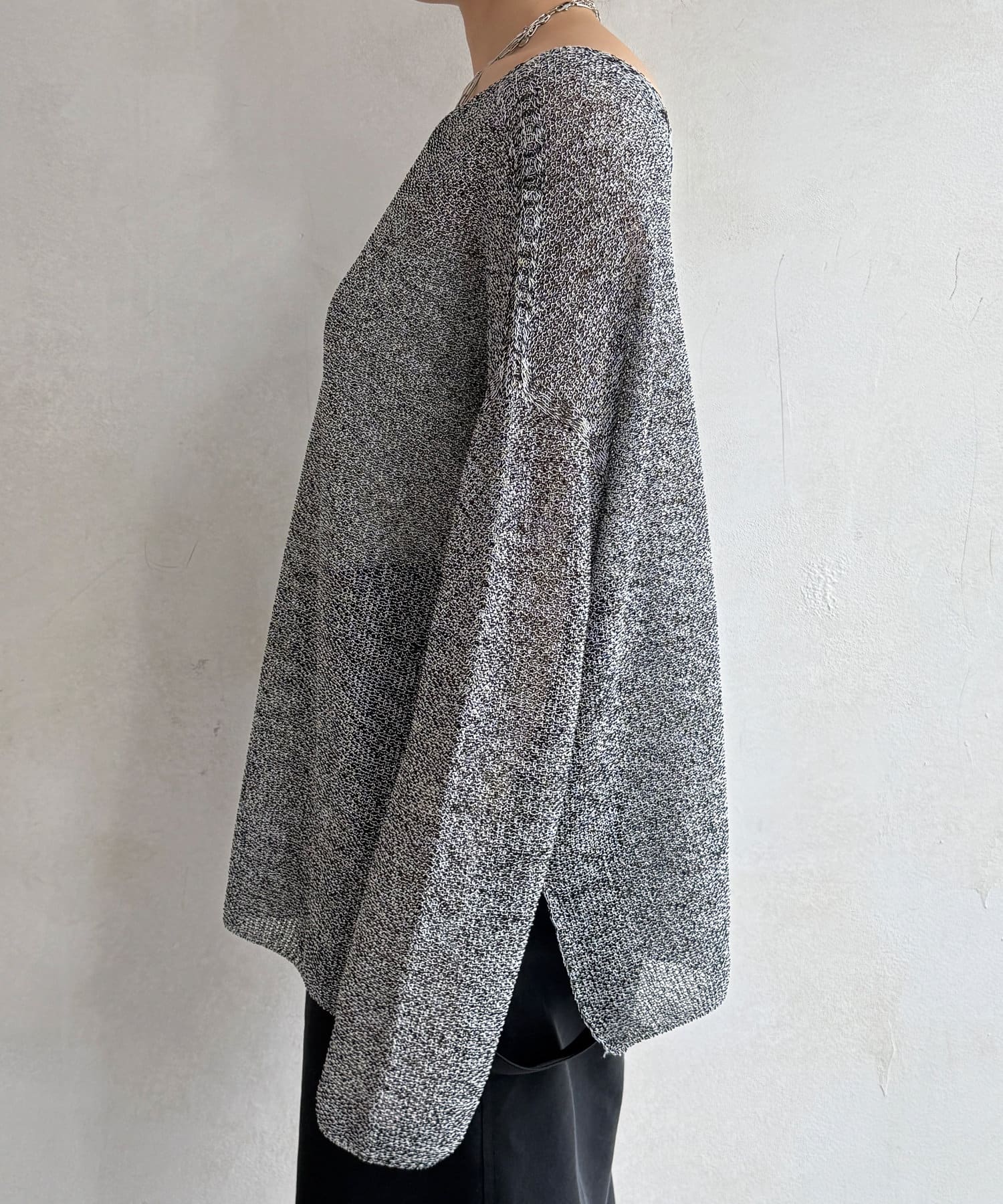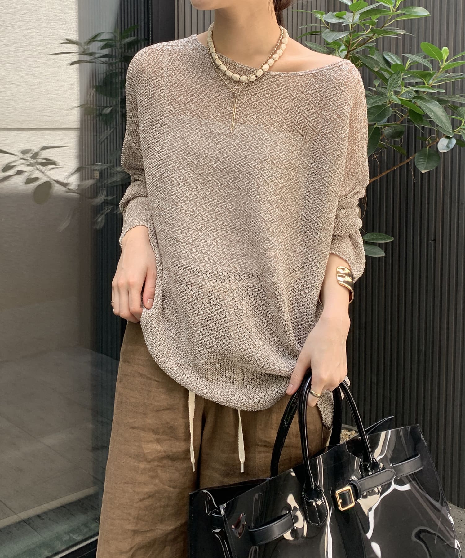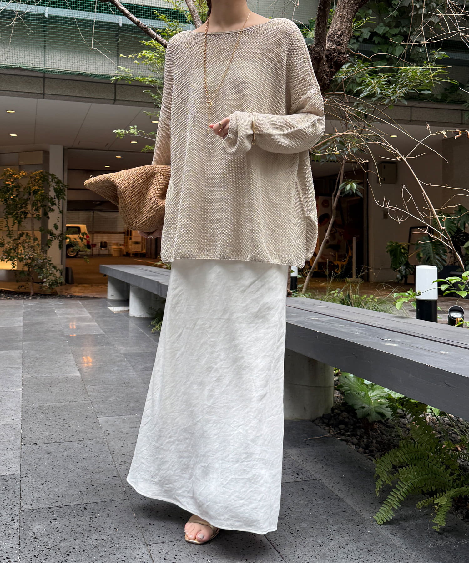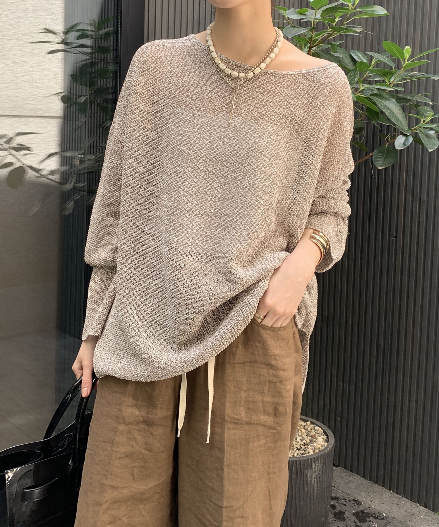 ゴワつかず、シャリ感のある和紙素材で軽い着心地のサマーニット。