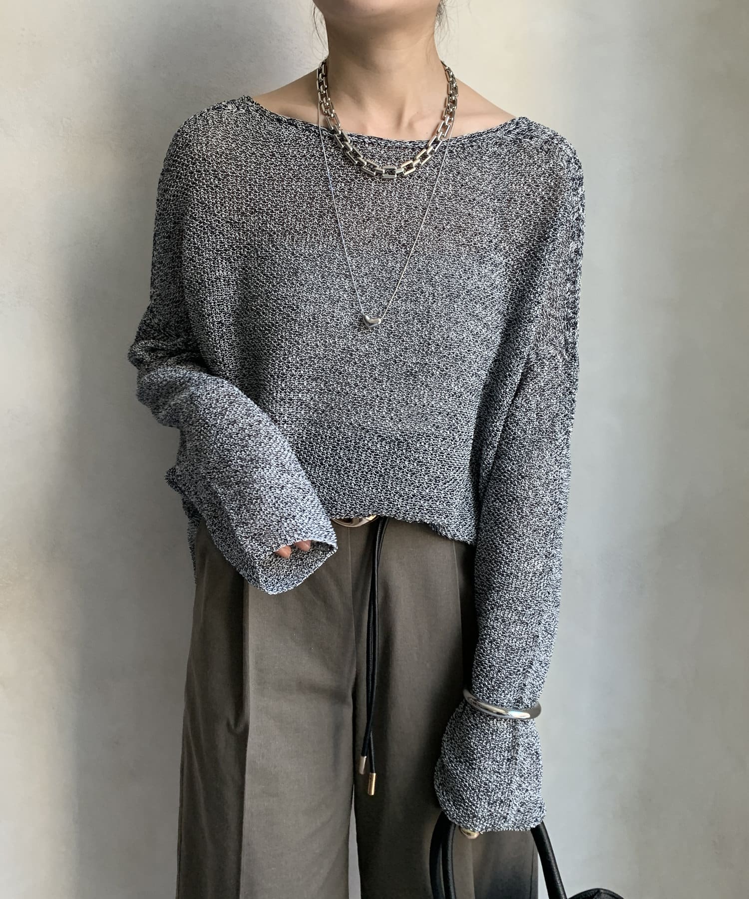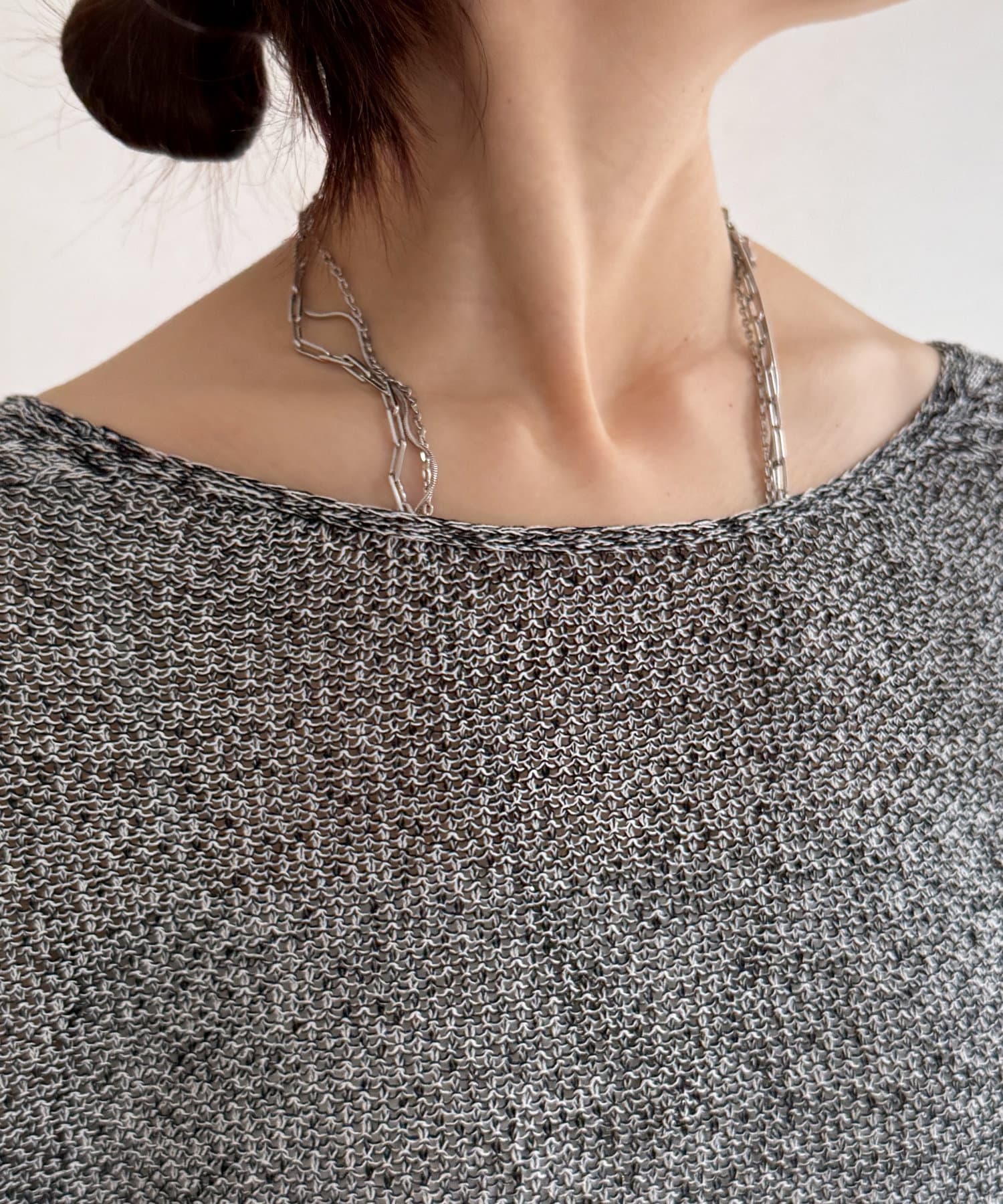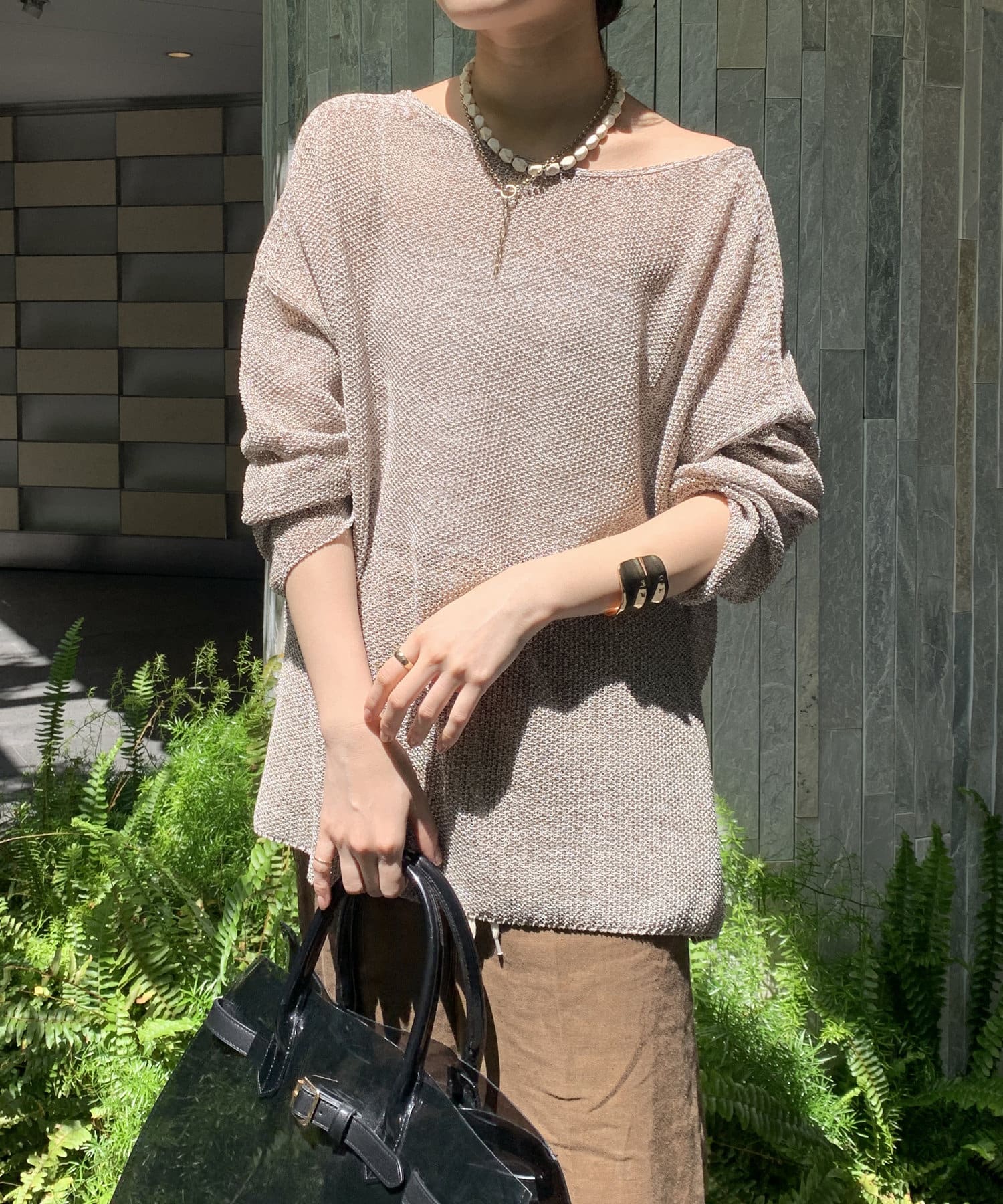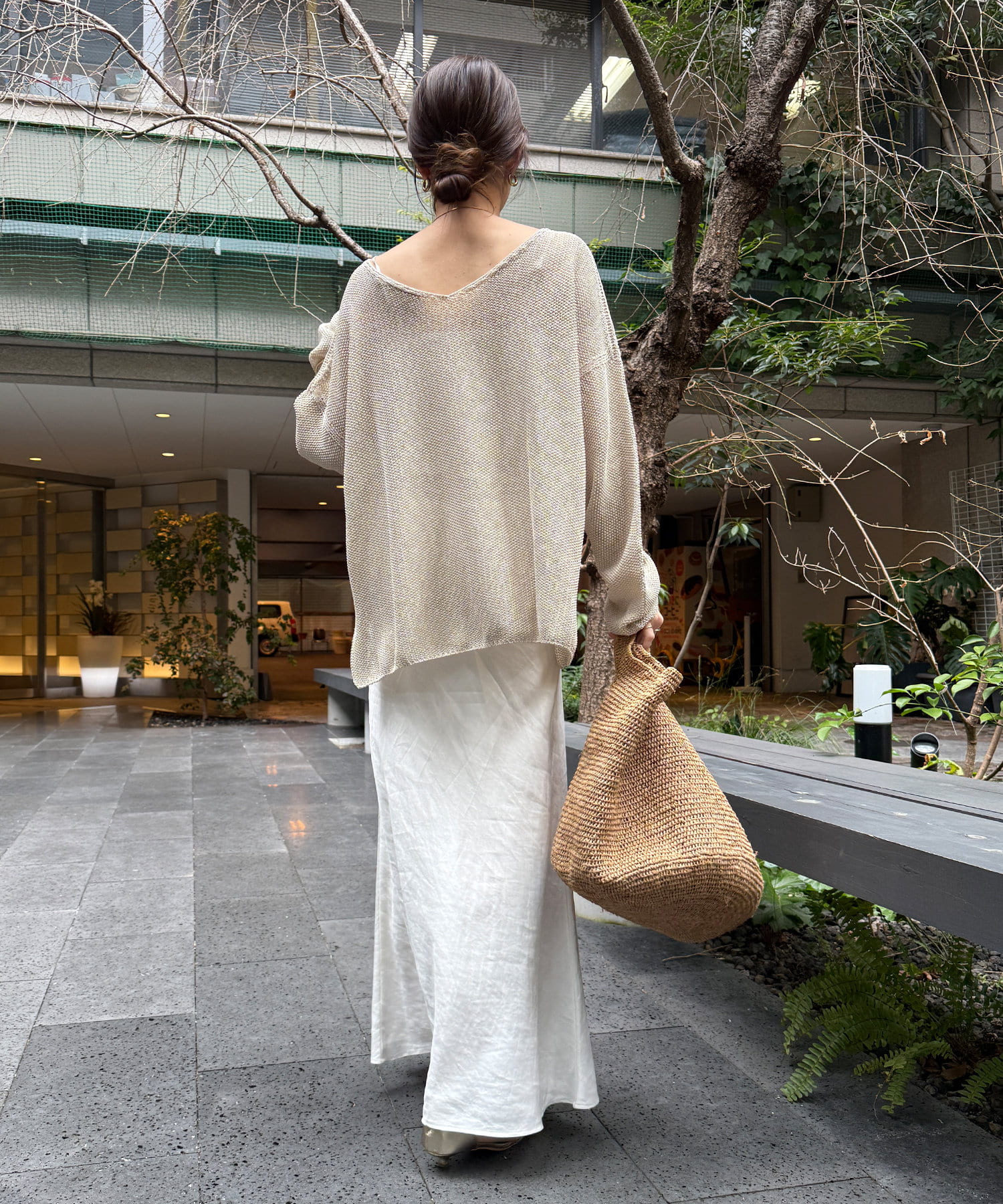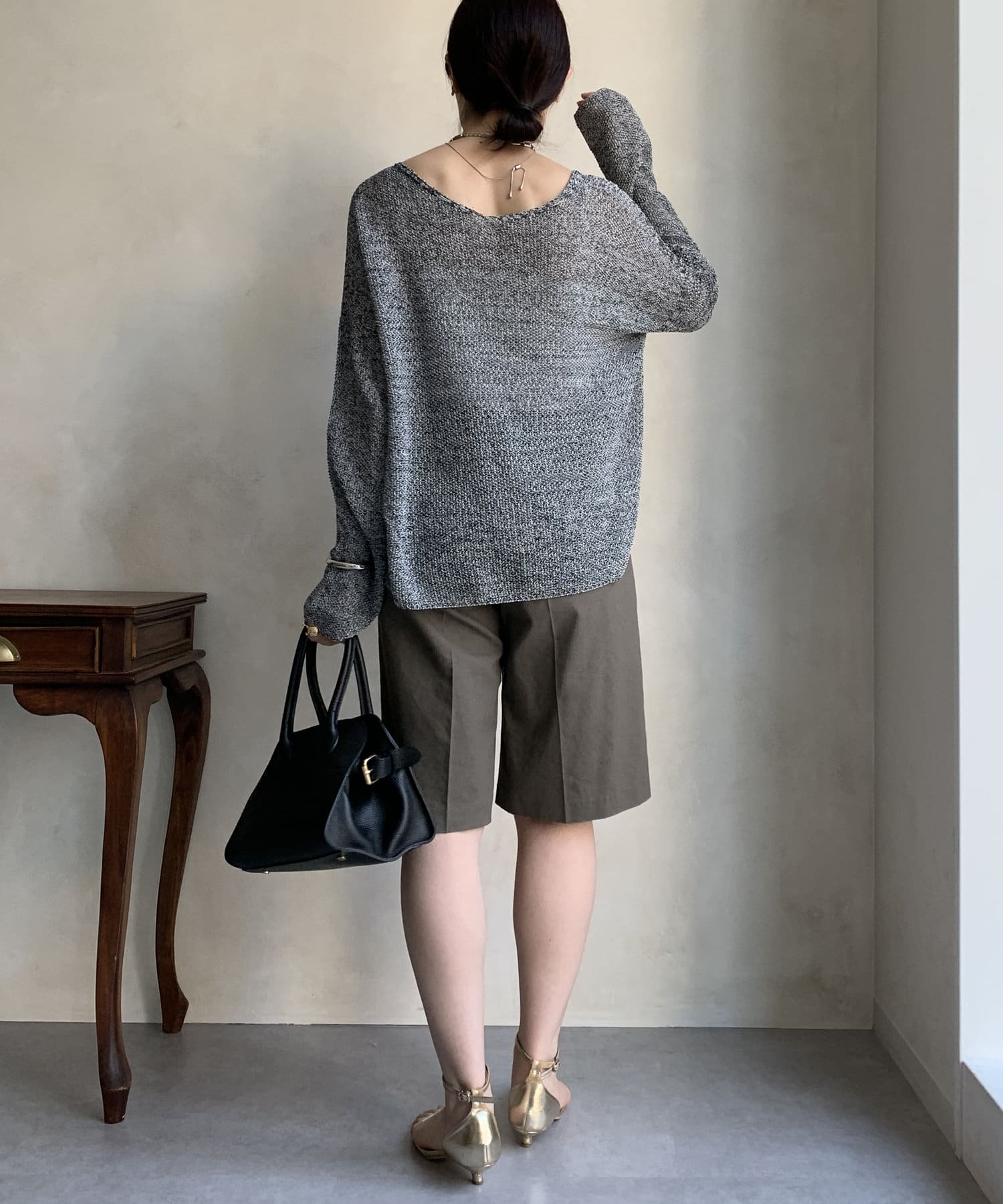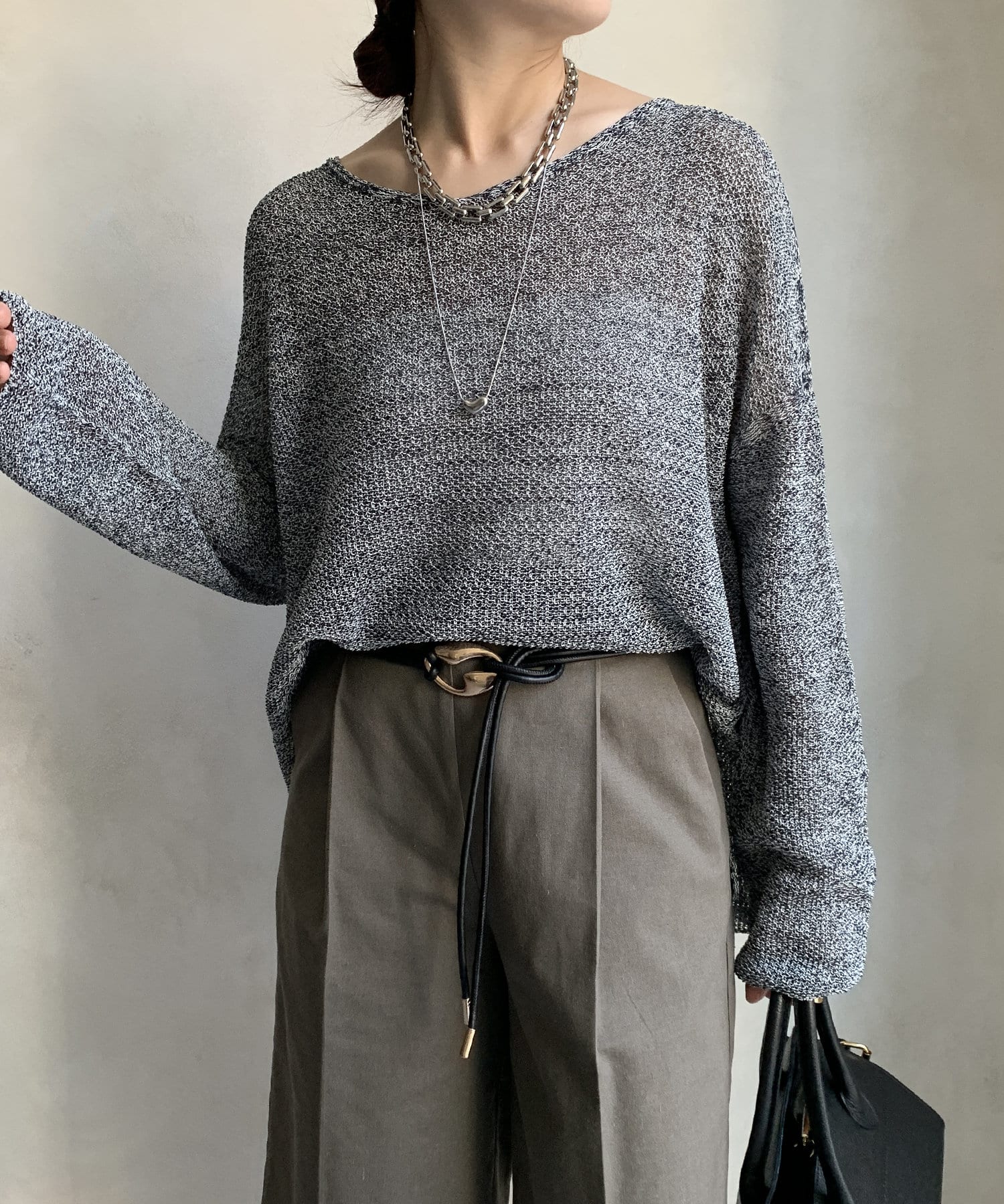 ゴワつかず、シャリ感のある和紙素材で軽い着心地のサマーニット。