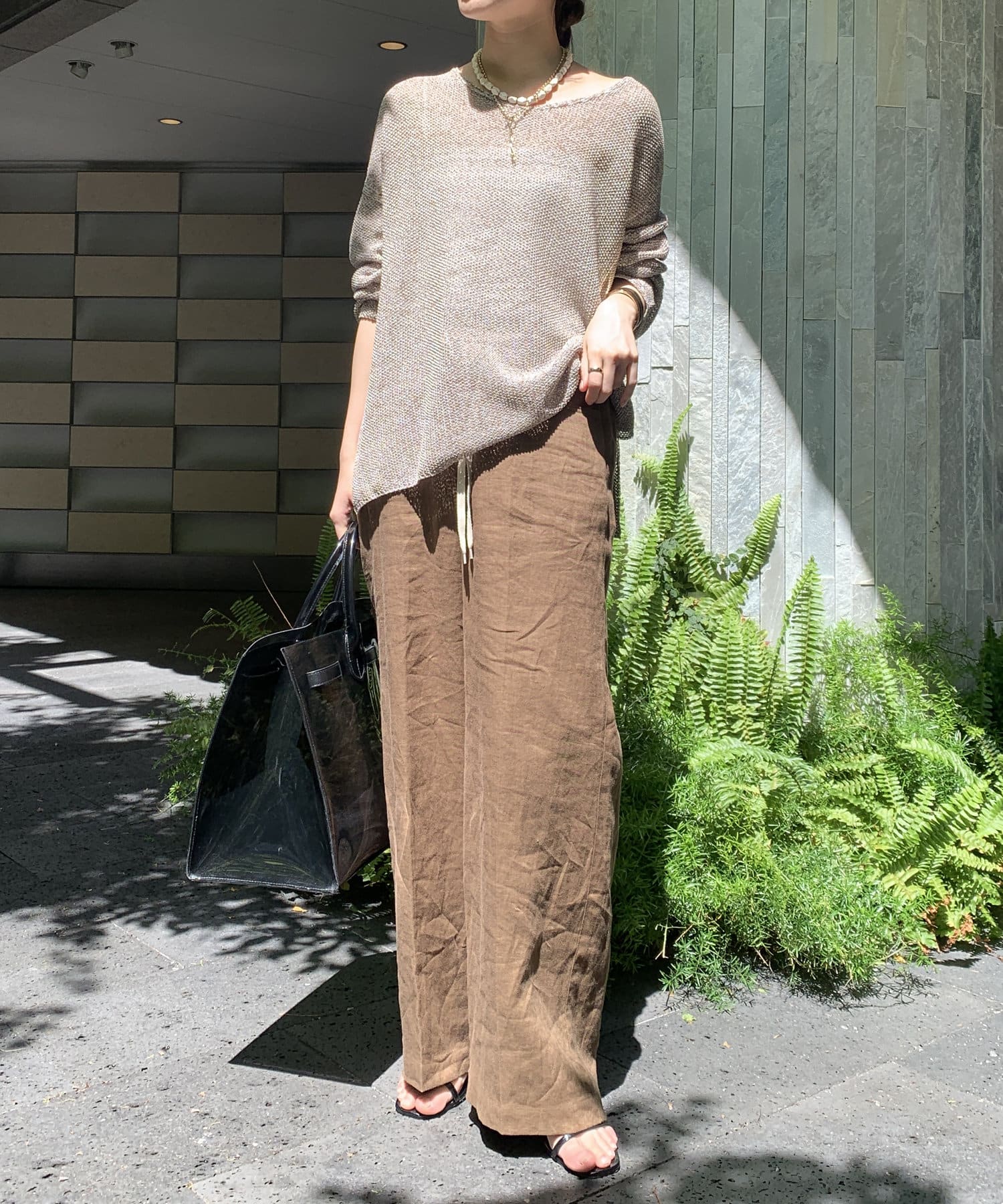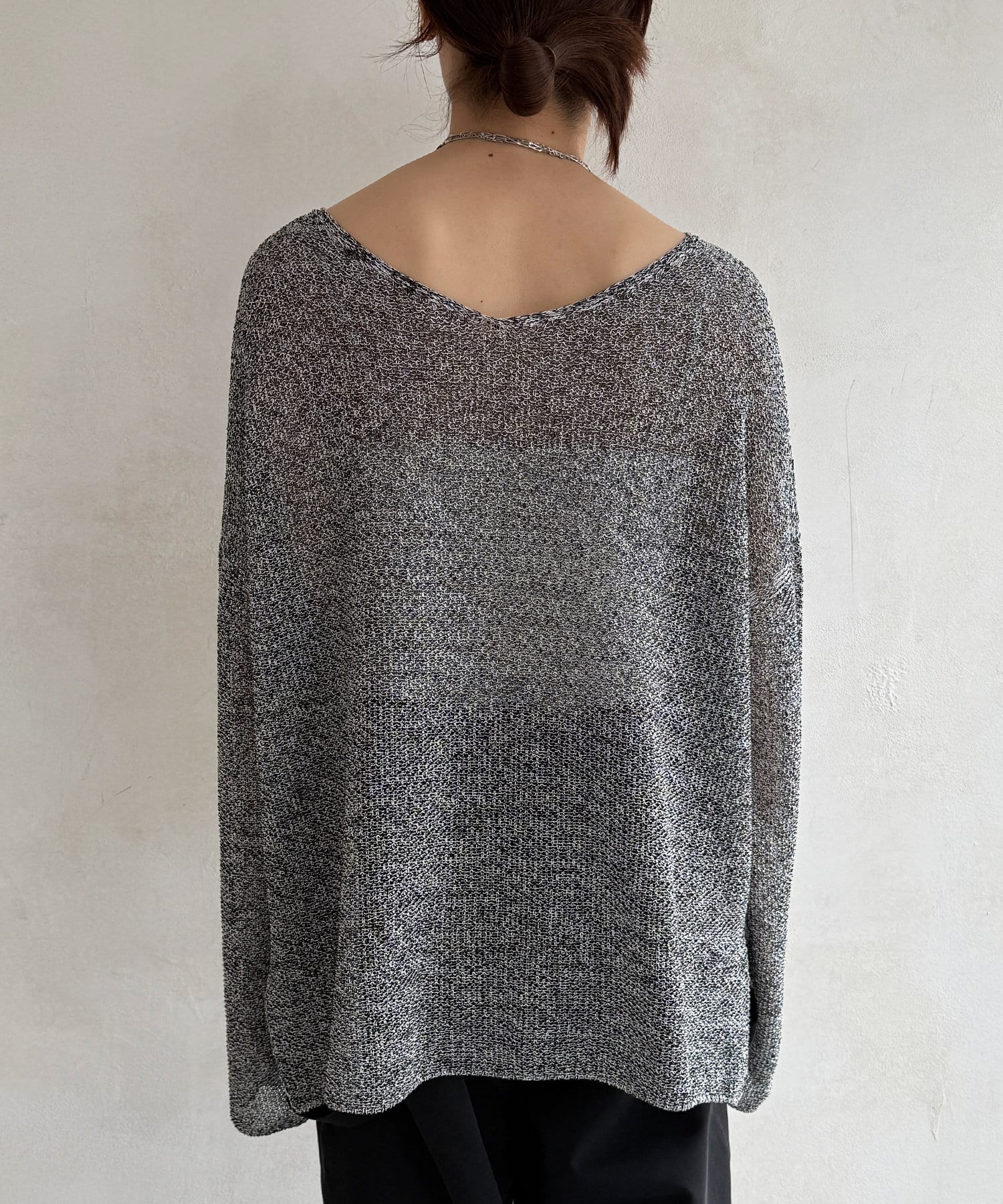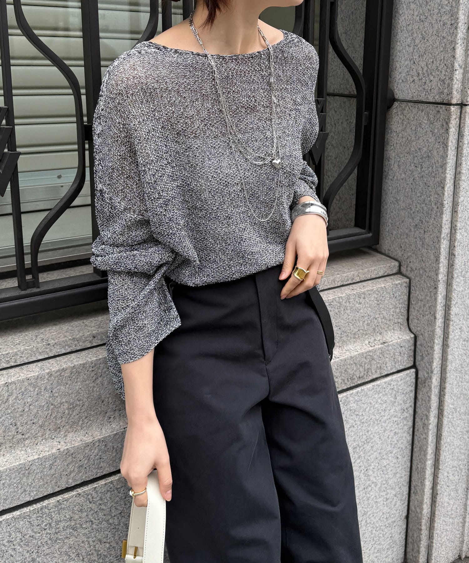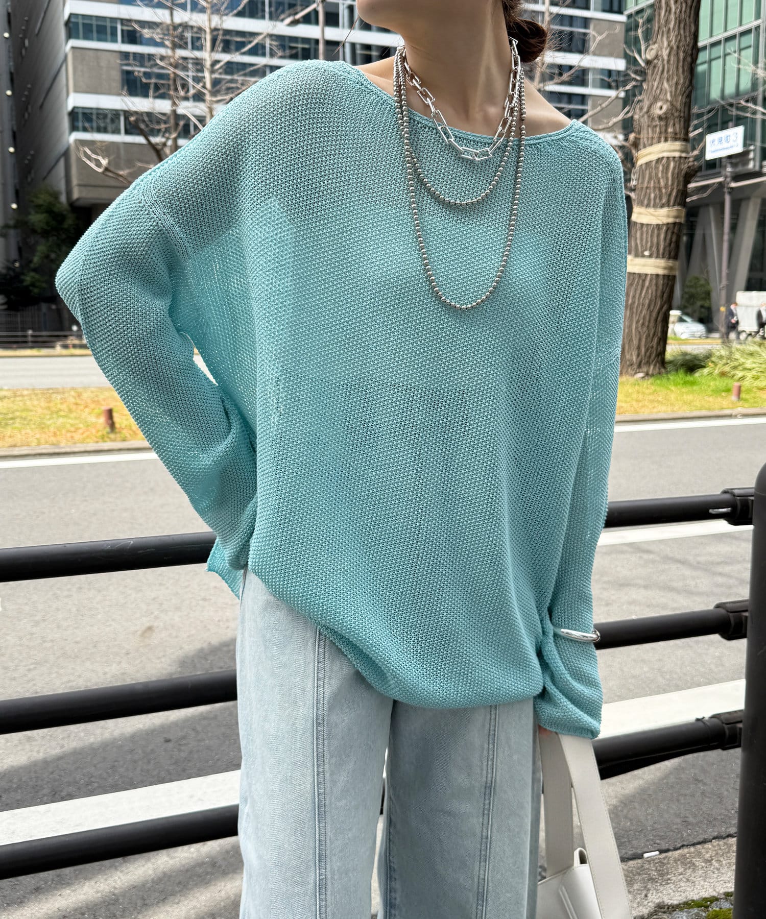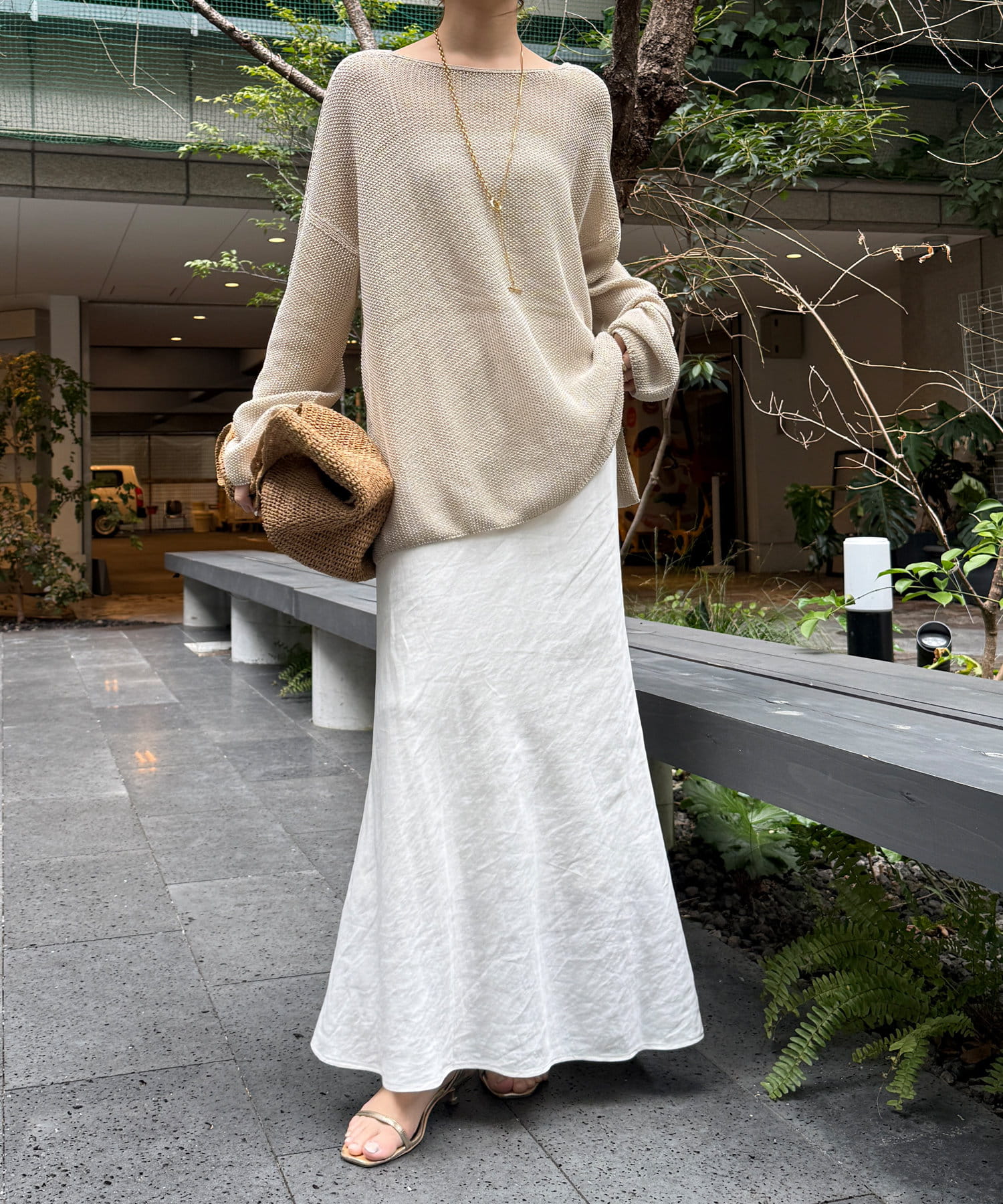 ゴワつかず、シャリ感のある和紙素材で軽い着心地のサマーニット。