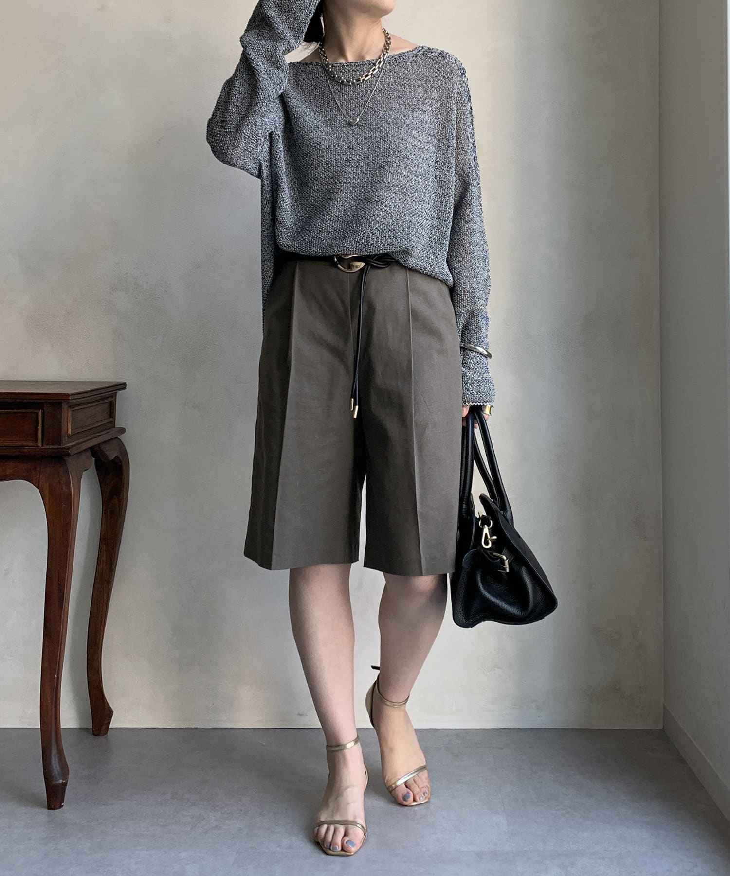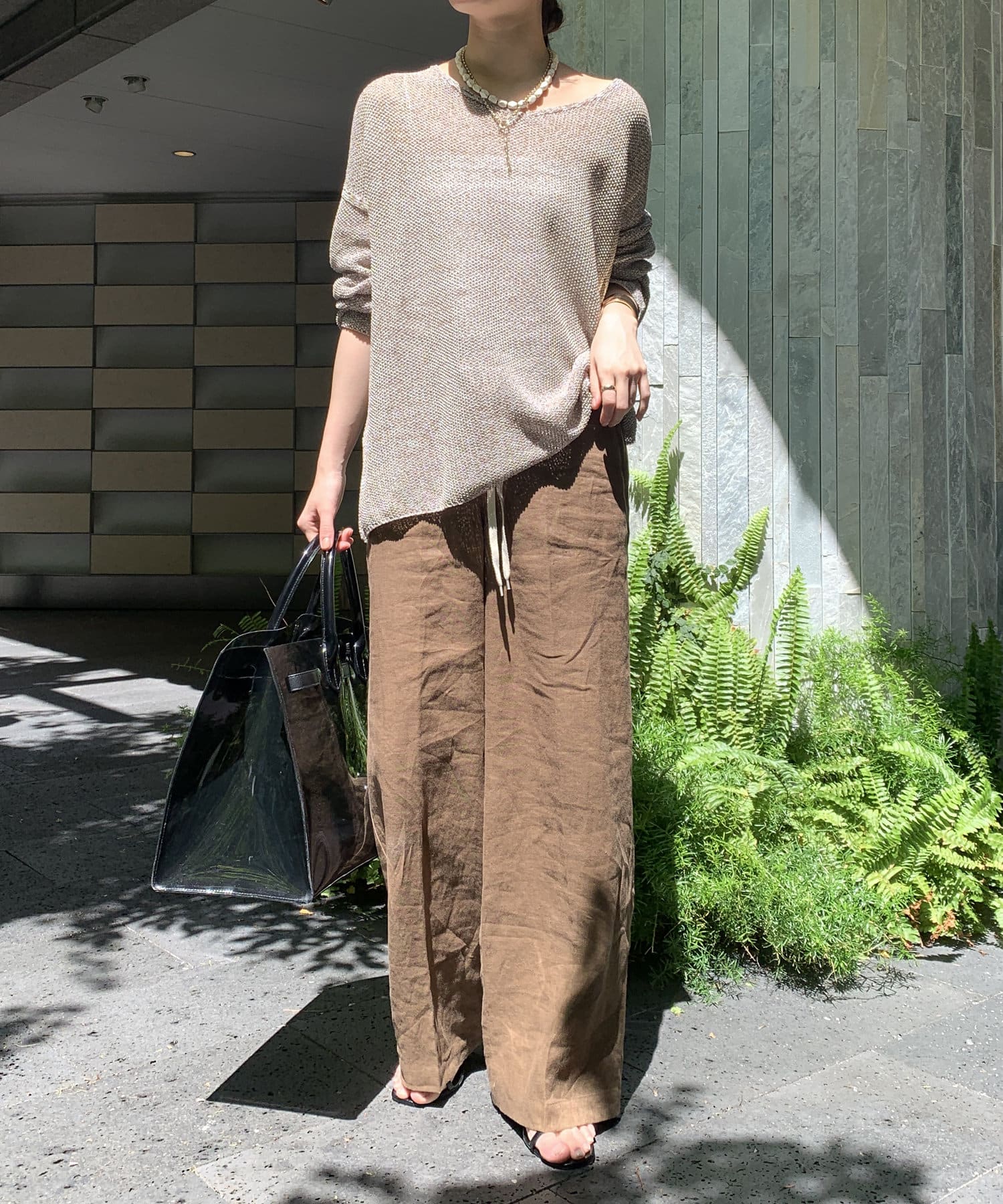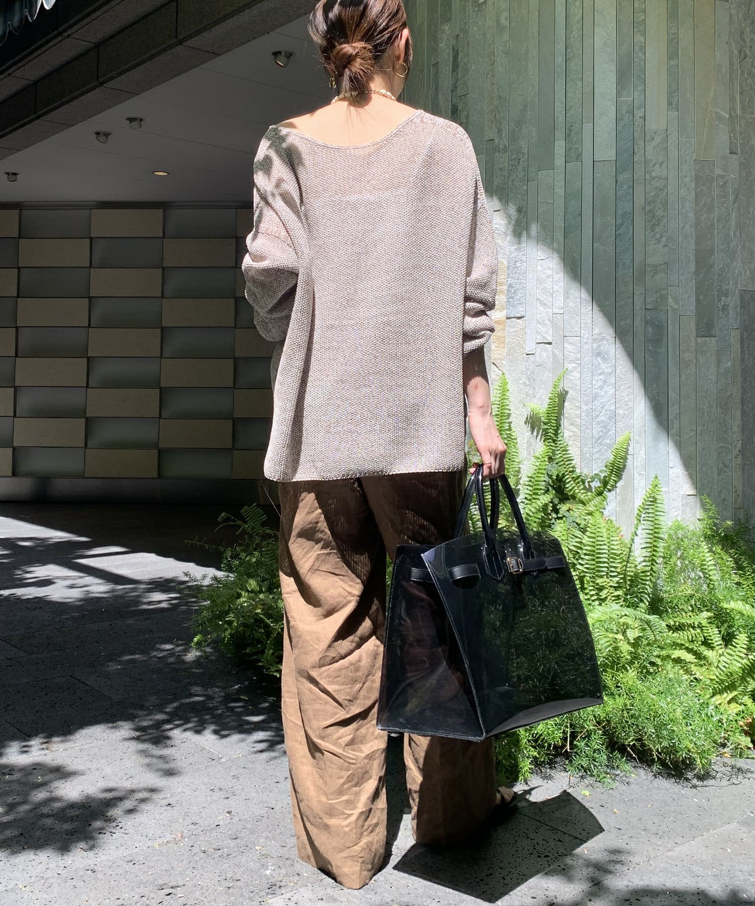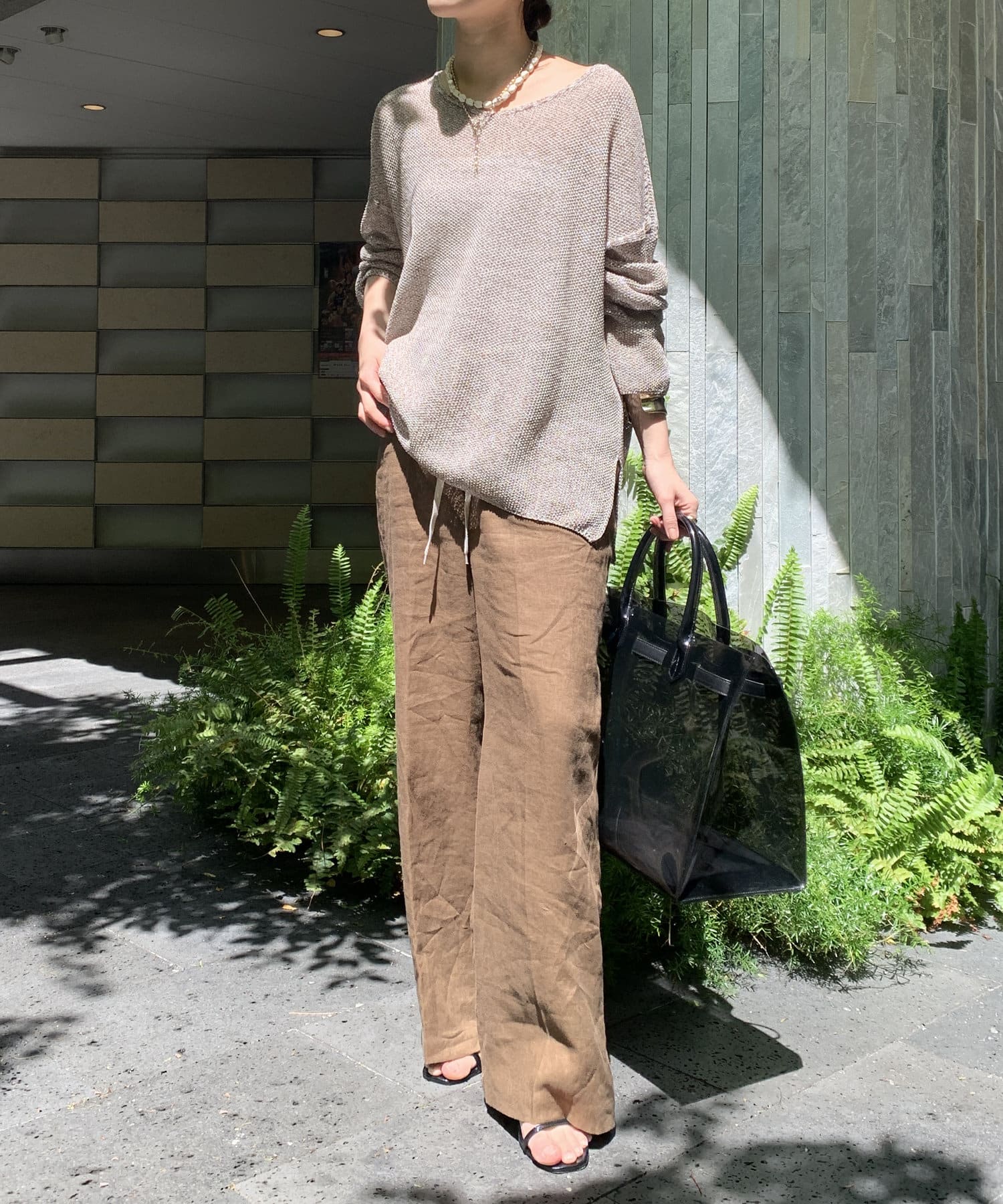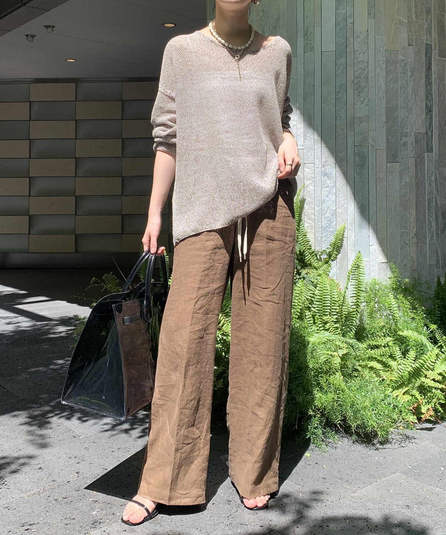 ゴワつかず、シャリ感のある和紙素材で軽い着心地のサマーニット。