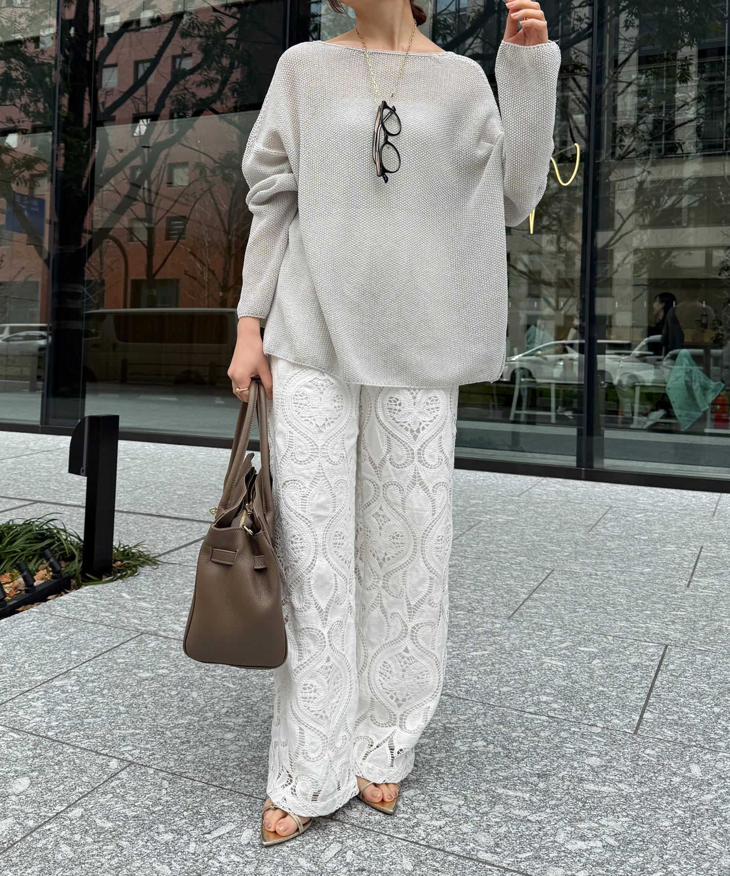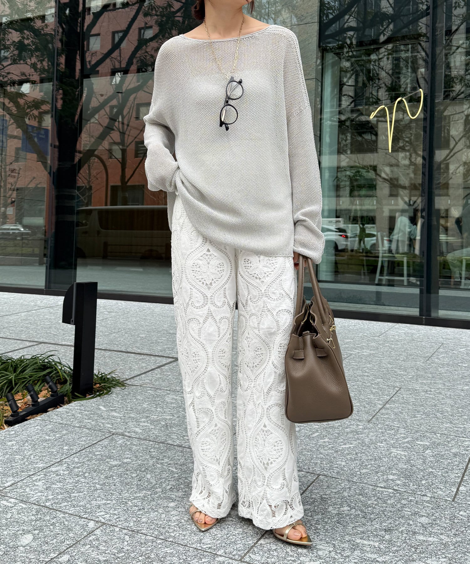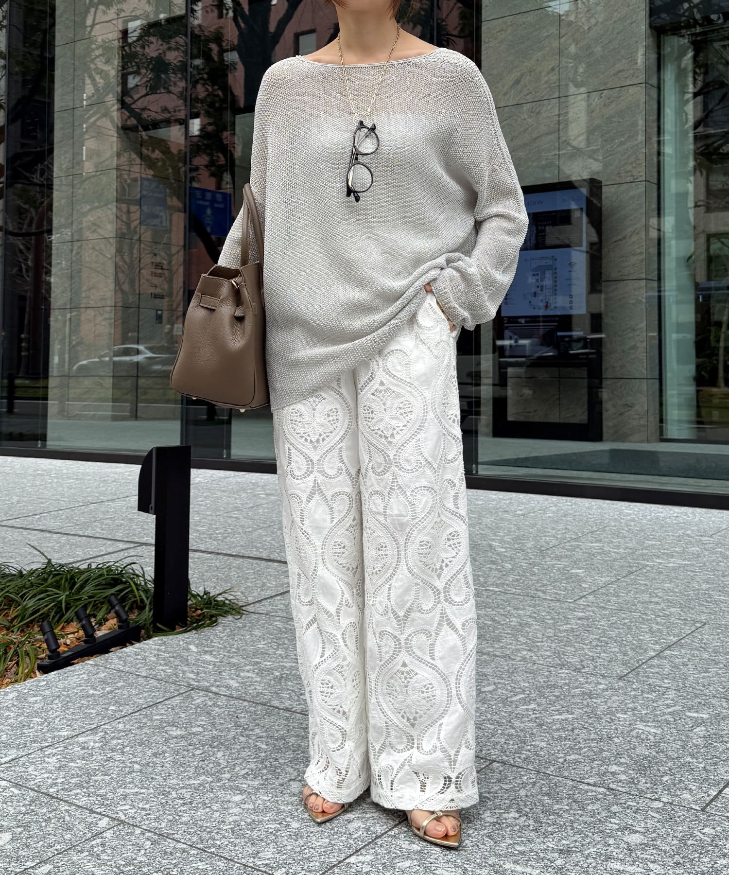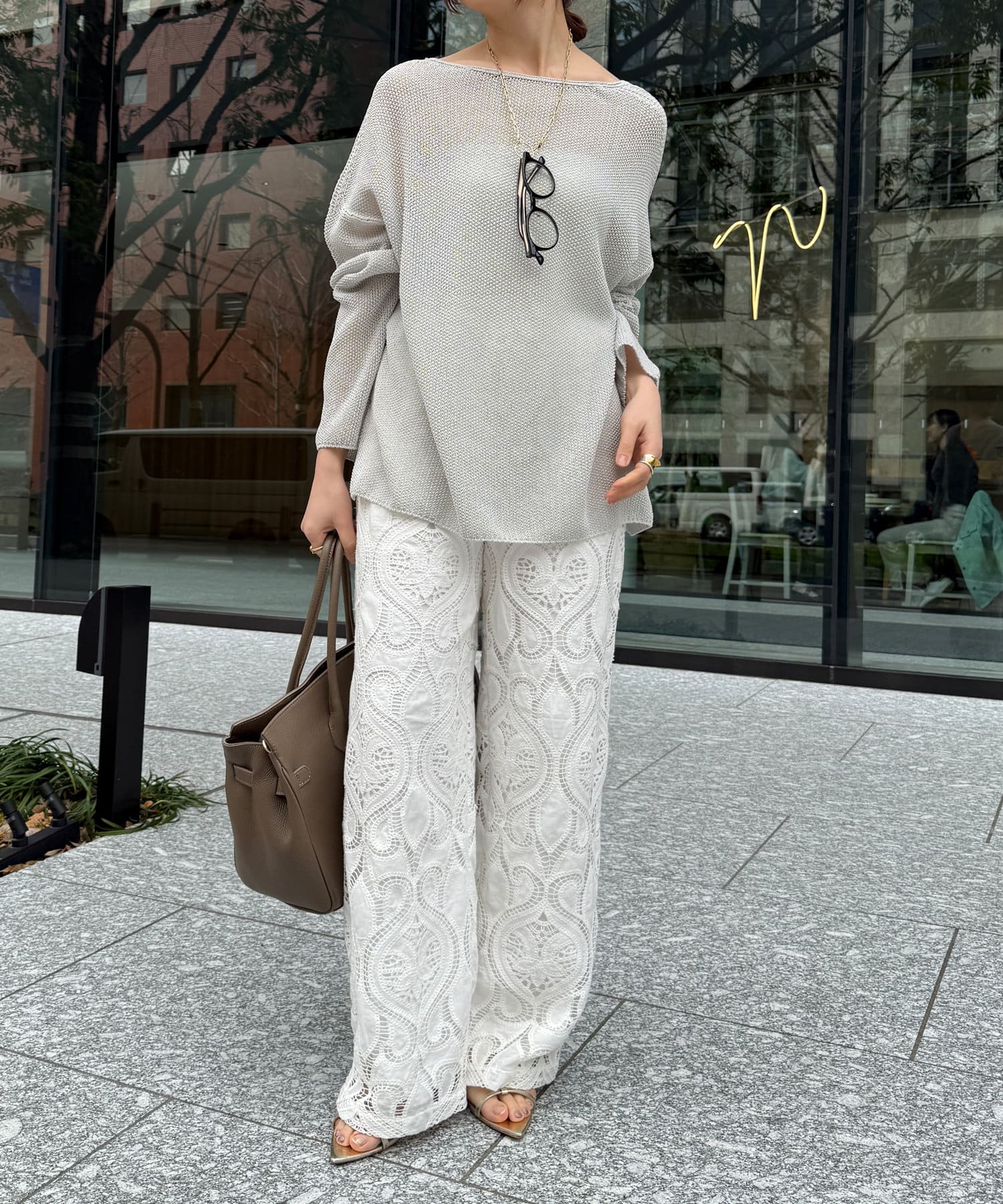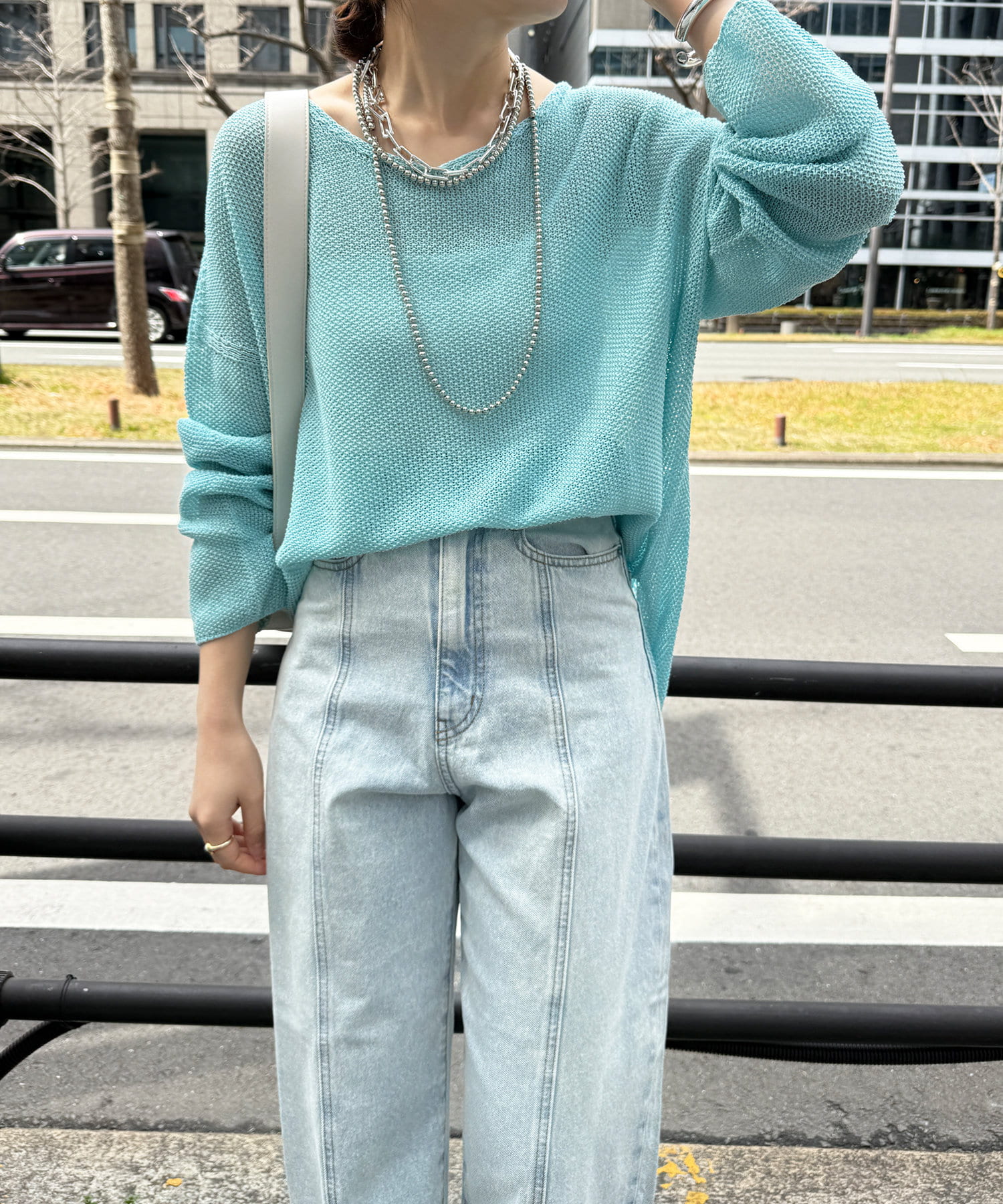ゴワつかず、シャリ感のある和紙素材で軽い着心地のサマーニット。