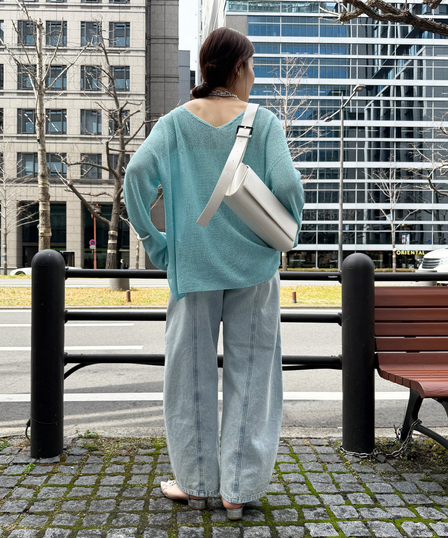 程よく開いたネックラインは、カットラインの違う前後2wayに仕上げることで着こなしに変化をつけていただけます。