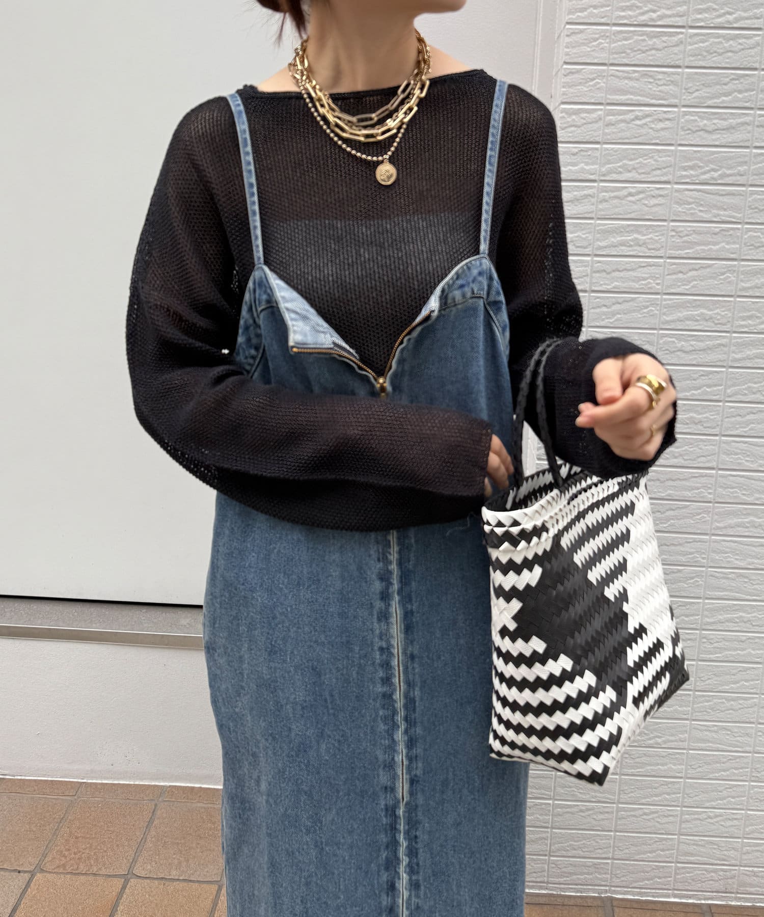 シンプルな単色無地のデザインではありますが、凸凹としたメッシュの編み地で表情豊かな印象プラス。