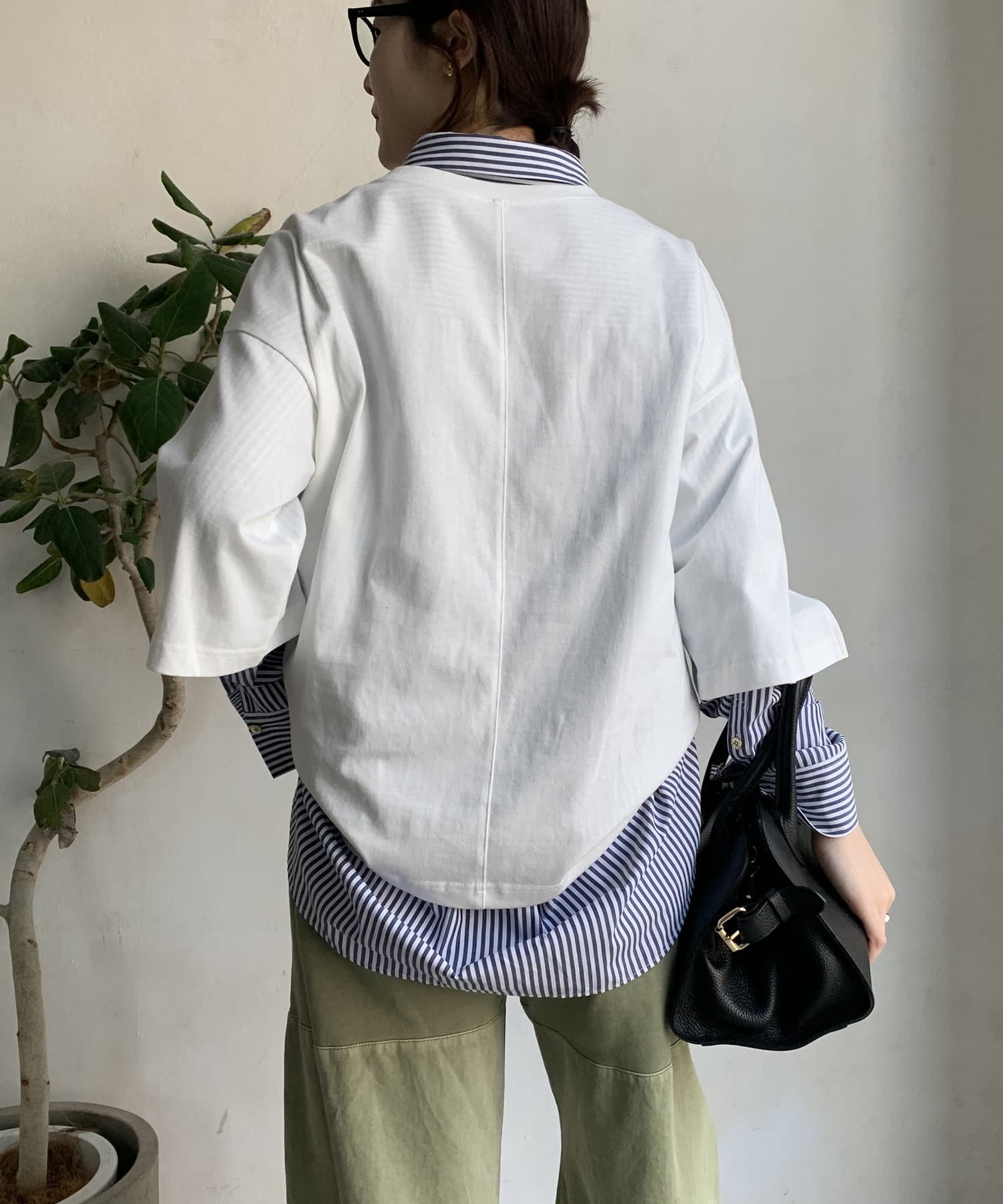 春先から着回していただきやすい七分袖に加え、袖にはスリットが入っており、これまでのカットソーとは異なるこなれた印象に。