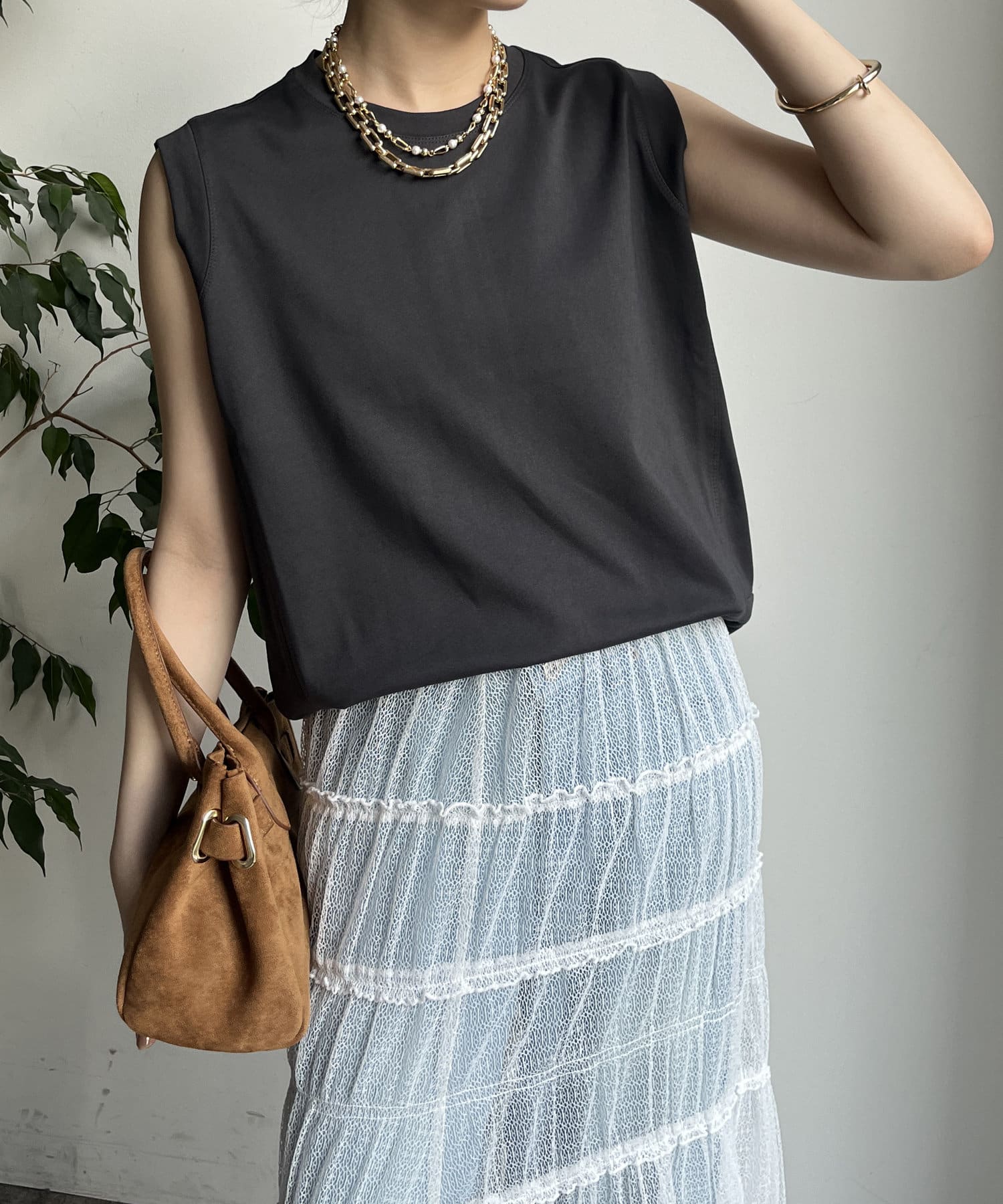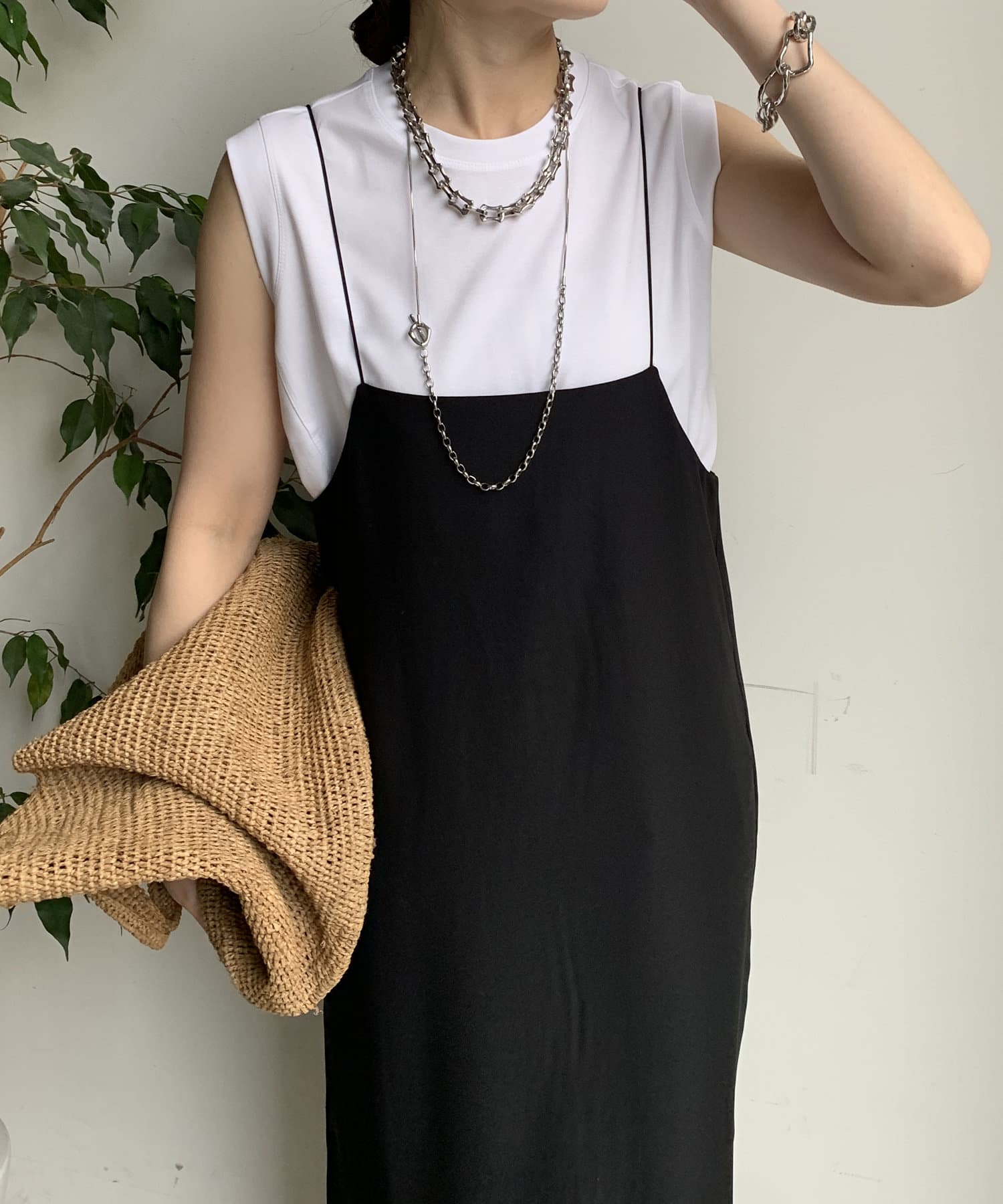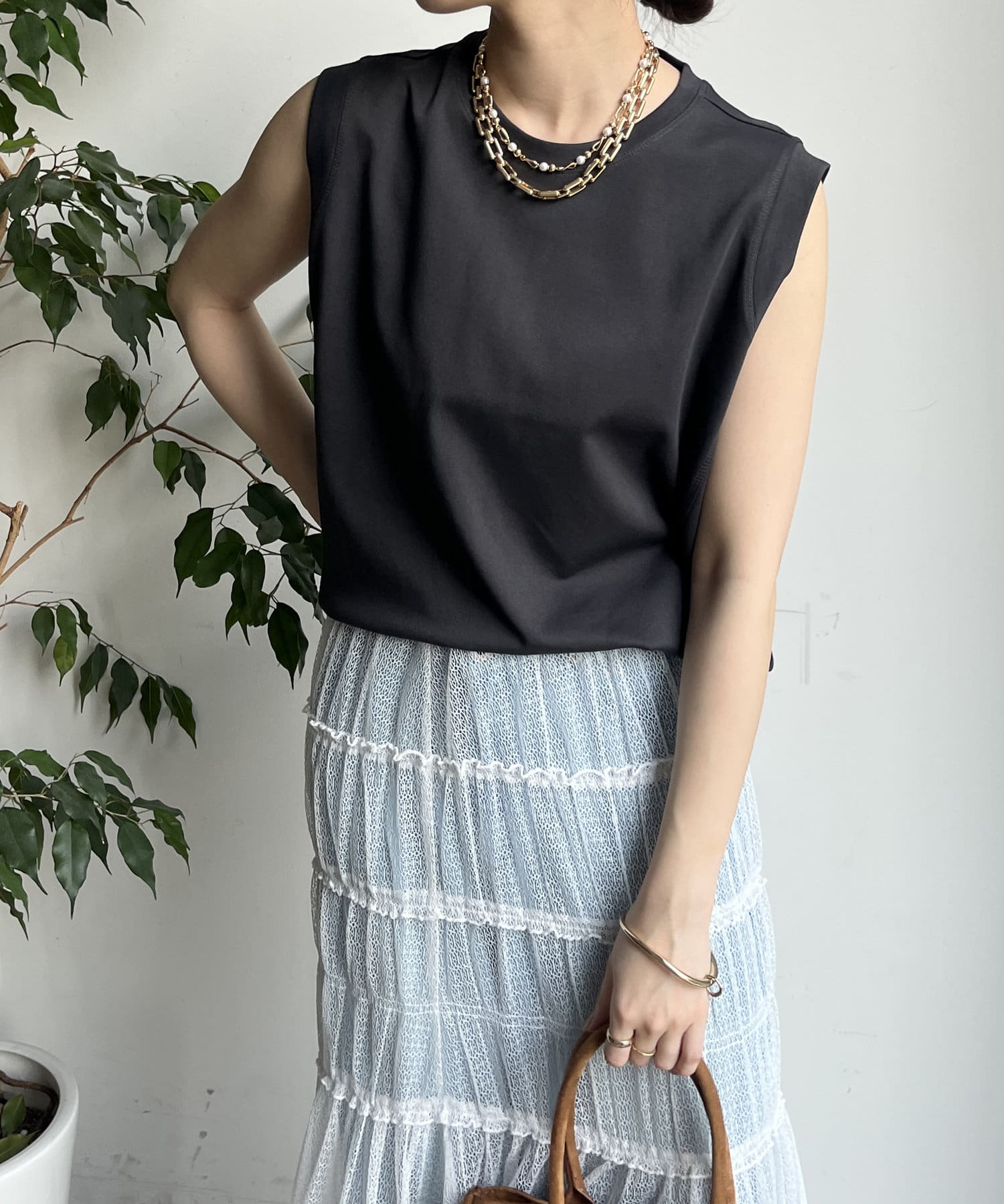 ノースリーブ探してて丈も長めでちょうどいいと思って購入したら大正解!ジャケットの下に着てます。色違いも購入しました!
