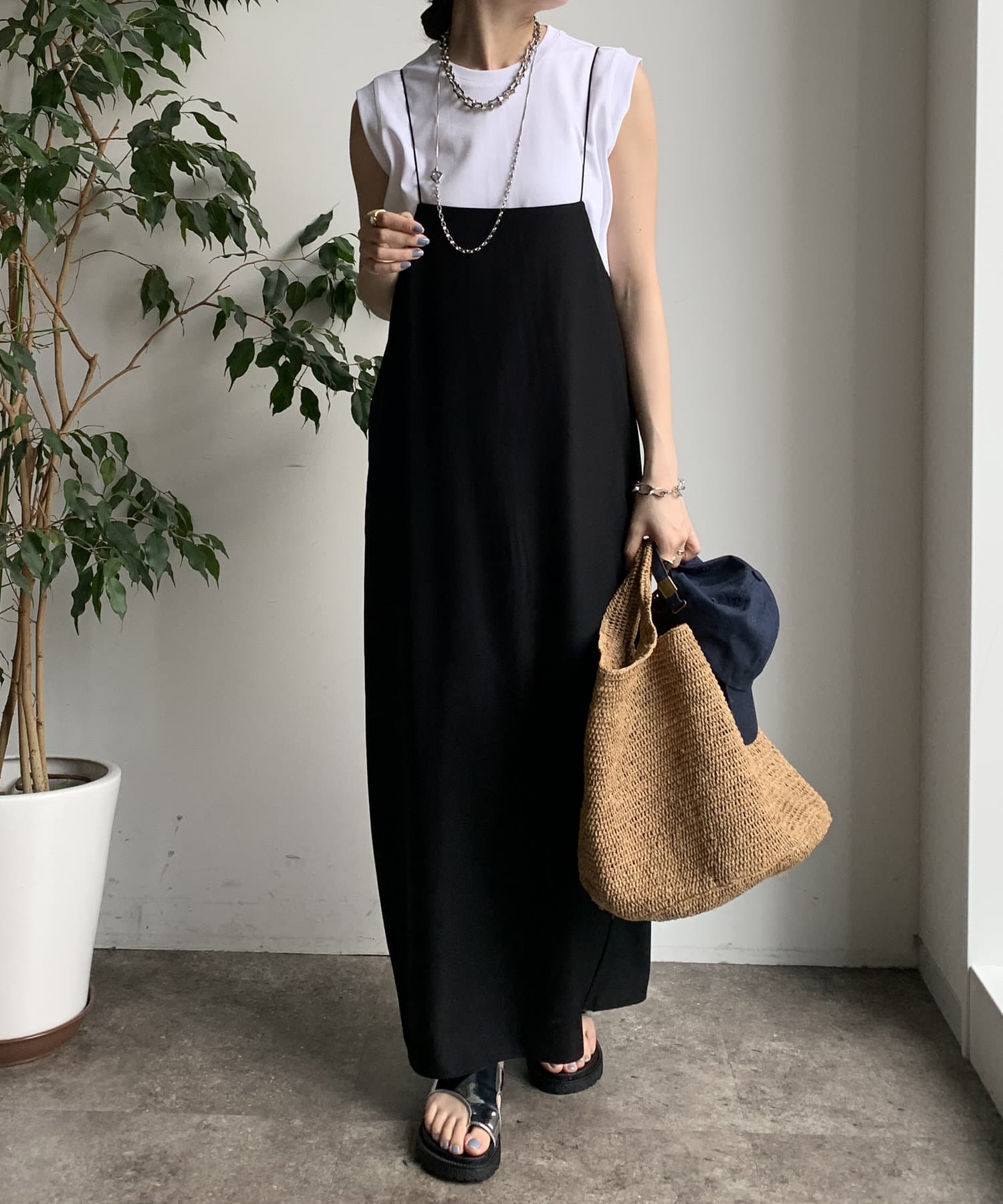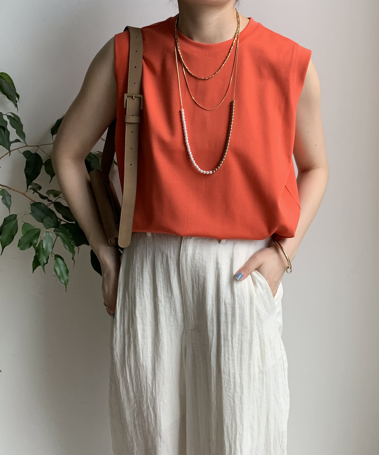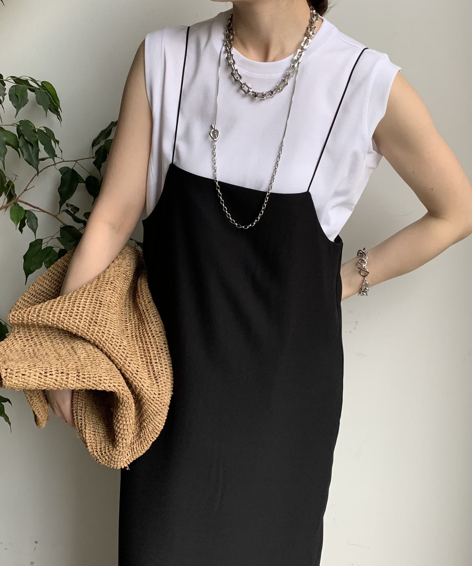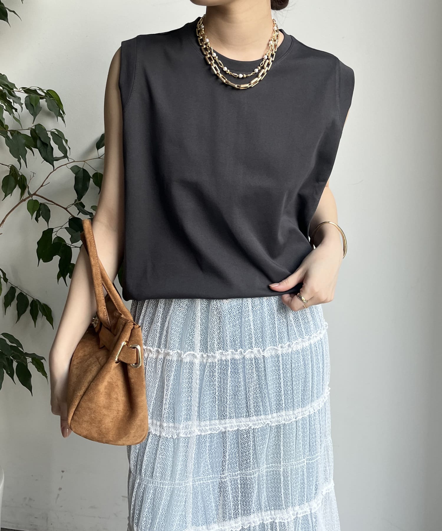 ノースリーブ探してて丈も長めでちょうどいいと思って購入したら大正解!ジャケットの下に着てます。色違いも購入しました!