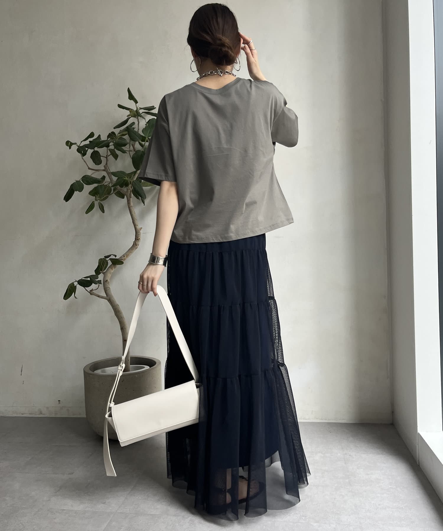 前後2WAY仕様なので、ロゴを前にするとカジュアルに、無地を前にするとキレイめな印象に。