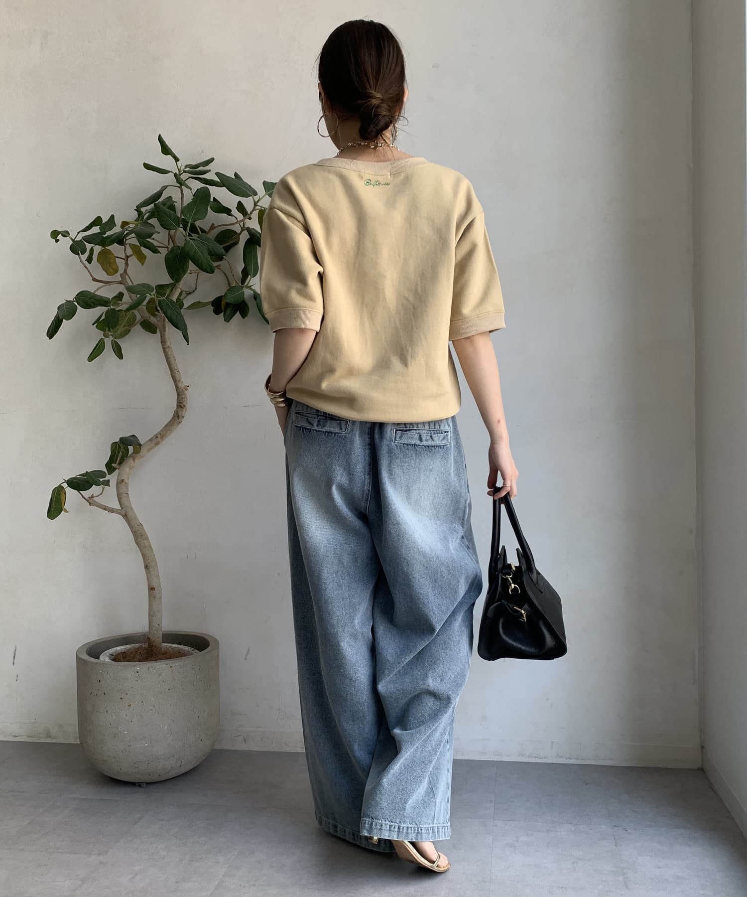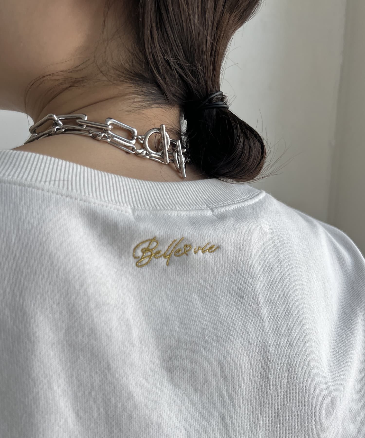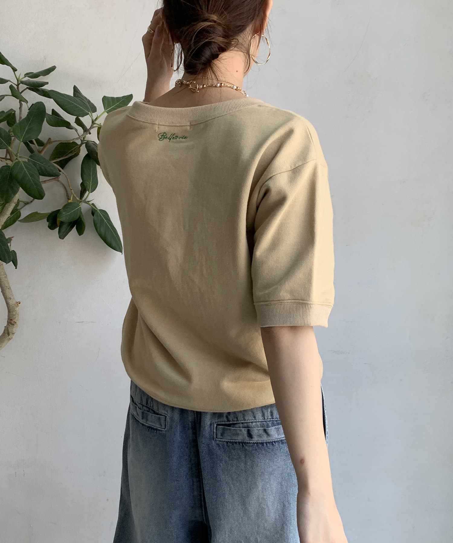 また、後ろの首元にさりげなく刺繍を入れて大人カジュアルな印象に。