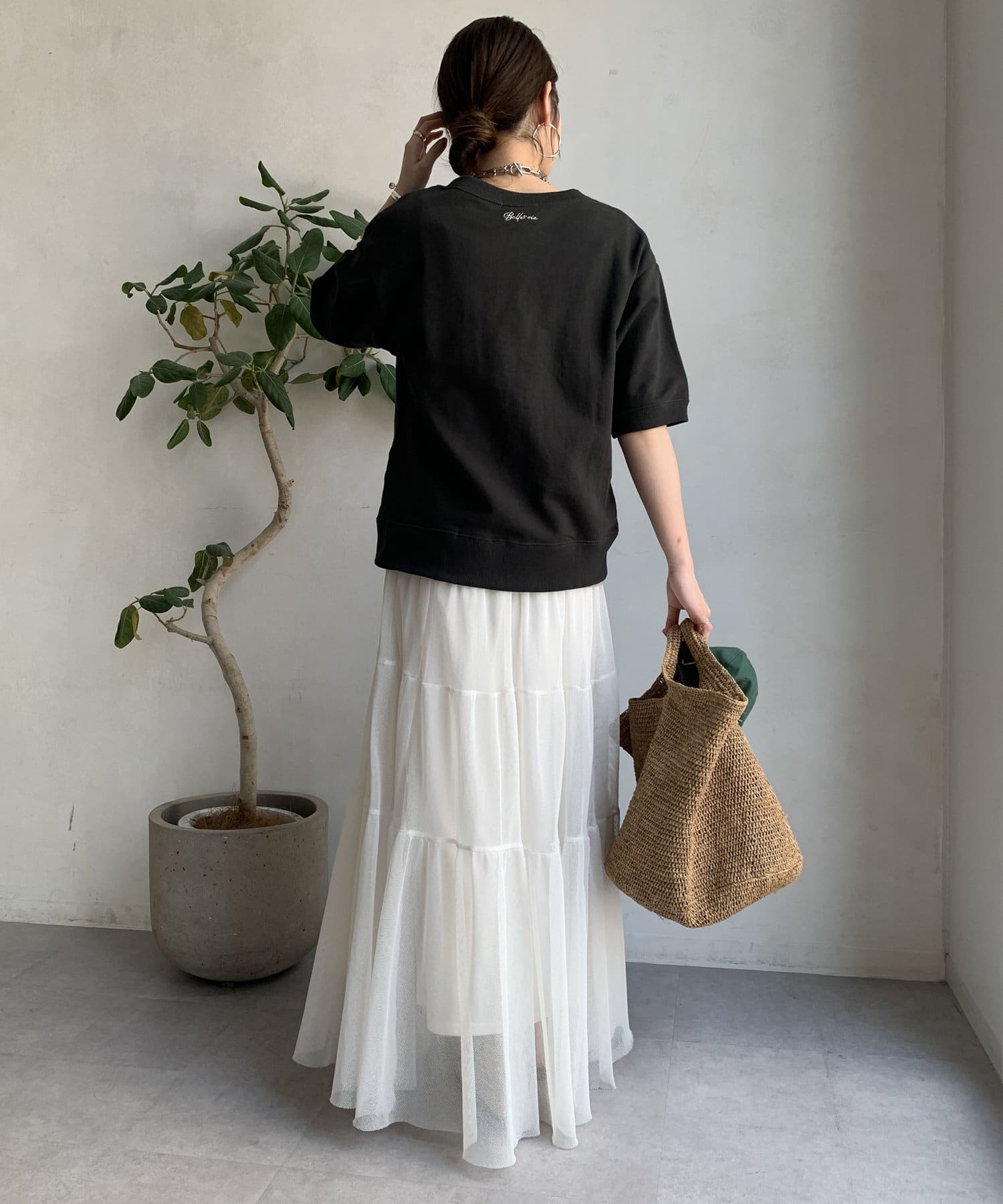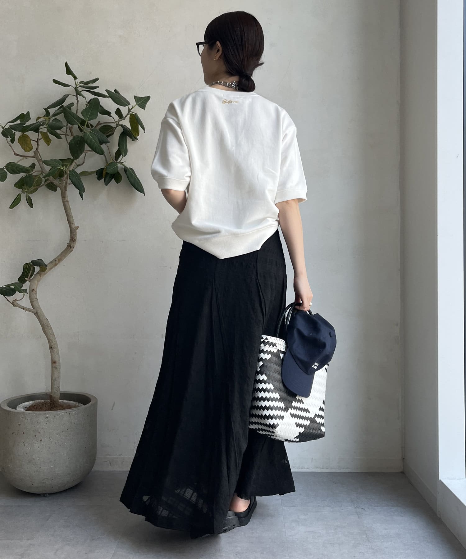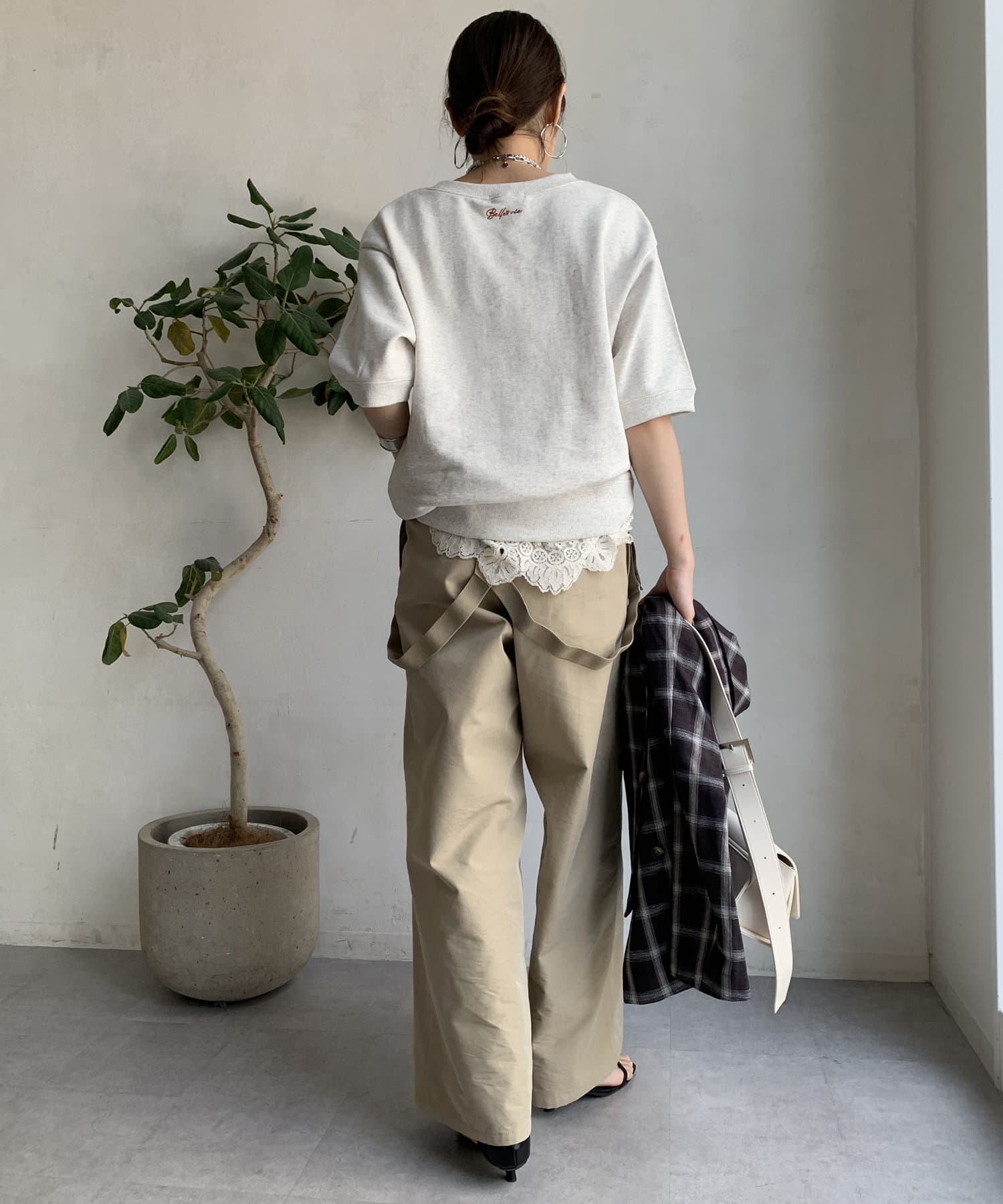また、後ろの首元にさりげなく刺繍を入れて大人カジュアルな印象に。