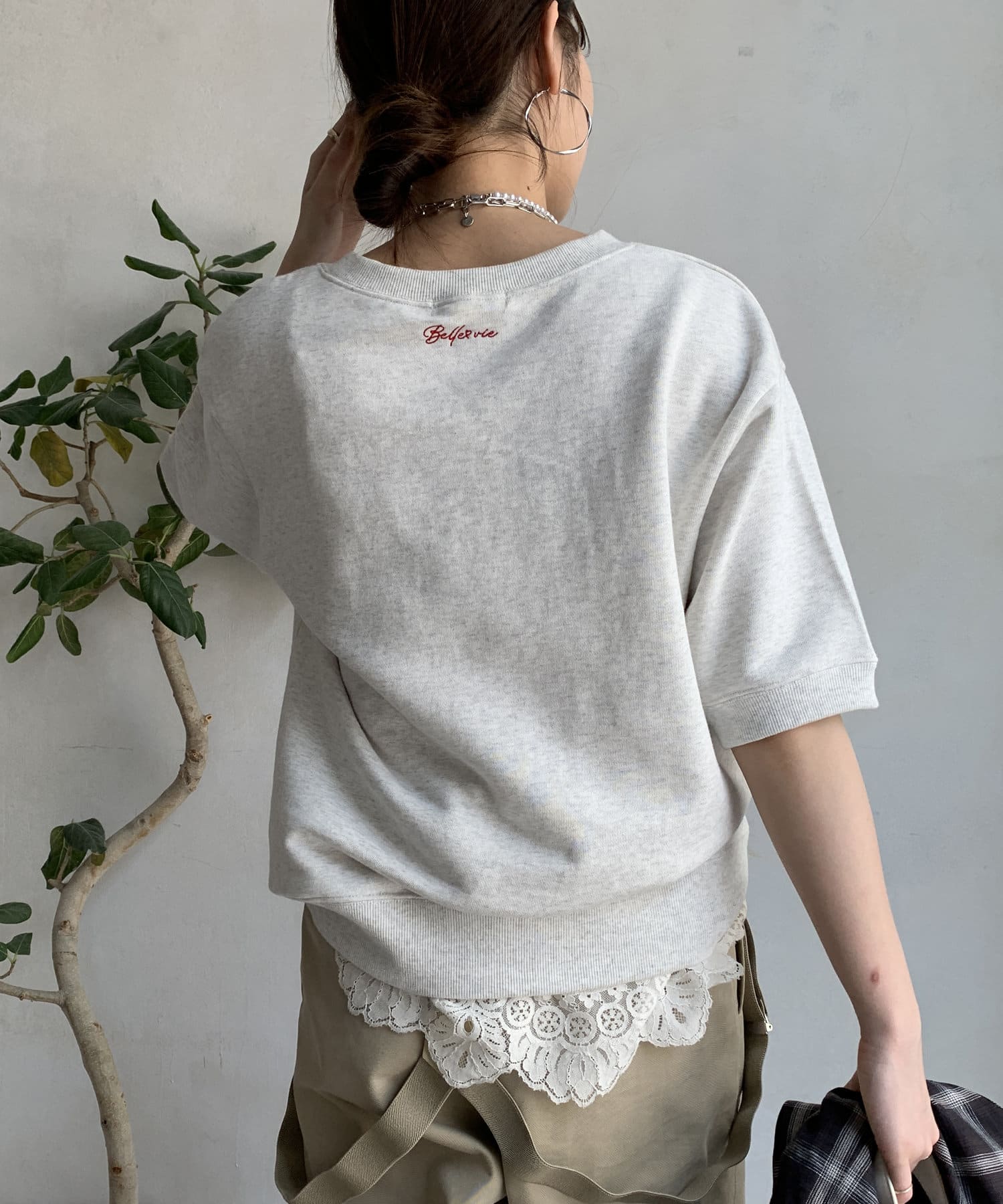 バック刺繍半袖裏毛スウエット