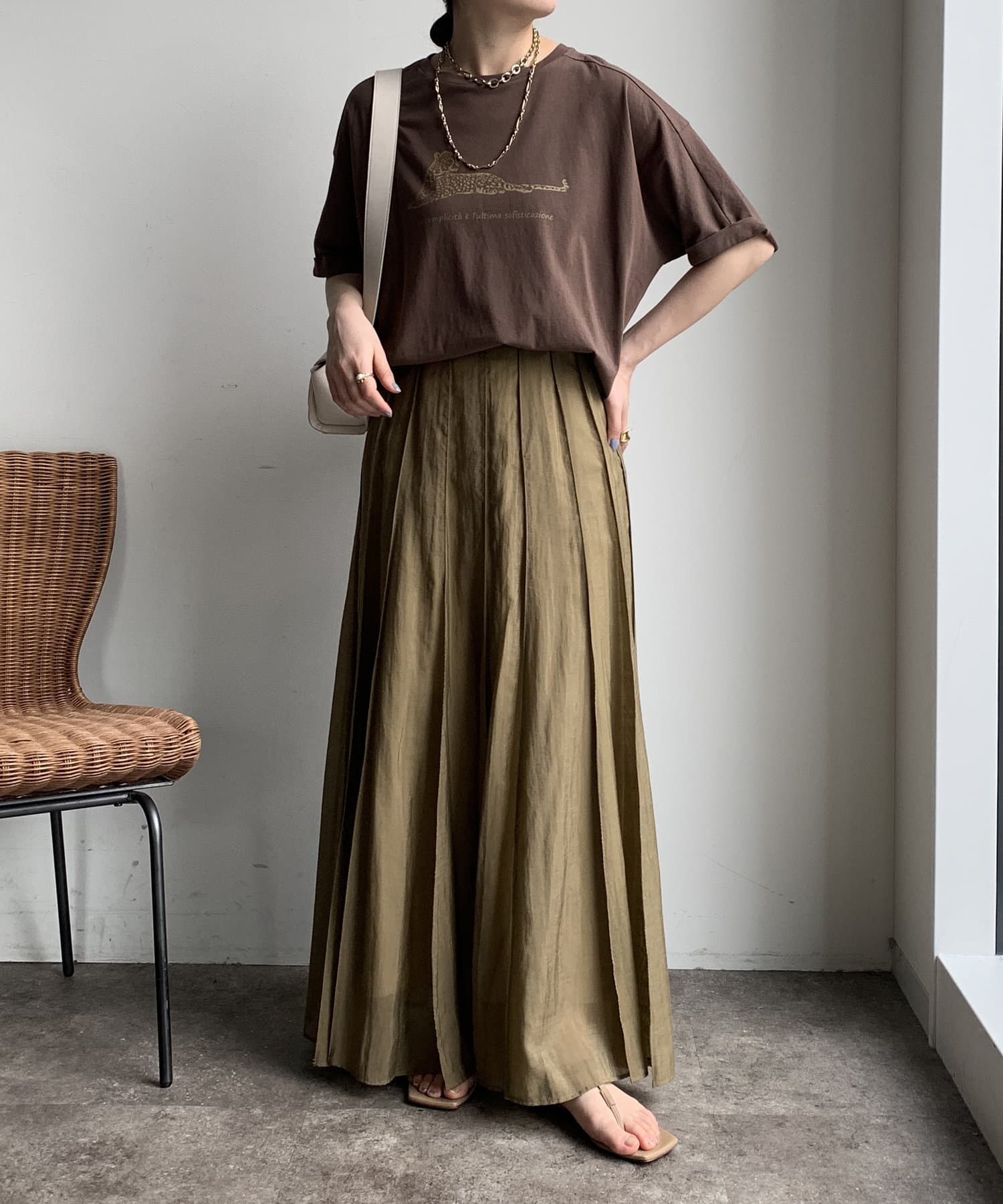 ブラウンやブラックはワントーンコーデにしても野暮ったくならないのが嬉しです◎