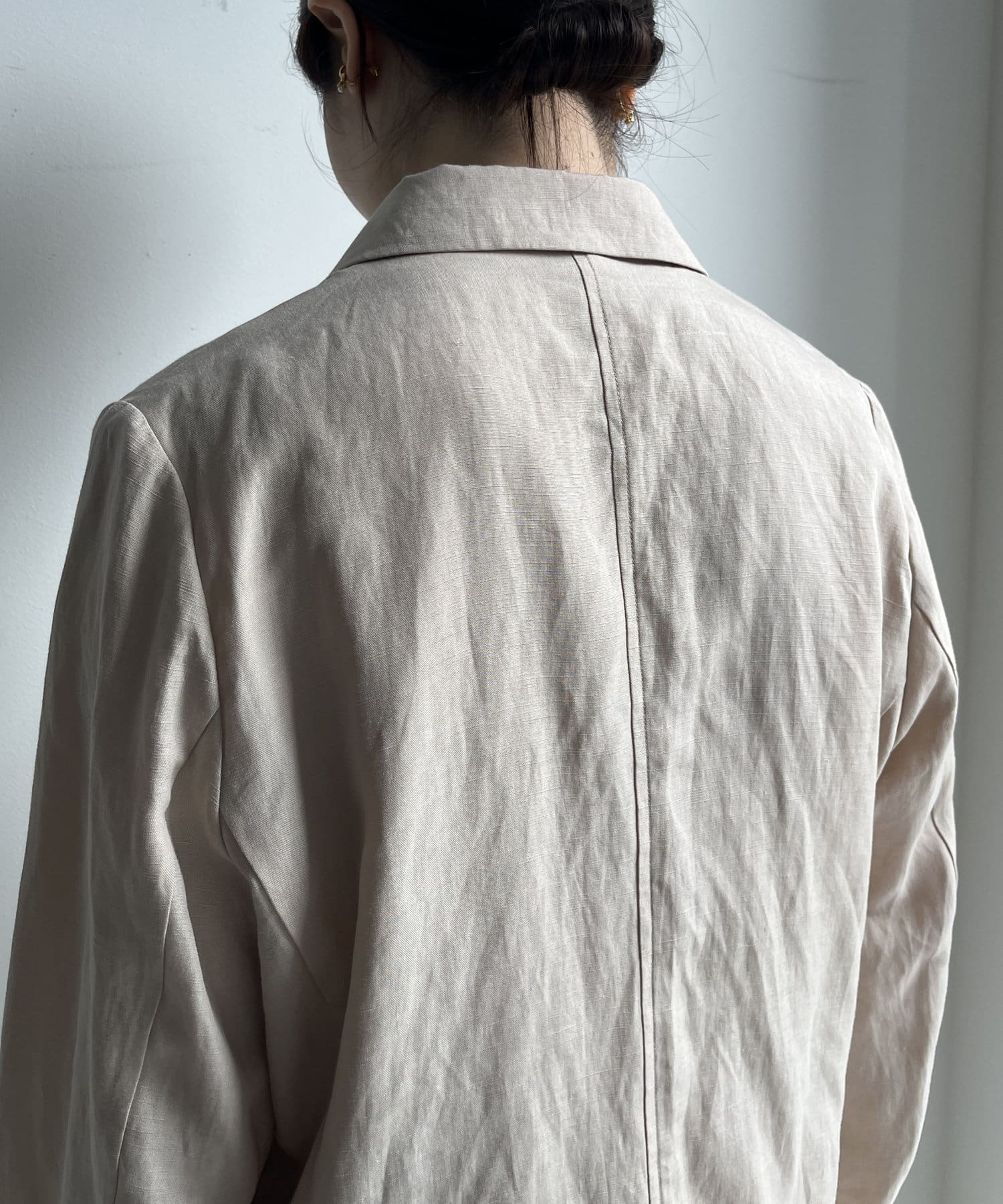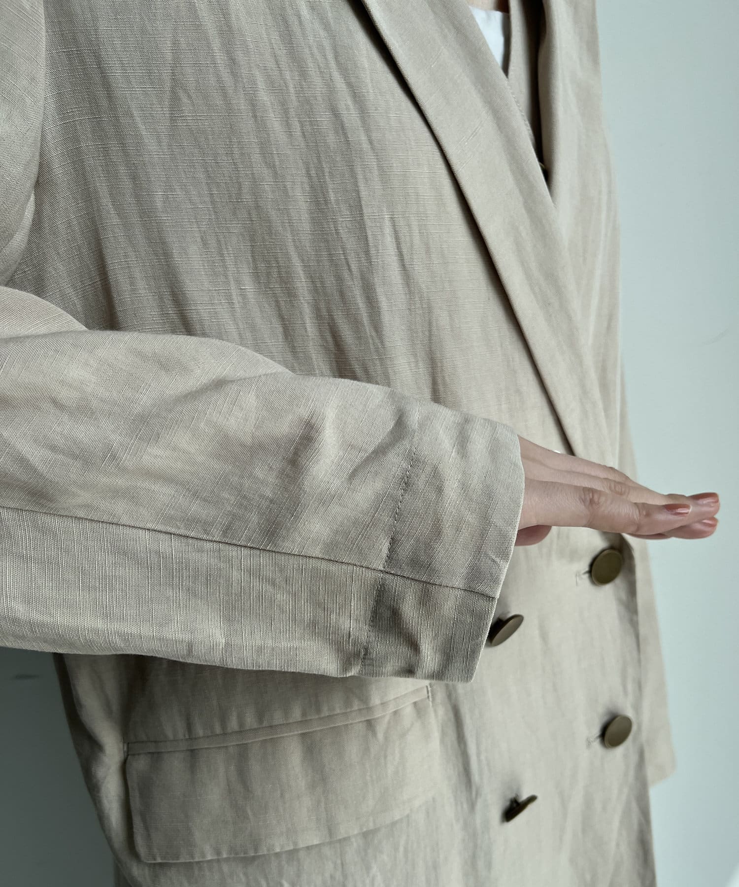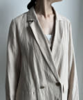 シーズンムード漂う軽やかな素材は、麻特有のネップや節感の風合いが上品さを演出。