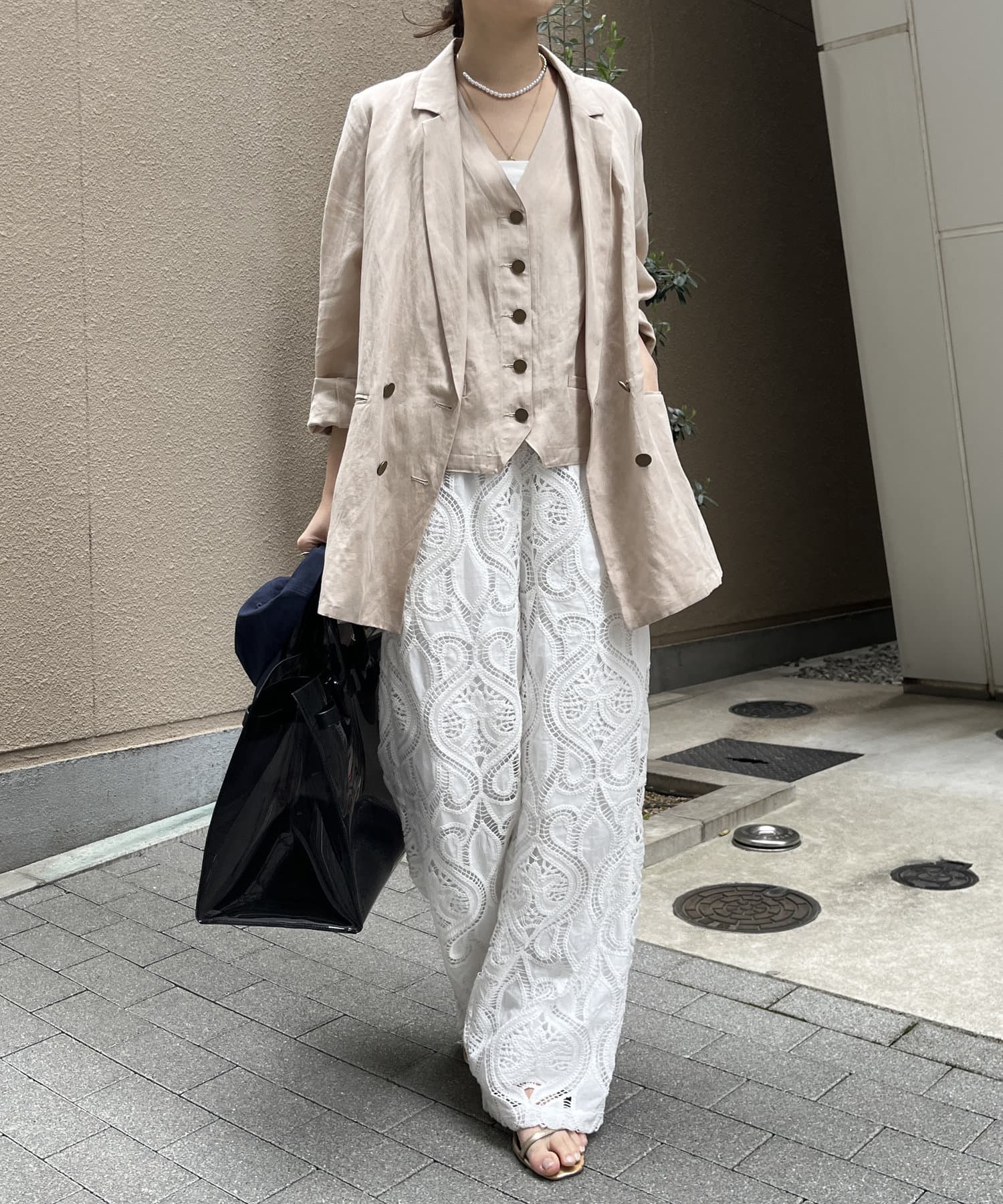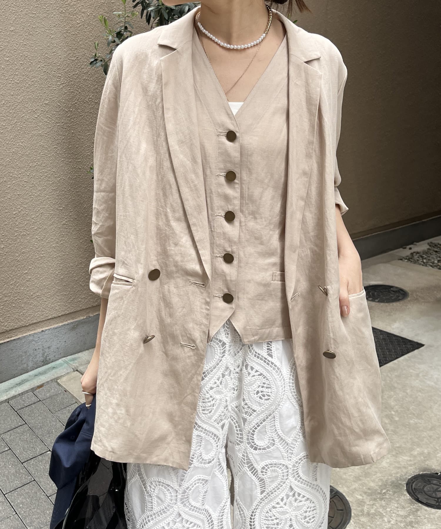 同素材のベスト(DDZ1051307A0007/リオセルリネンベスト)とセットでも着用可能です!
