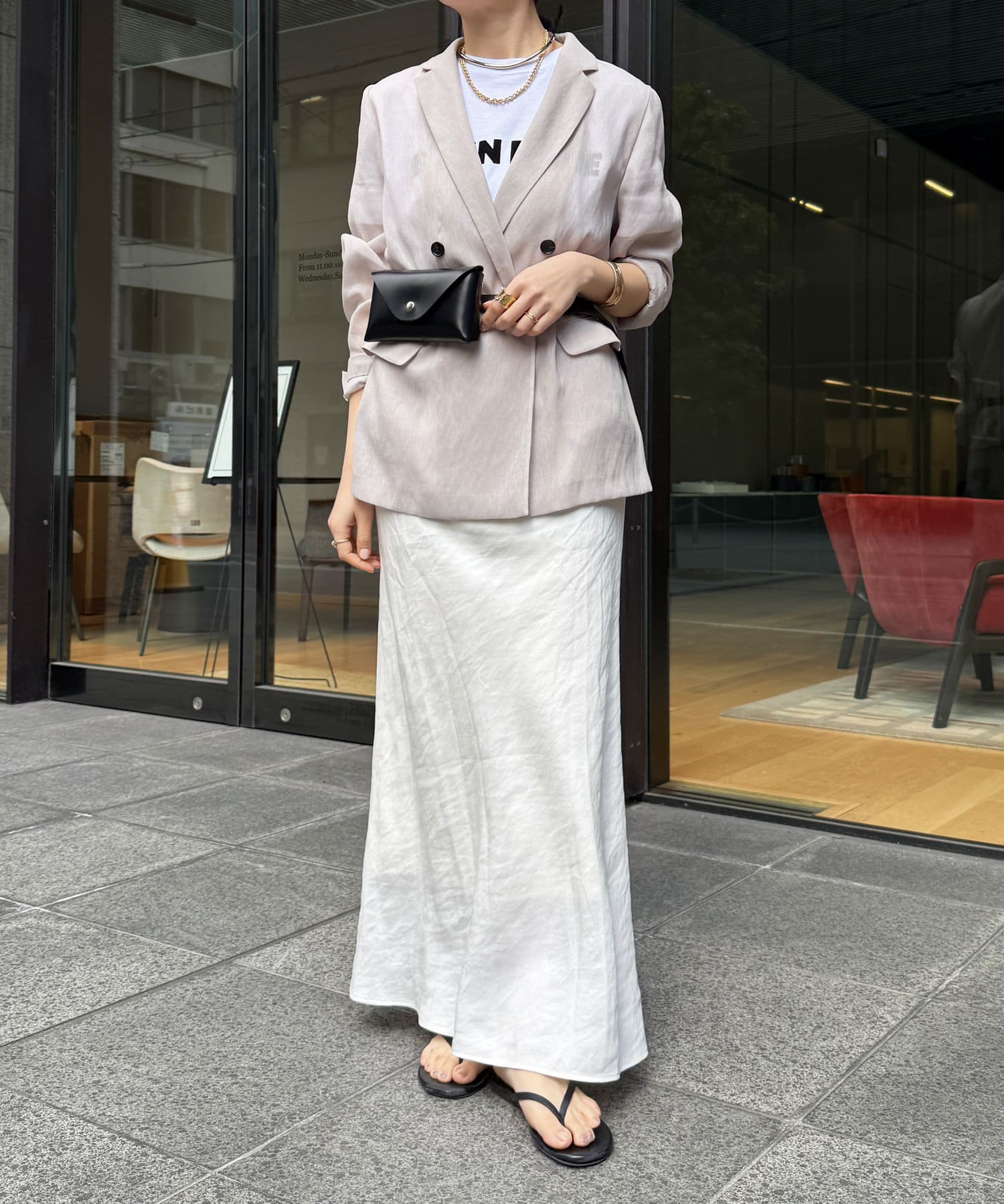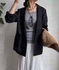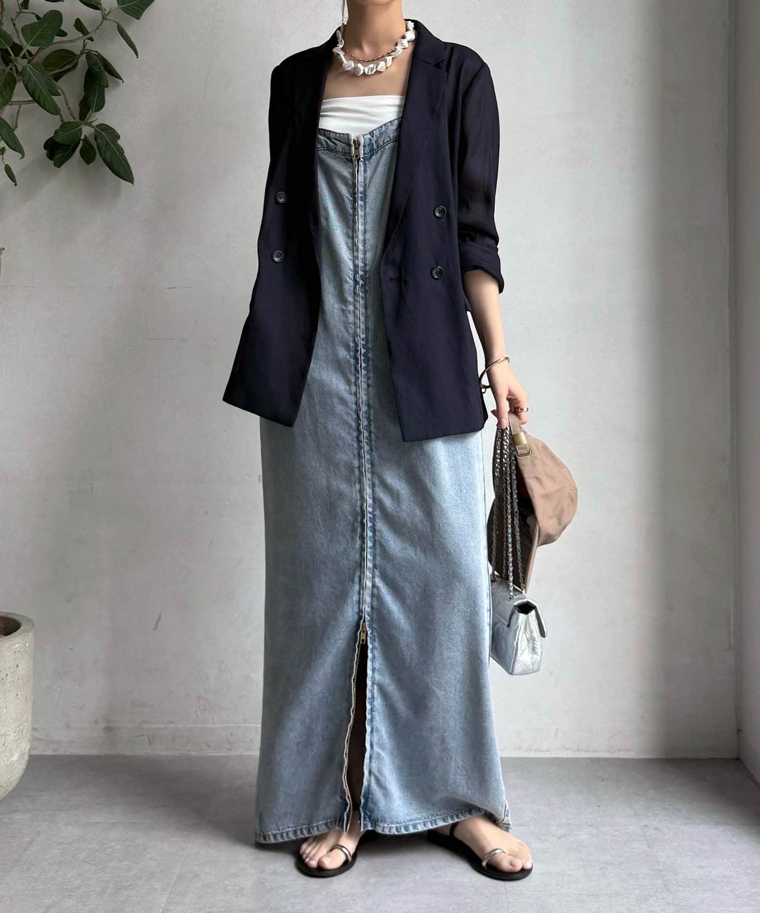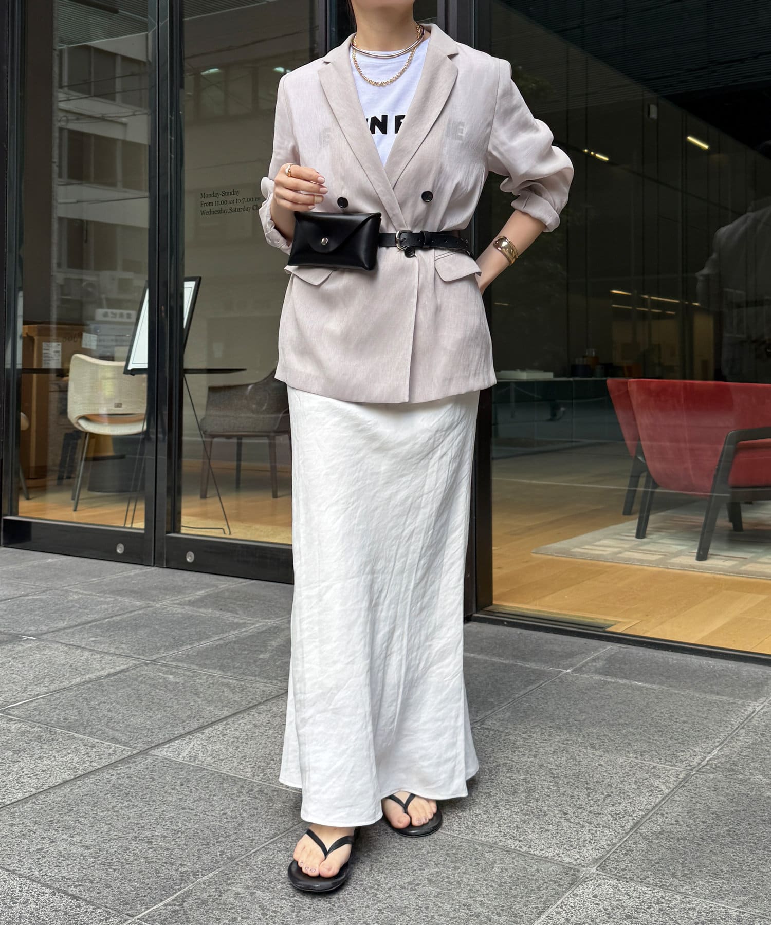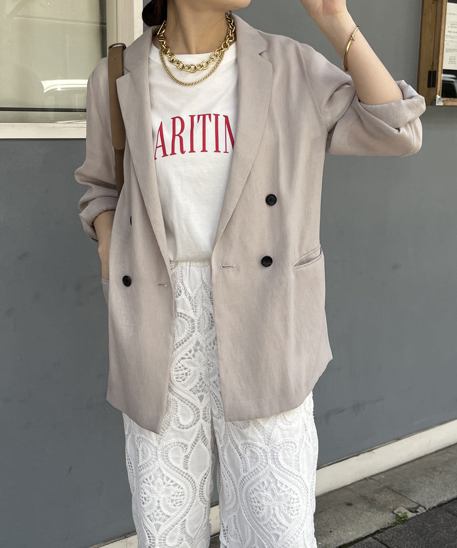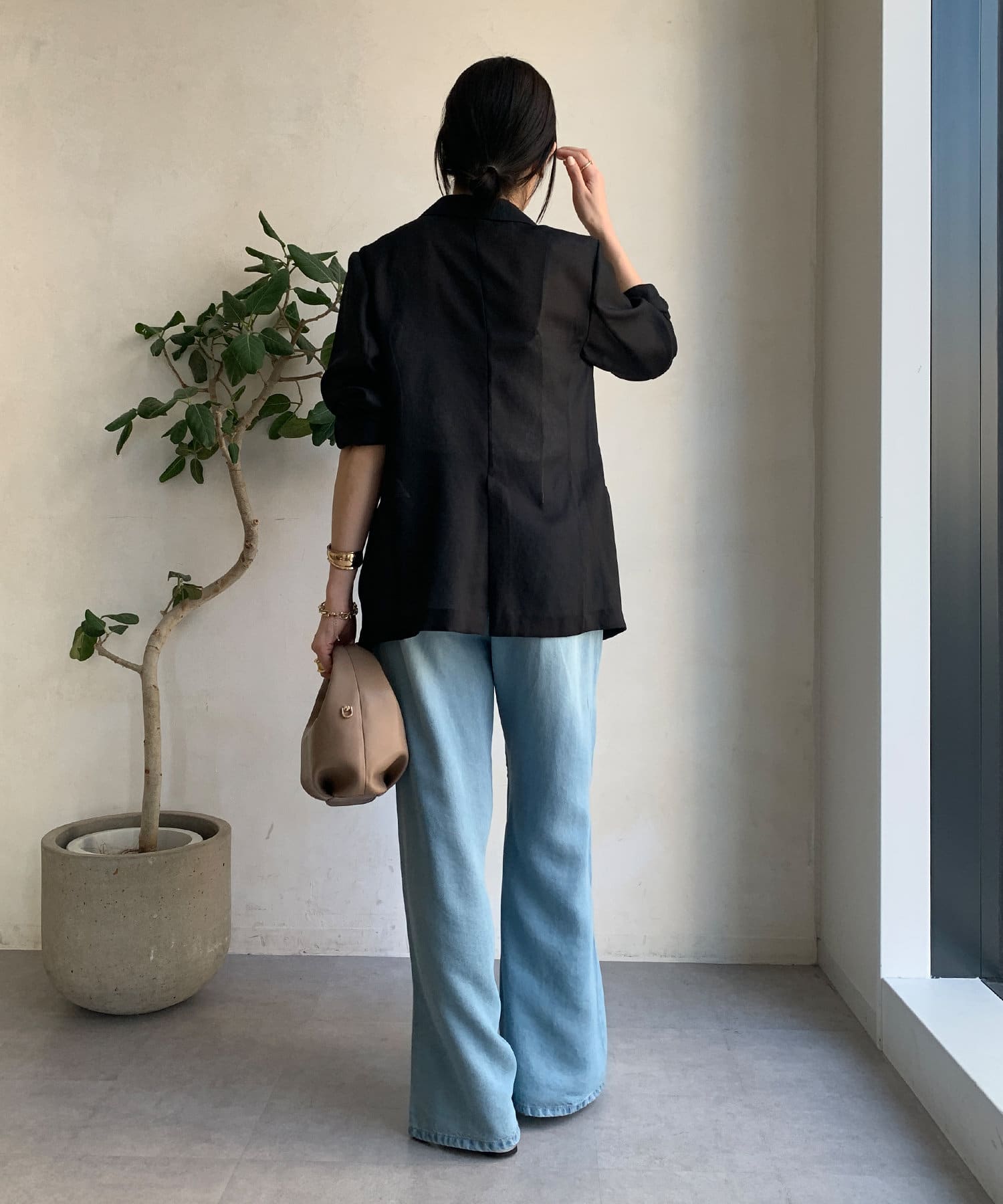 カジュアルなスタイルに程よくオトナな要素を入れたいときにぴったりな1着ですよ。