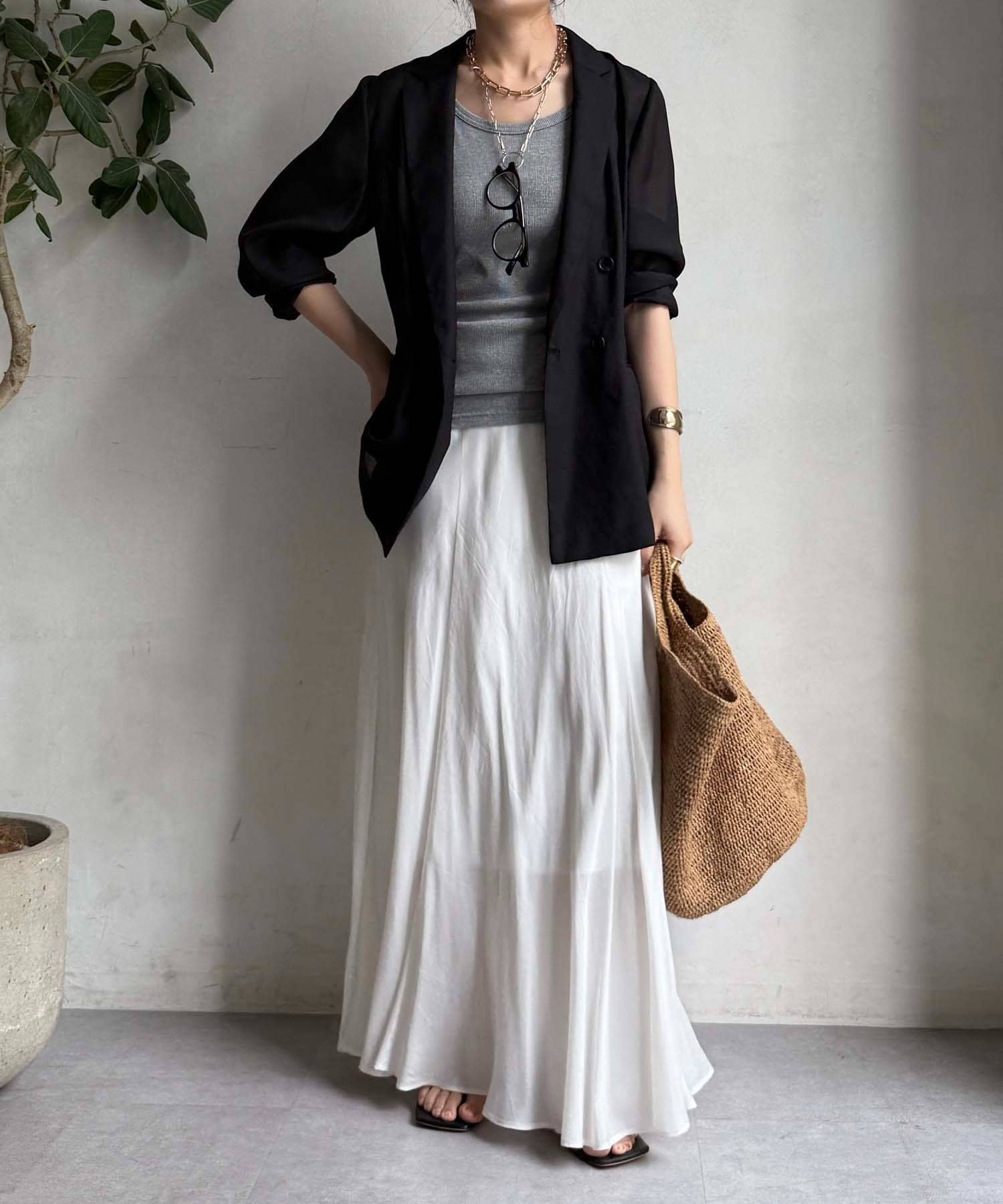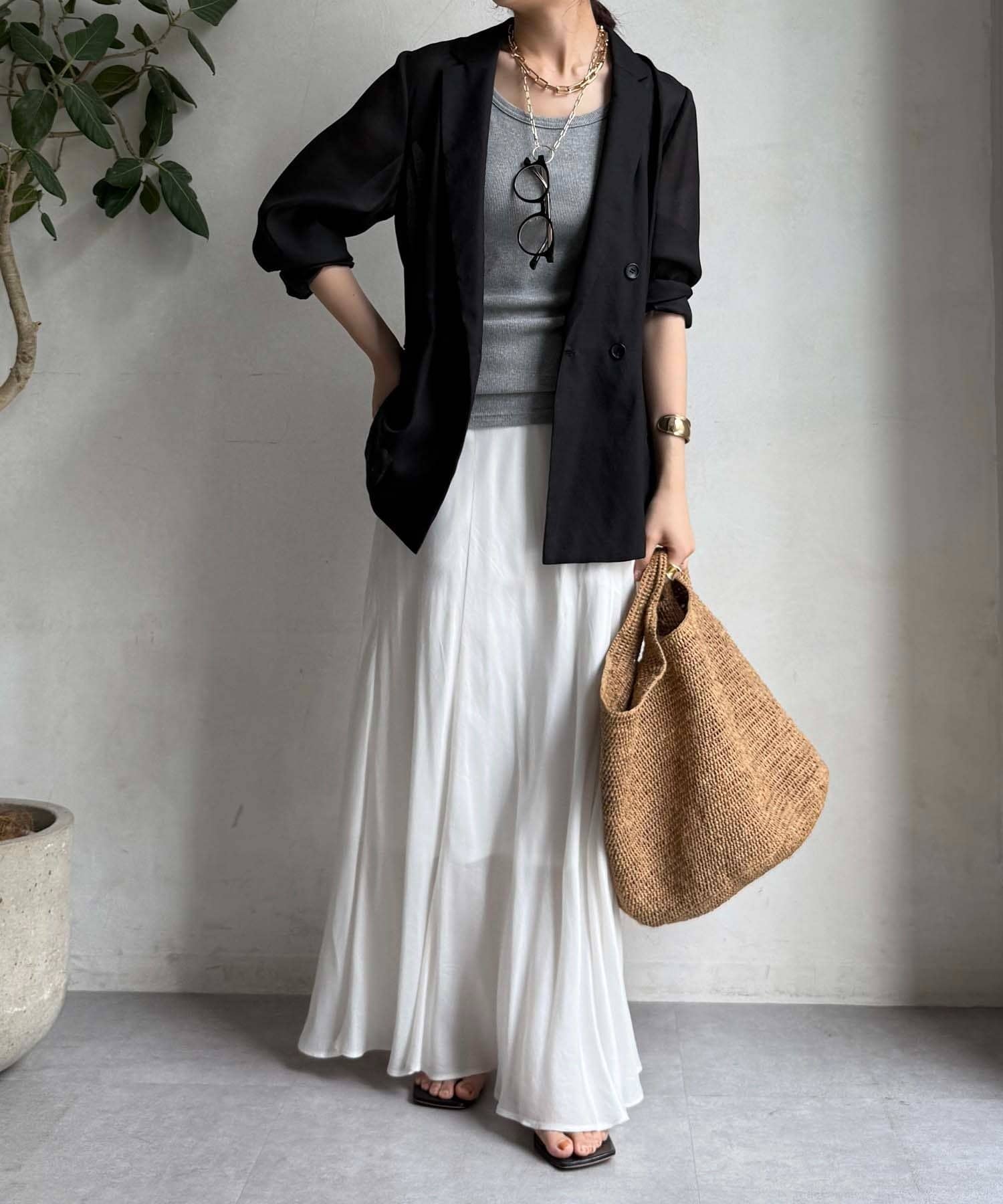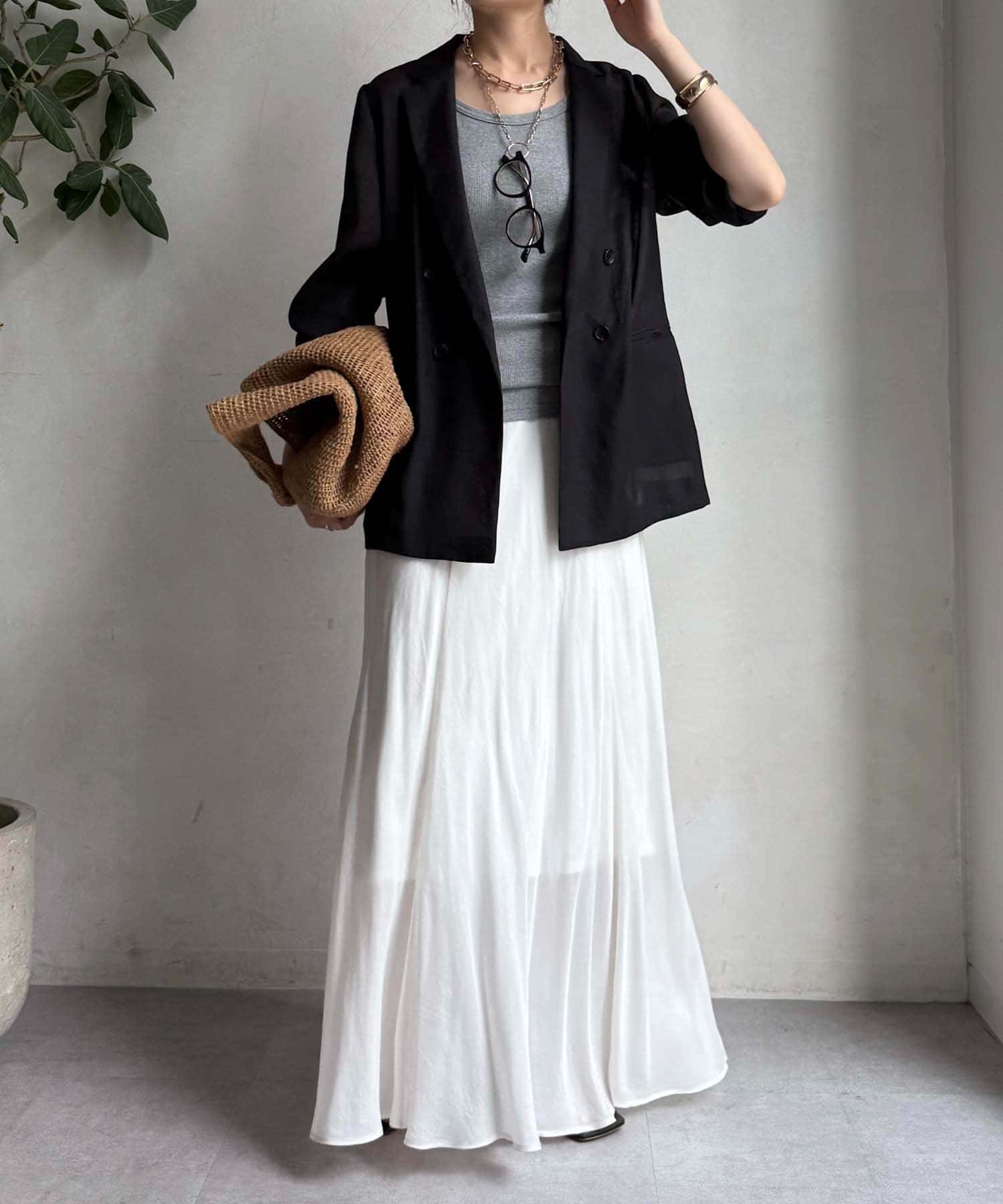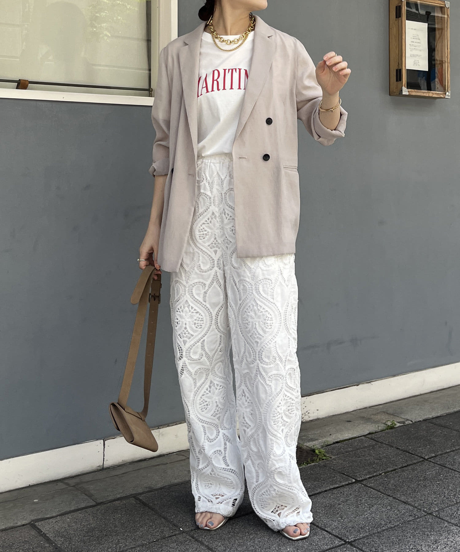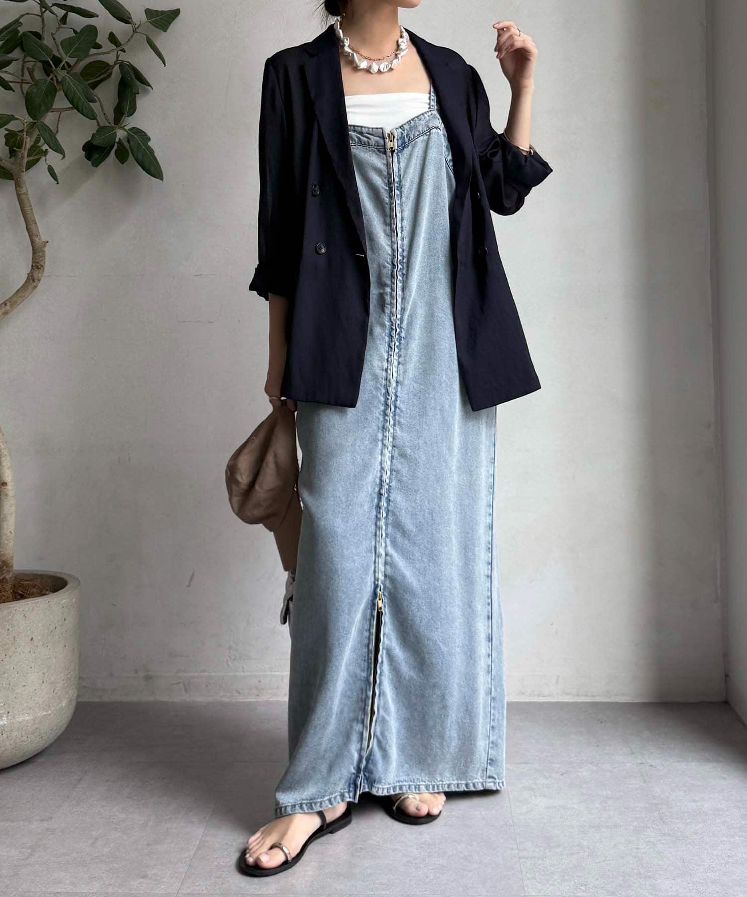 カジュアルなスタイルに程よくオトナな要素を入れたいときにぴったりな1着ですよ。