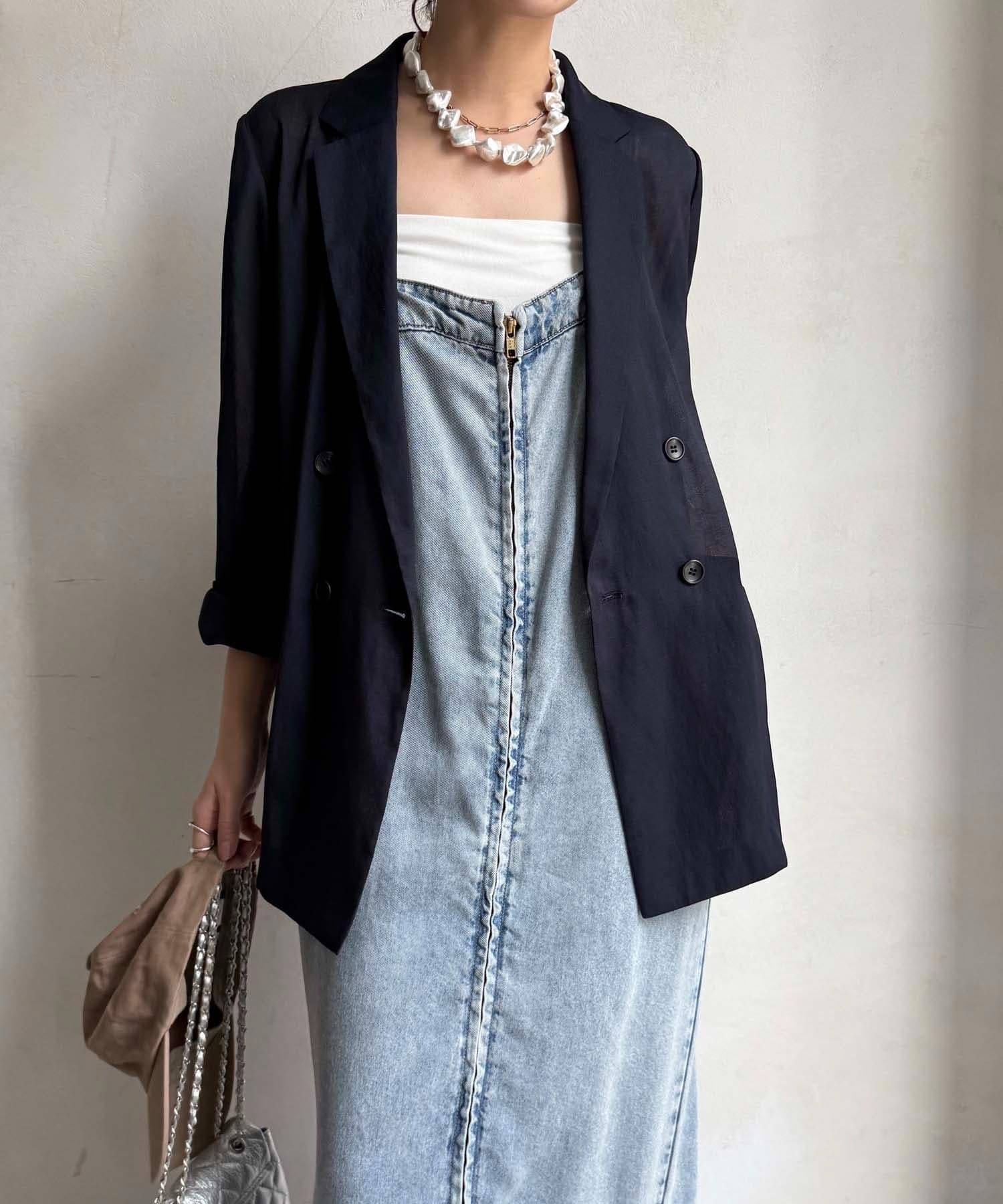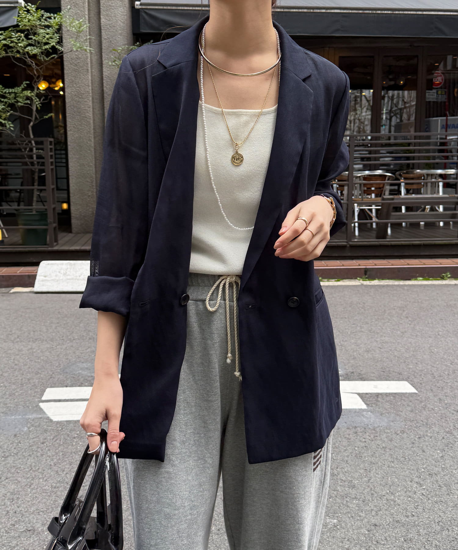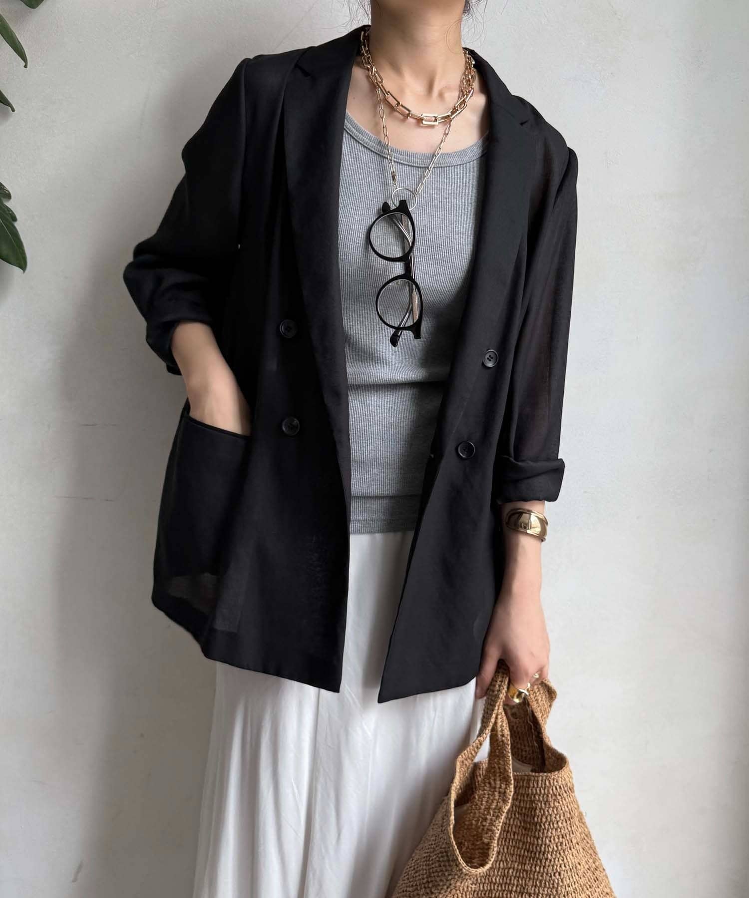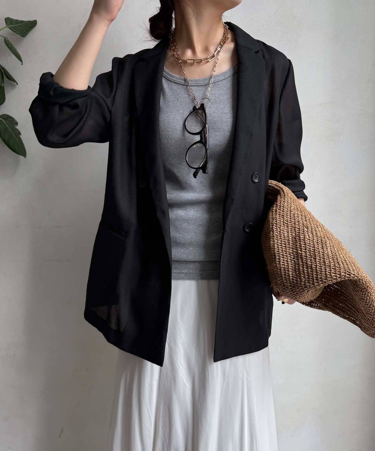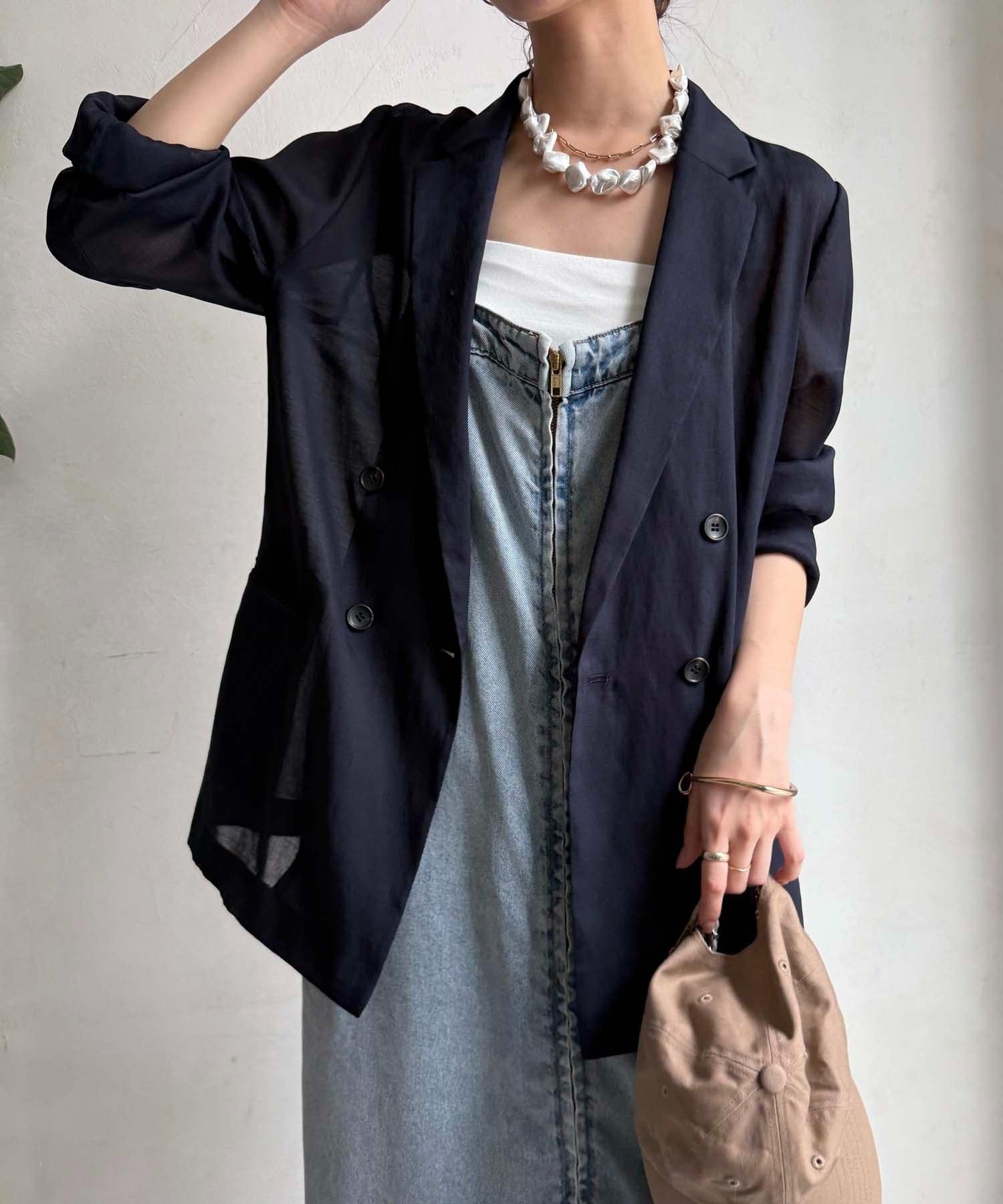 【夏の透けジャケット】強撚シアーダブルジャケット