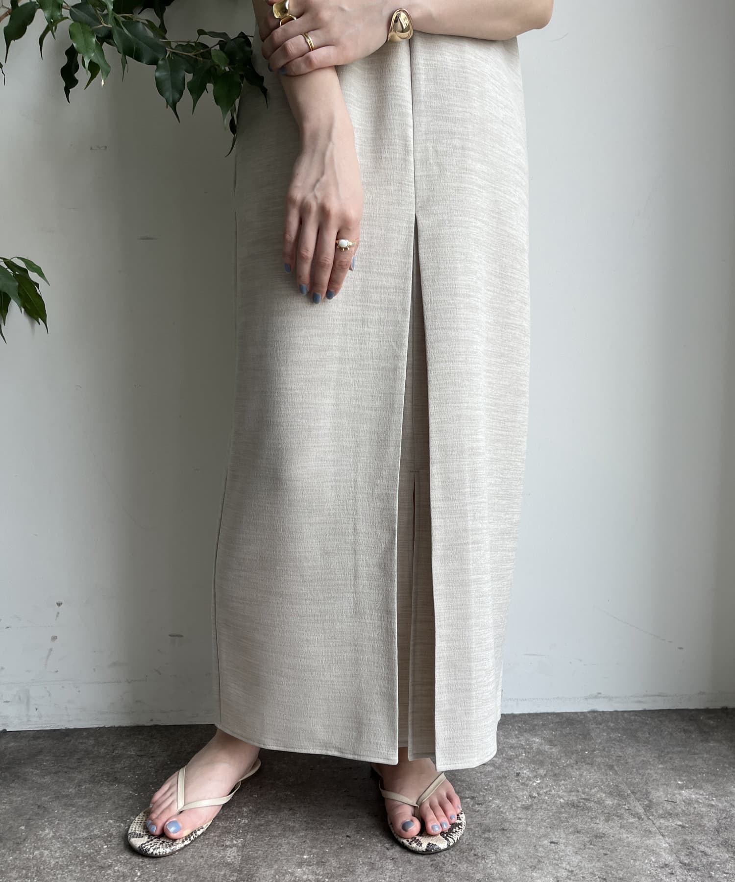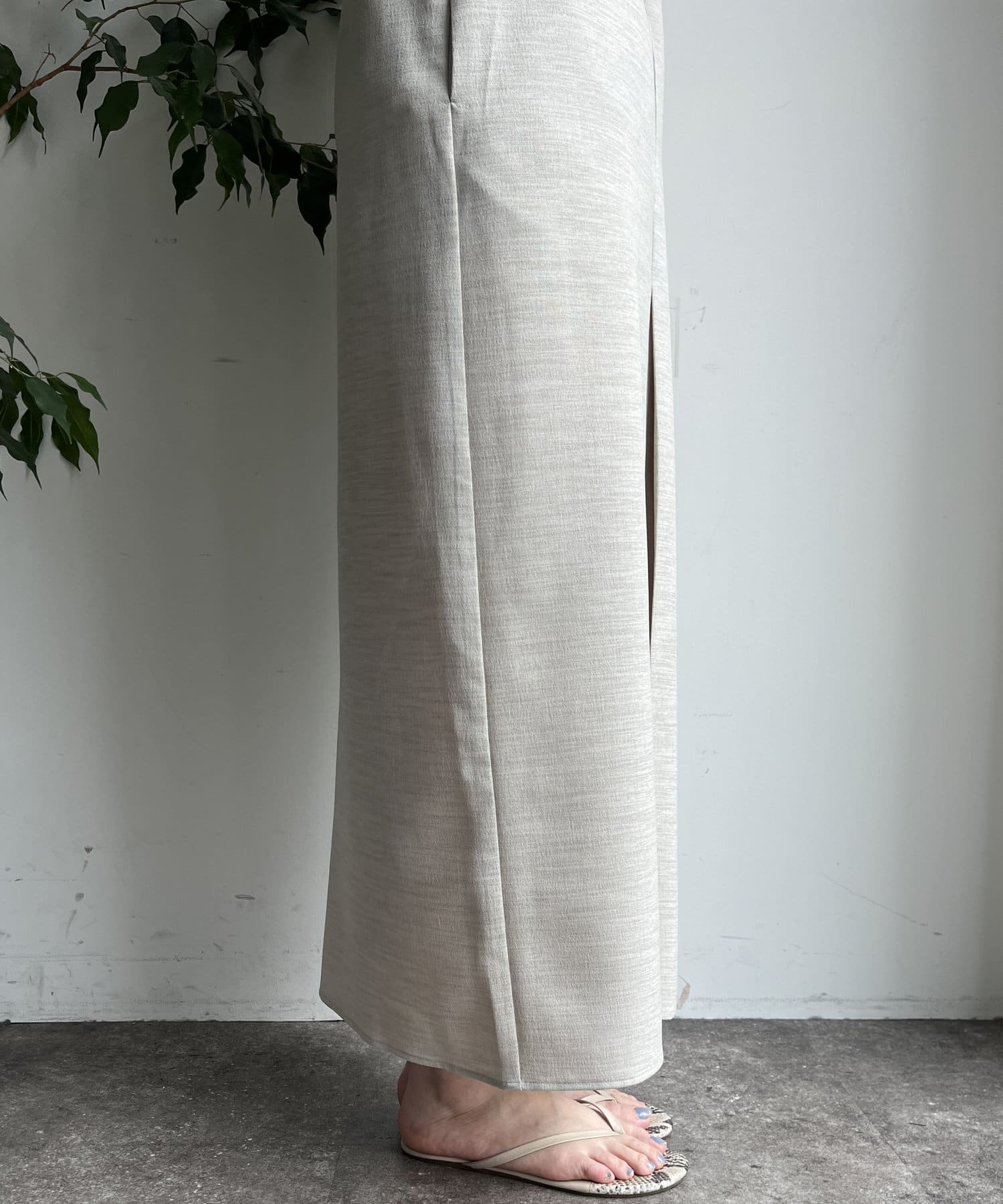スリットがフロントに施されており、プレスをきかせたデザインがよりこなれ感を演出してくれ、