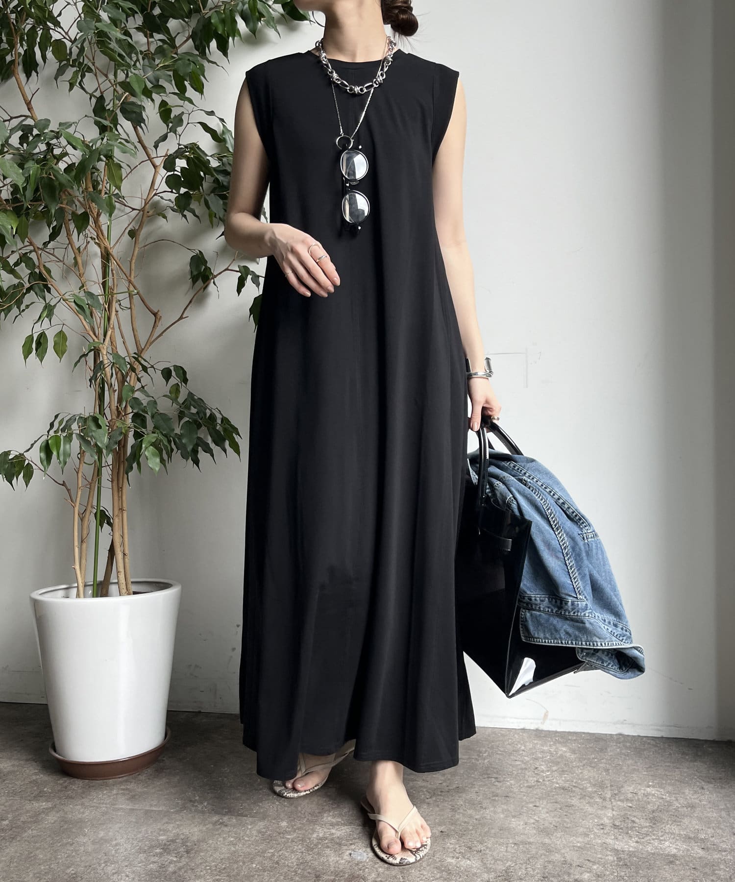 シンプルなデザインでフレアに広がるシルエットが魅力のワンピース!