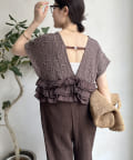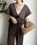 ワイドシルエットのパンツは、体型カバー効果も抜群。