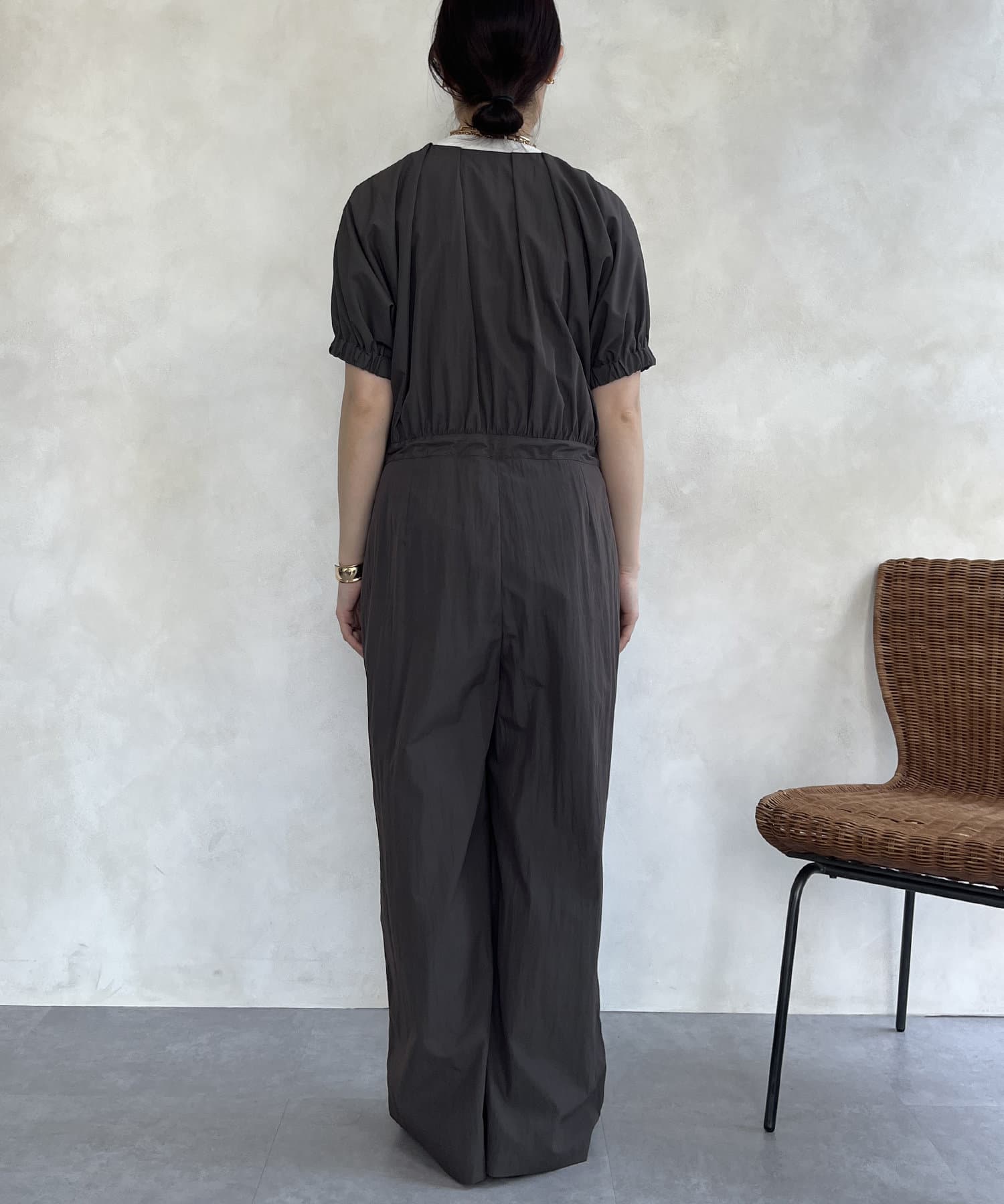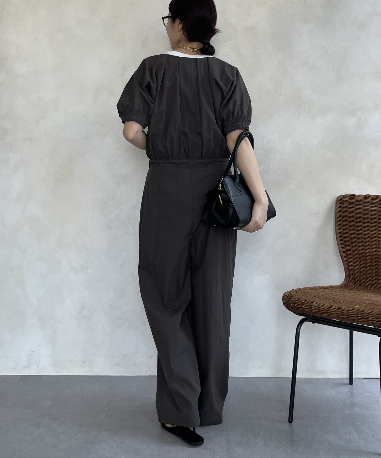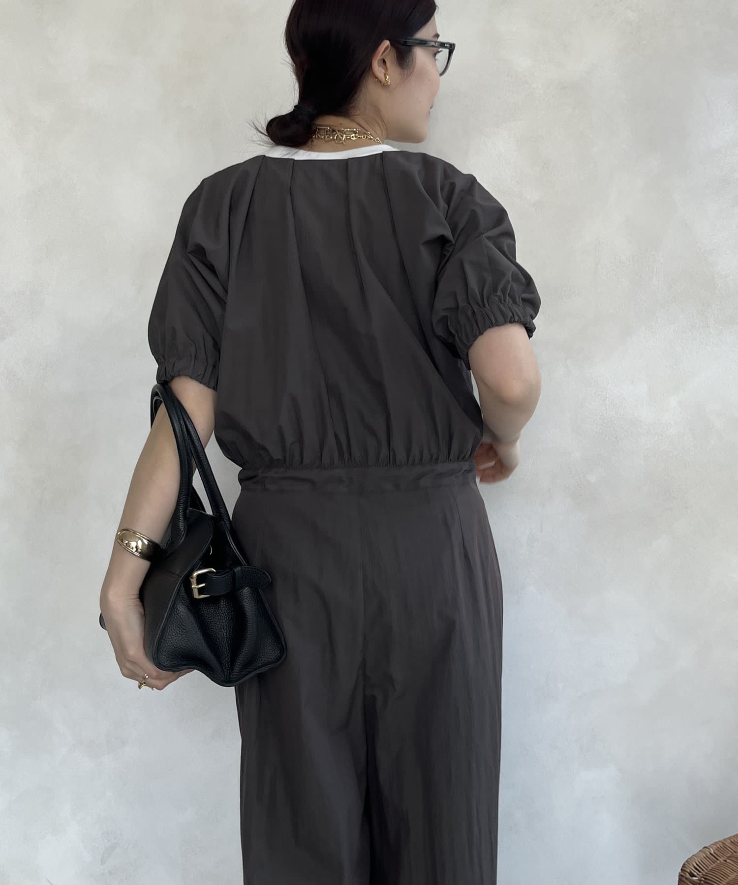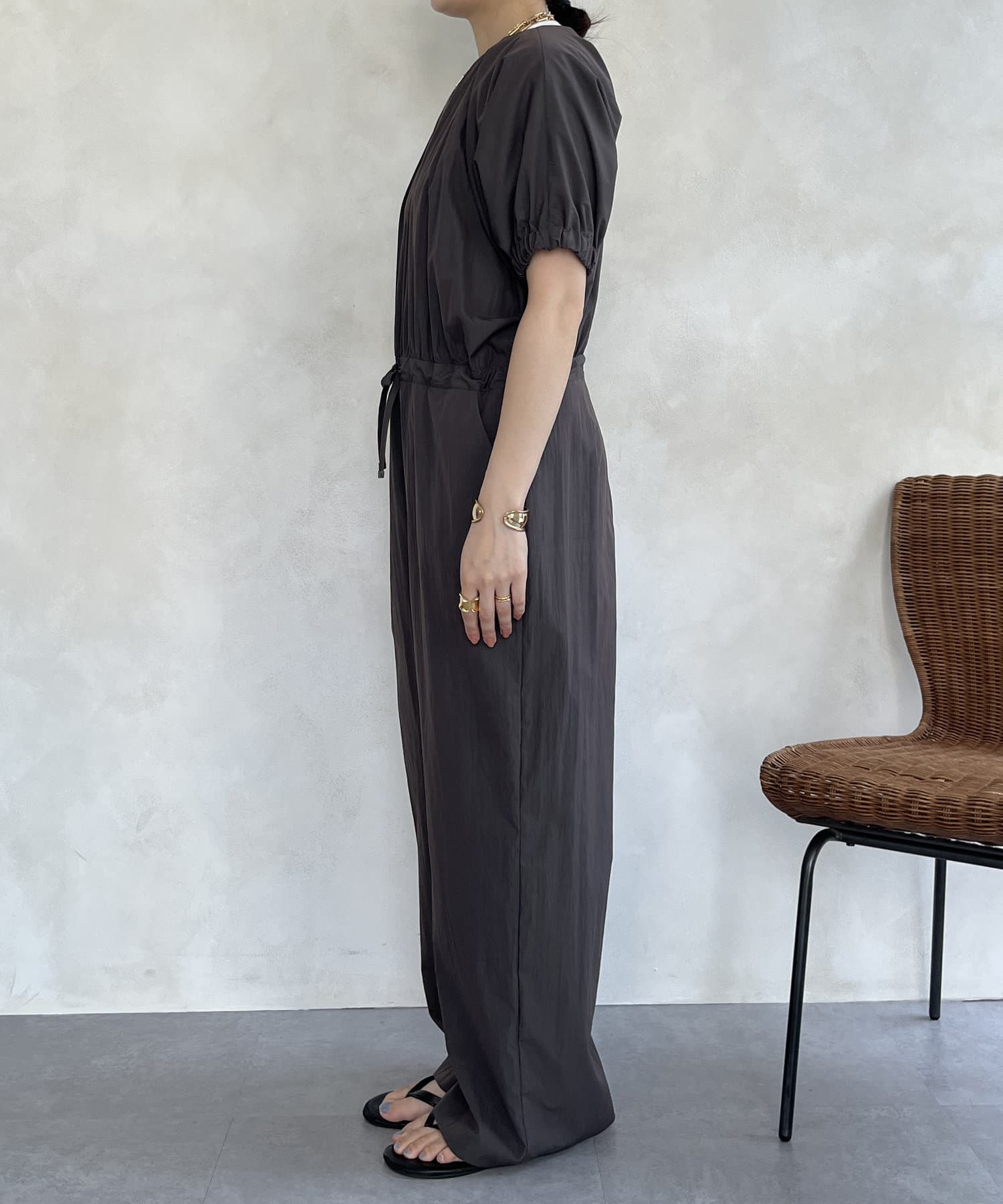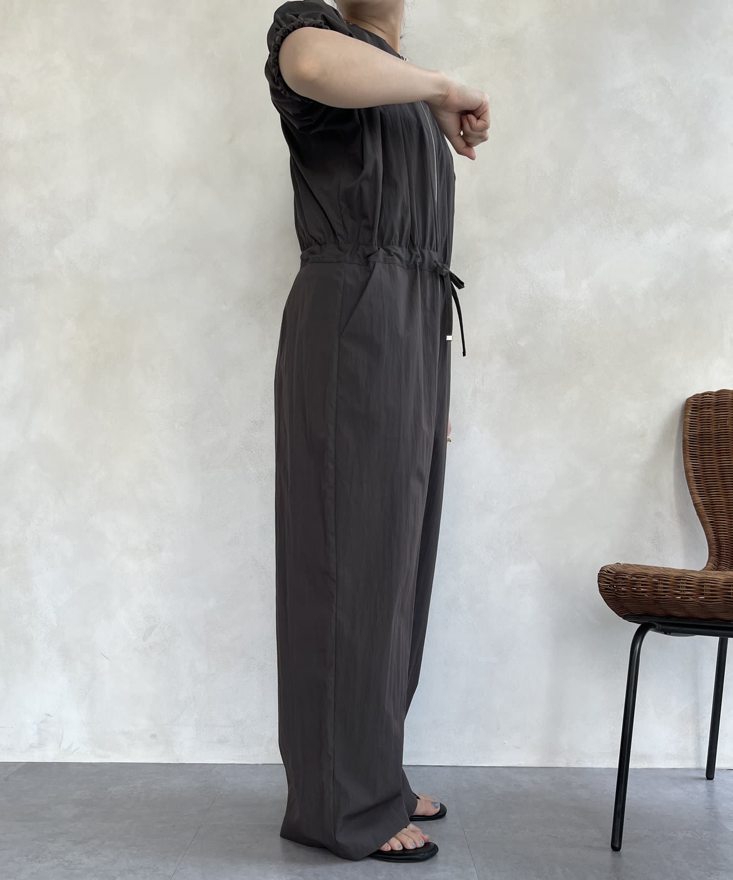 洗練されたリラックススタイルが叶う、袖ギャザーオールインワン!