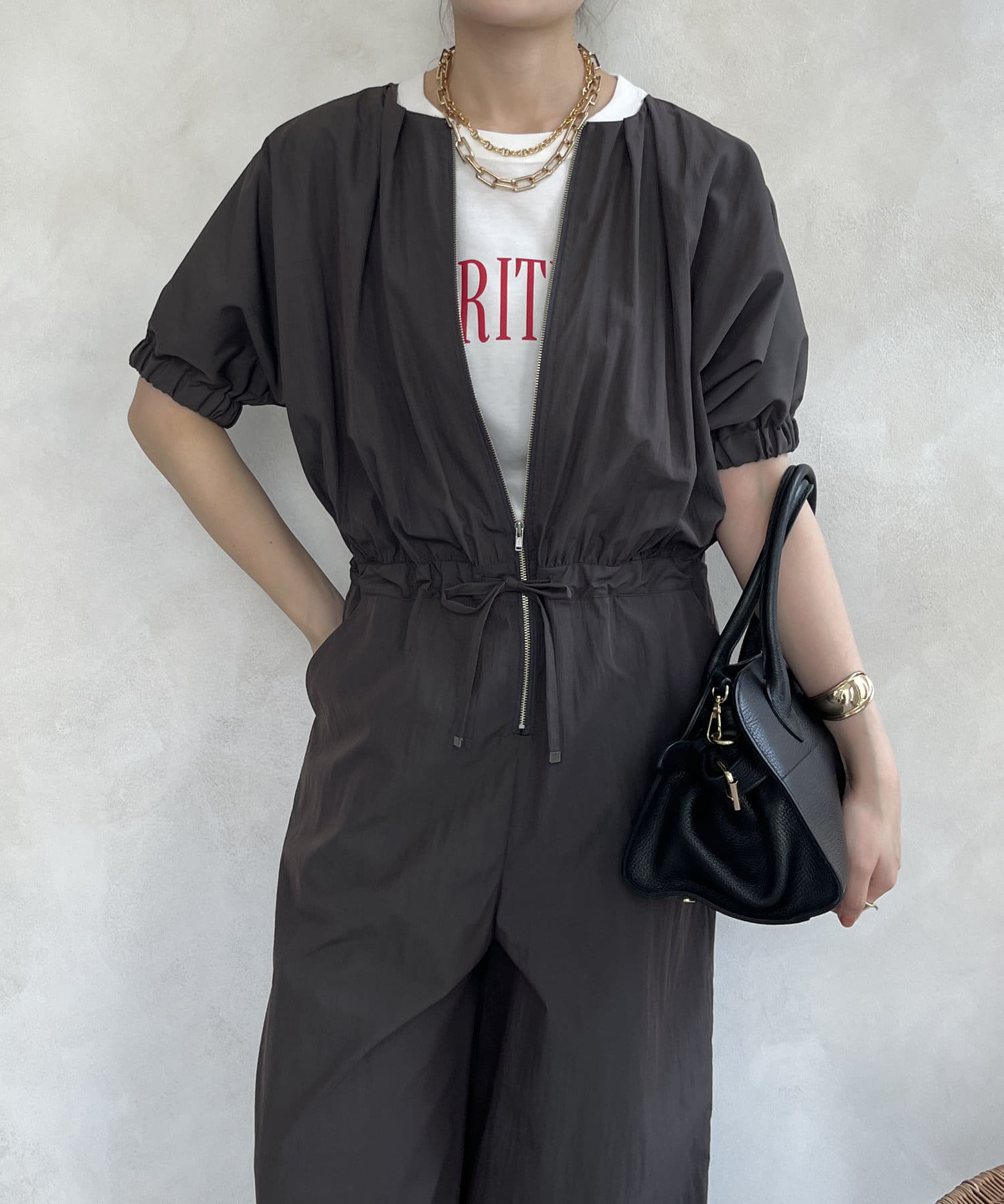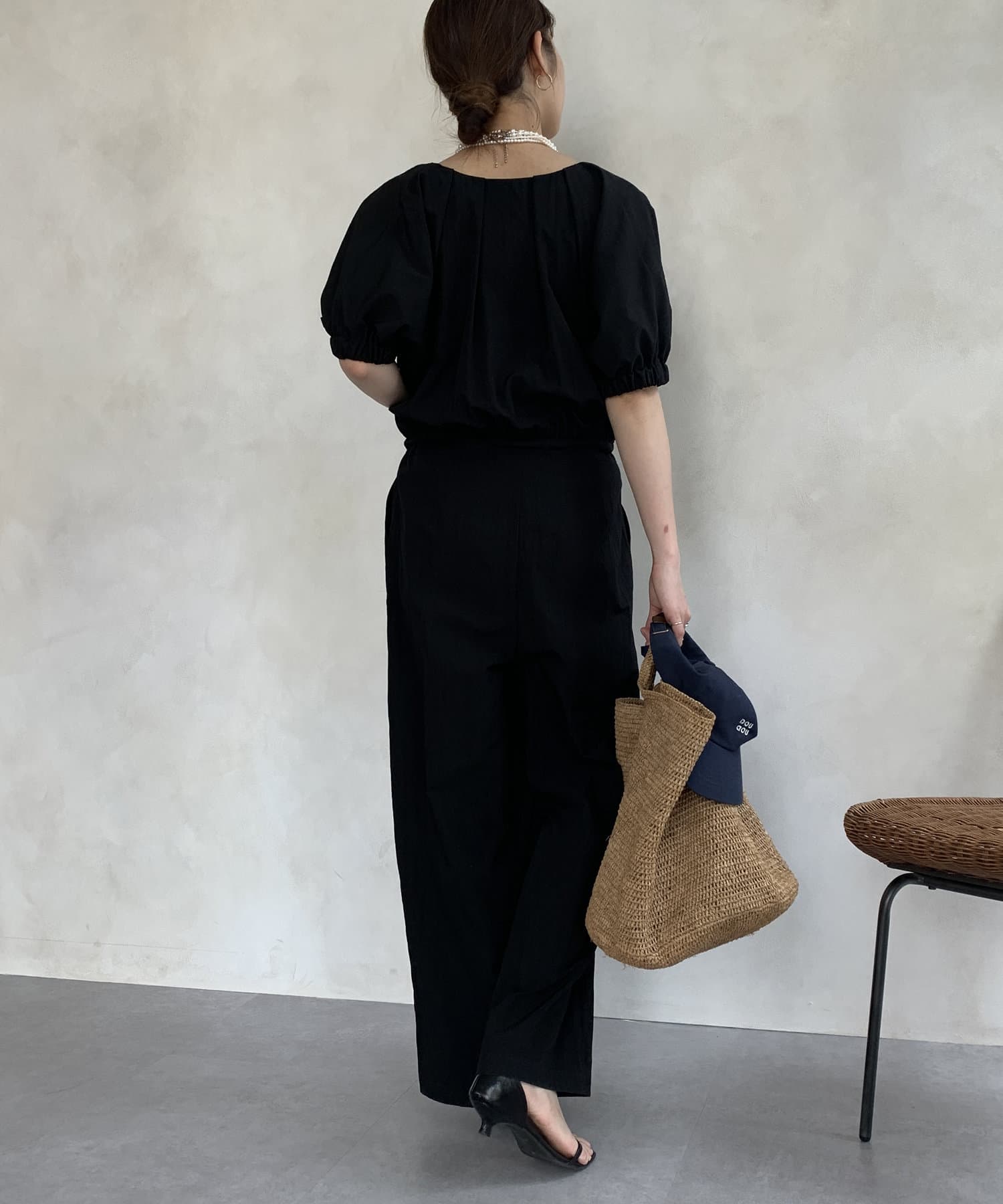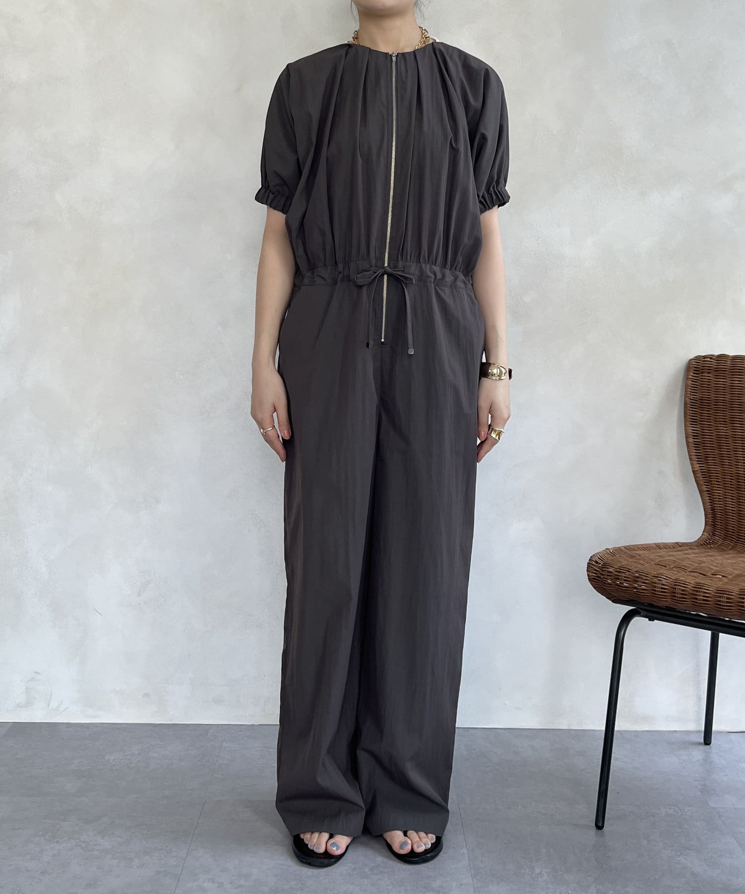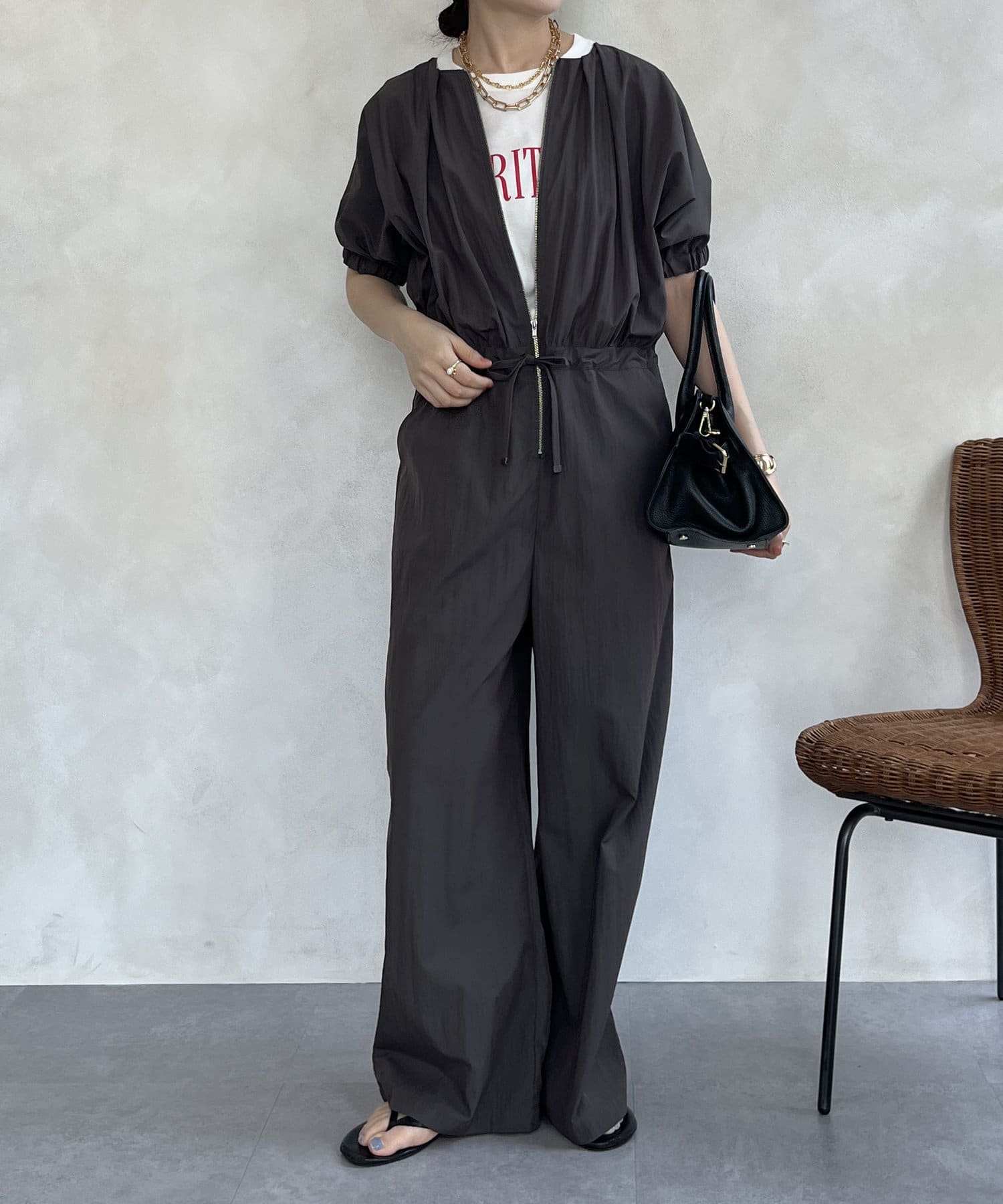 洗練されたリラックススタイルが叶う、袖ギャザーオールインワン!