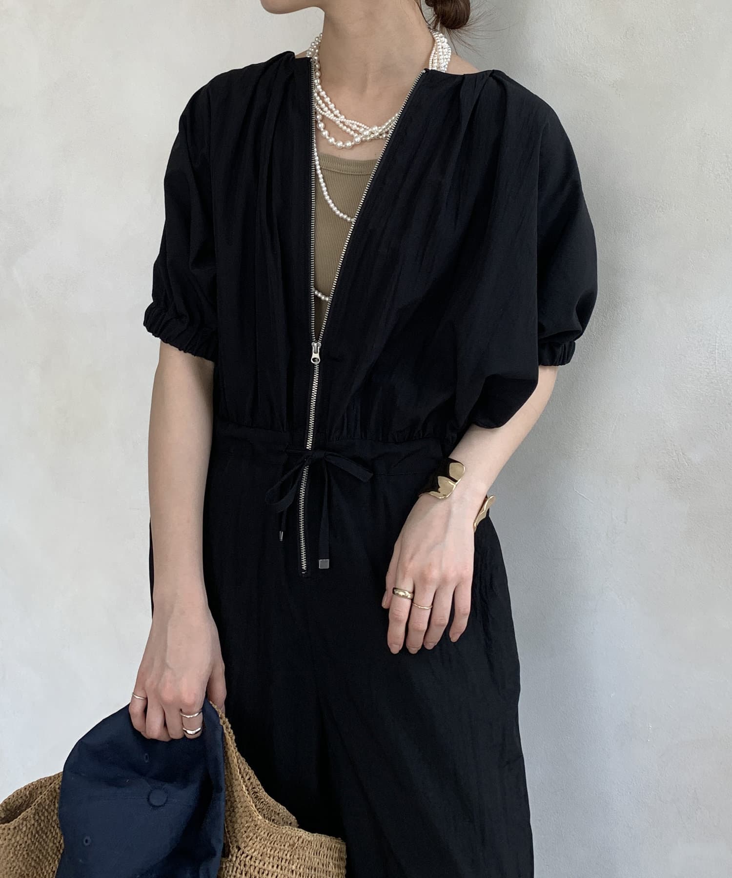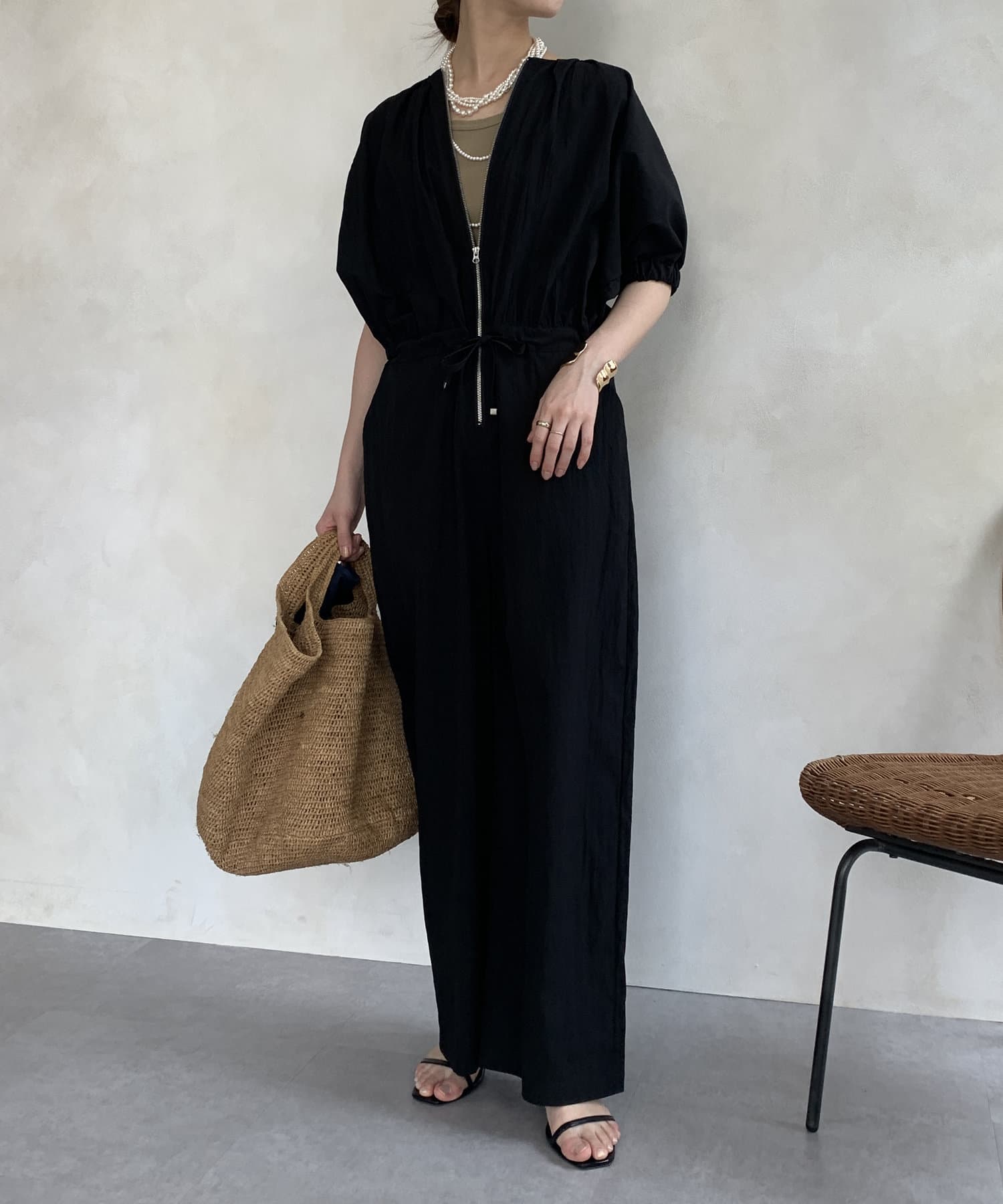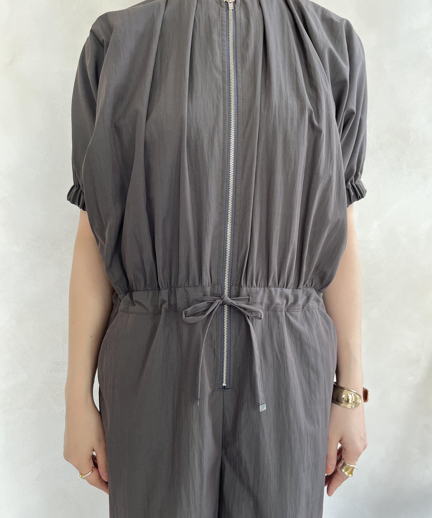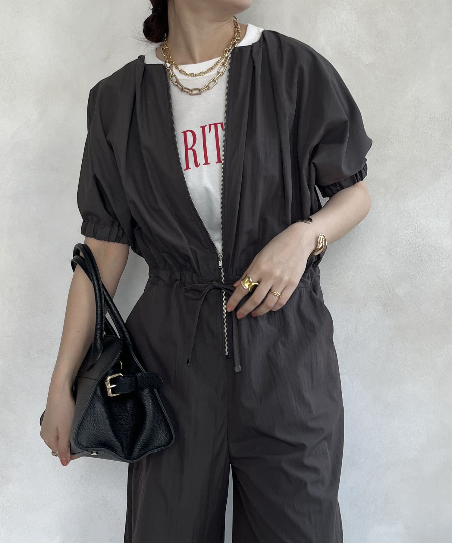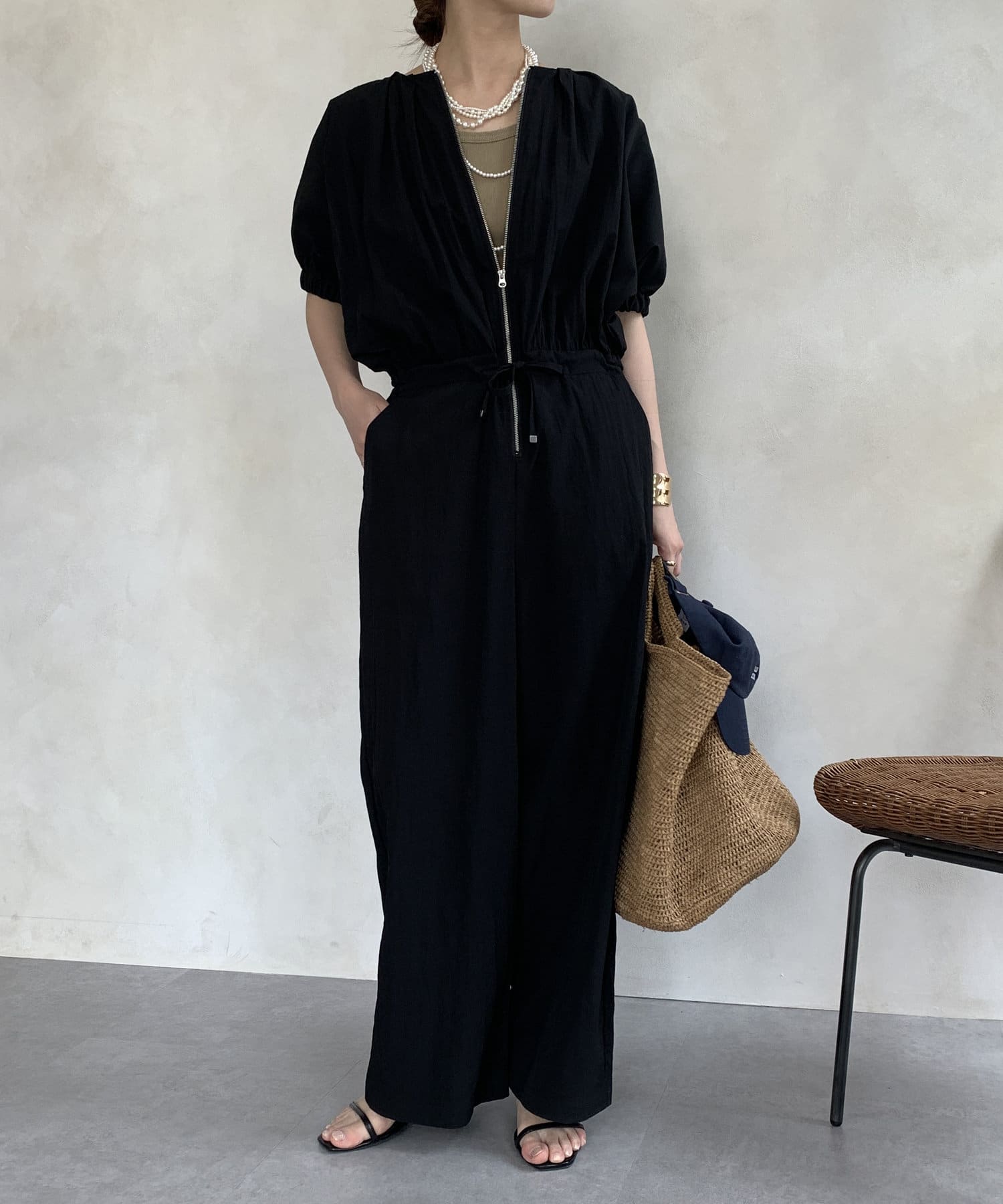 洗練されたリラックススタイルが叶う、袖ギャザーオールインワン!