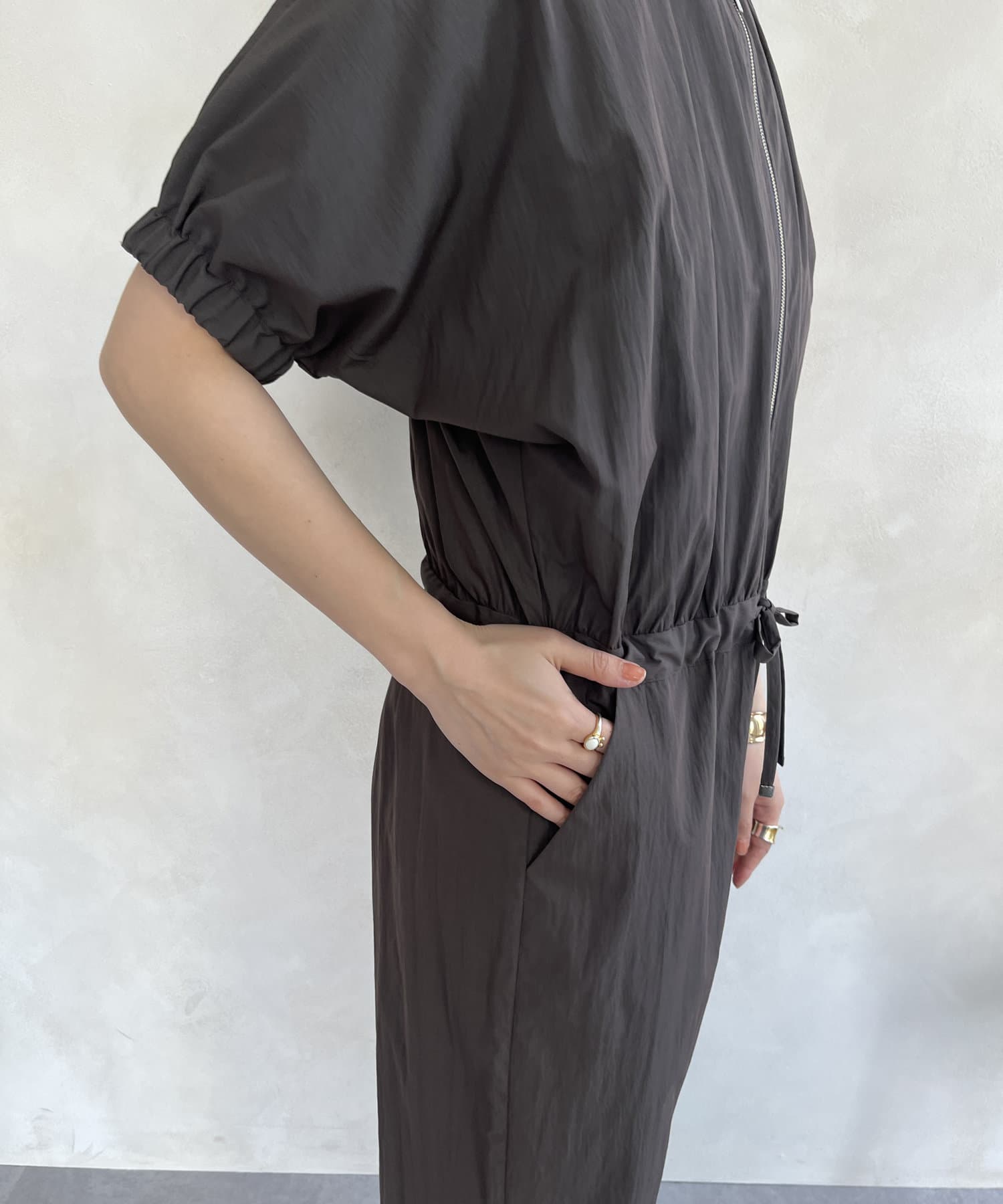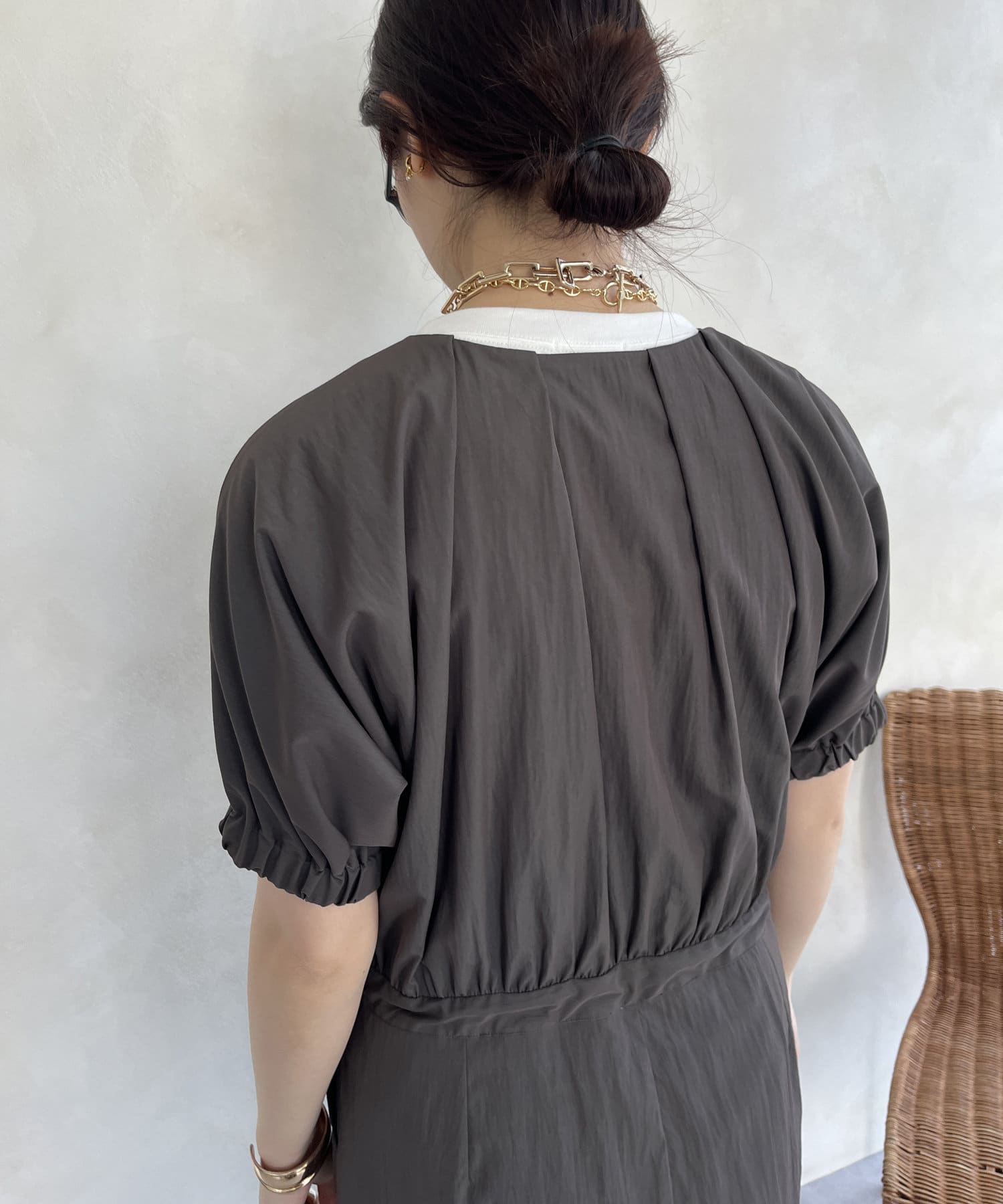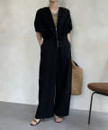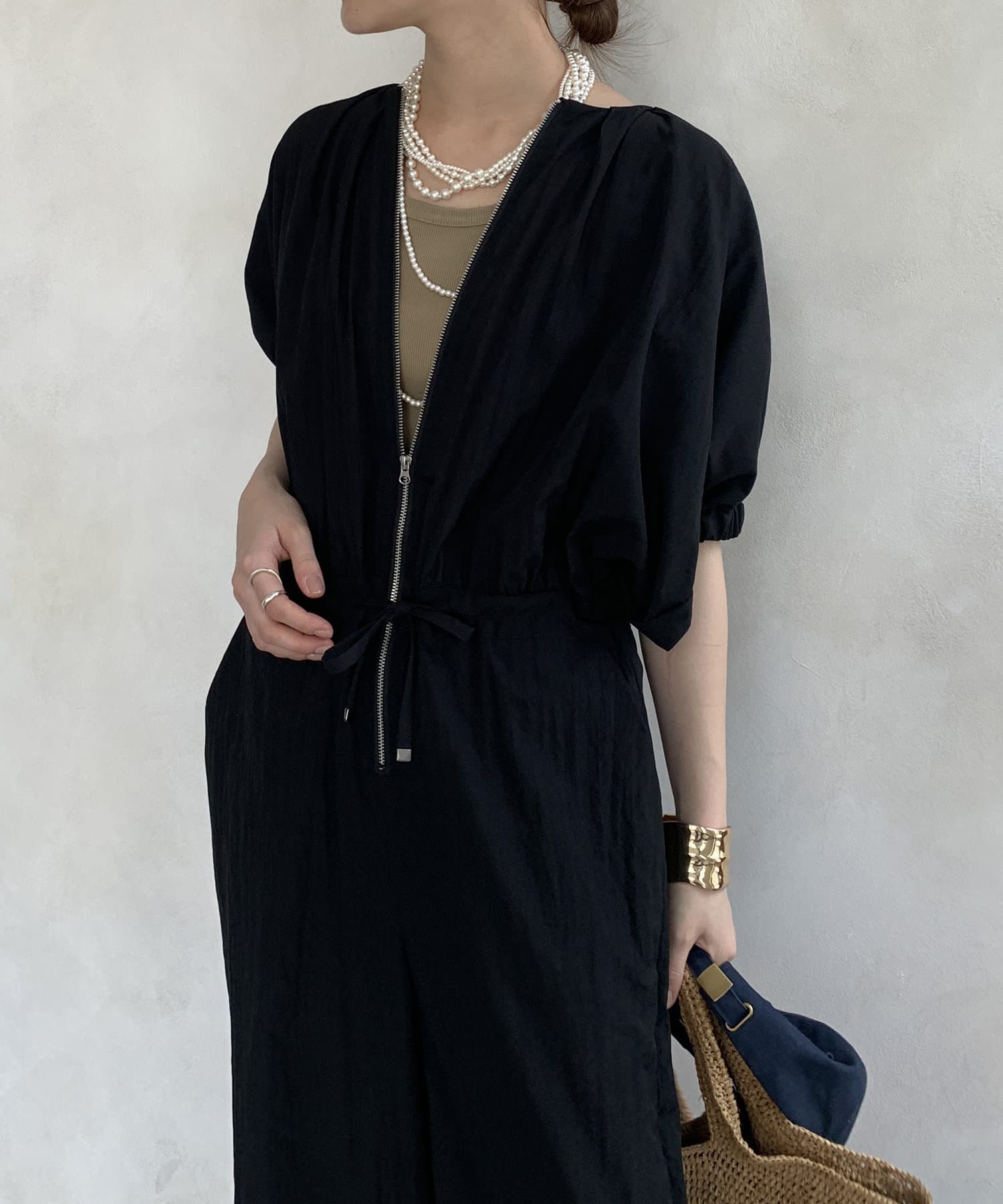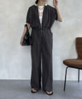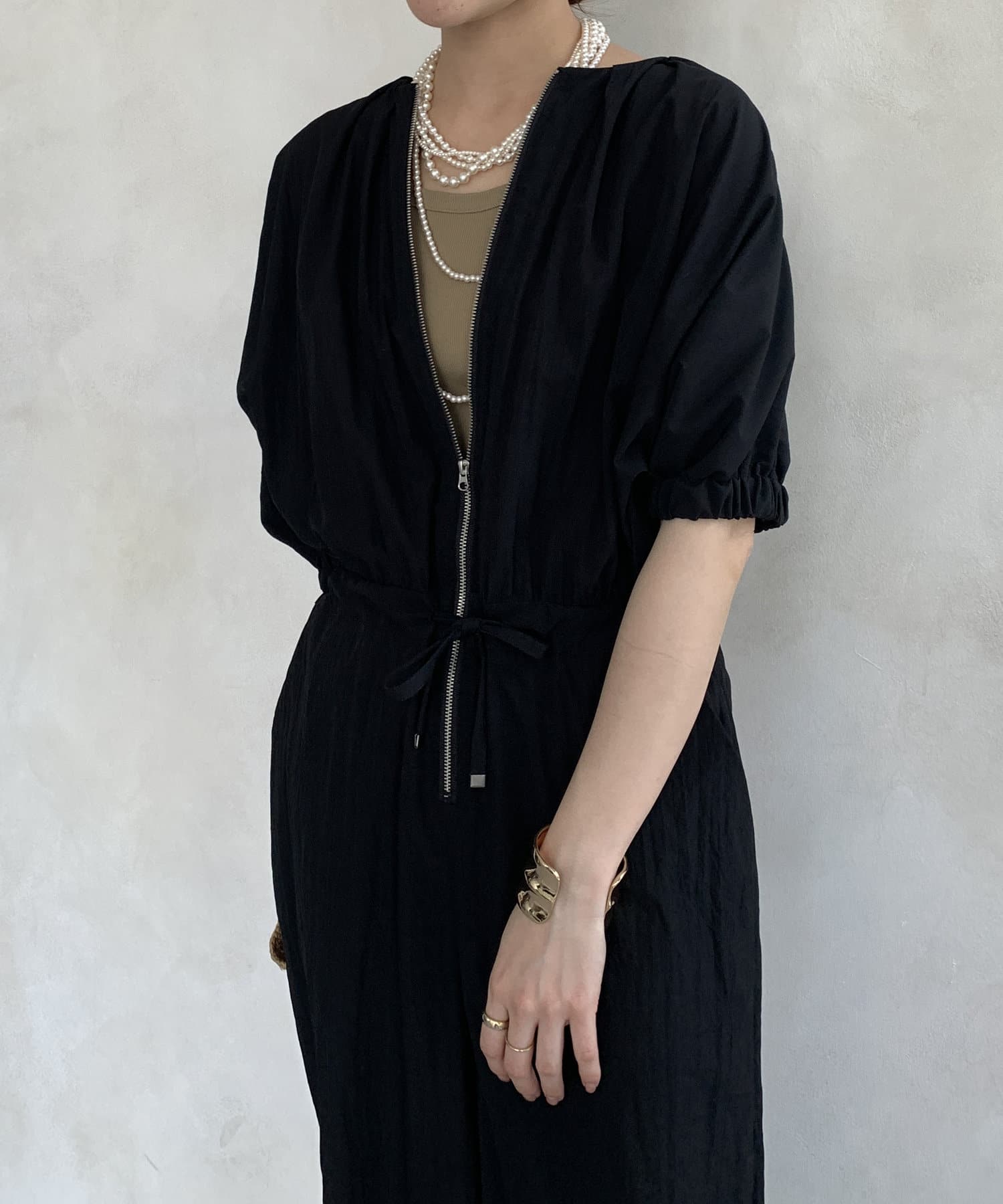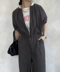 洗練されたリラックススタイルが叶う、袖ギャザーオールインワン!