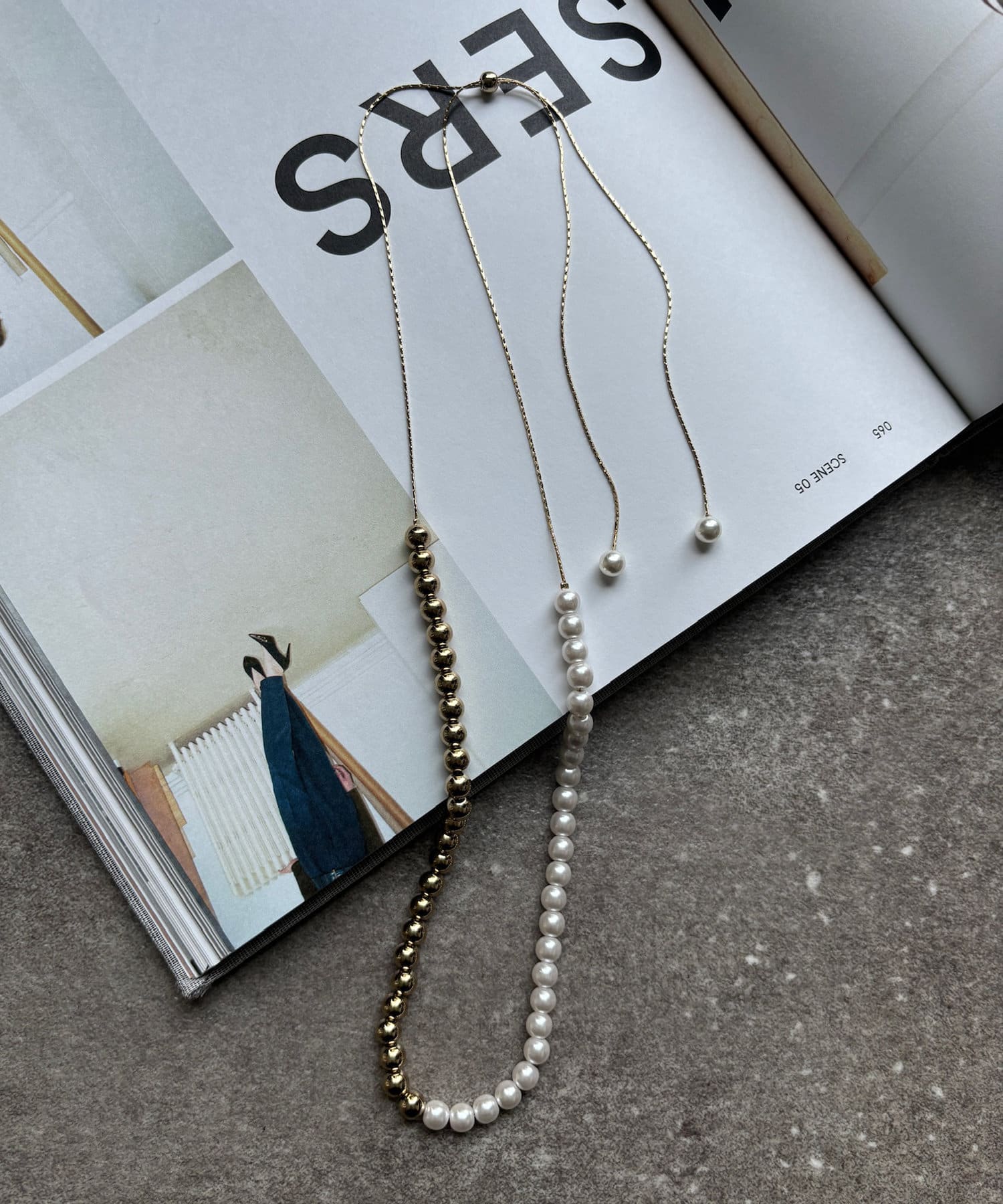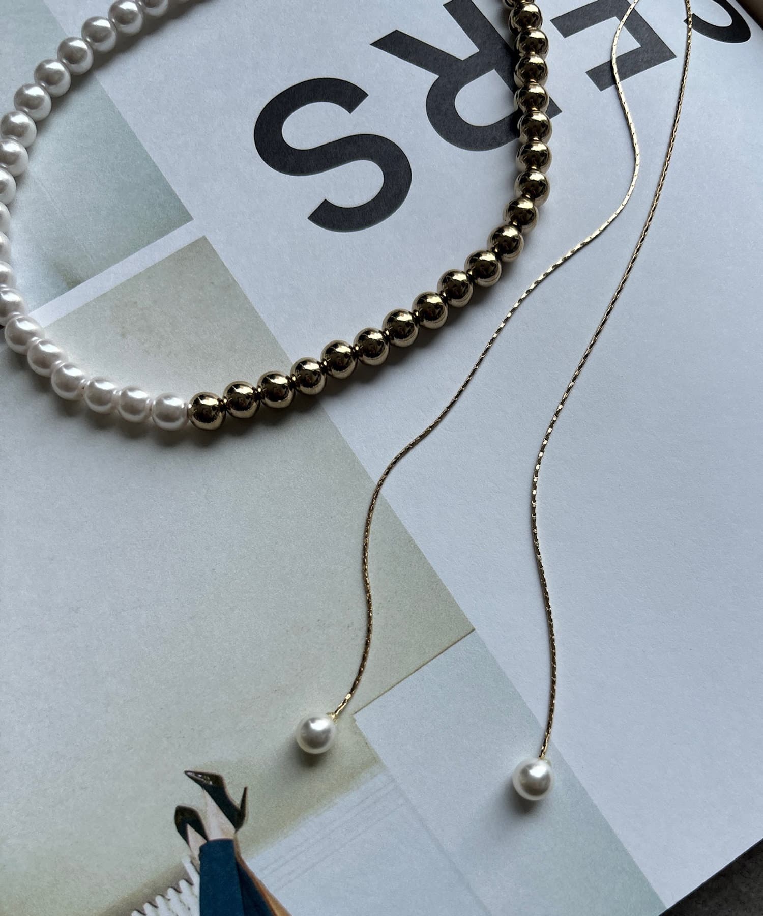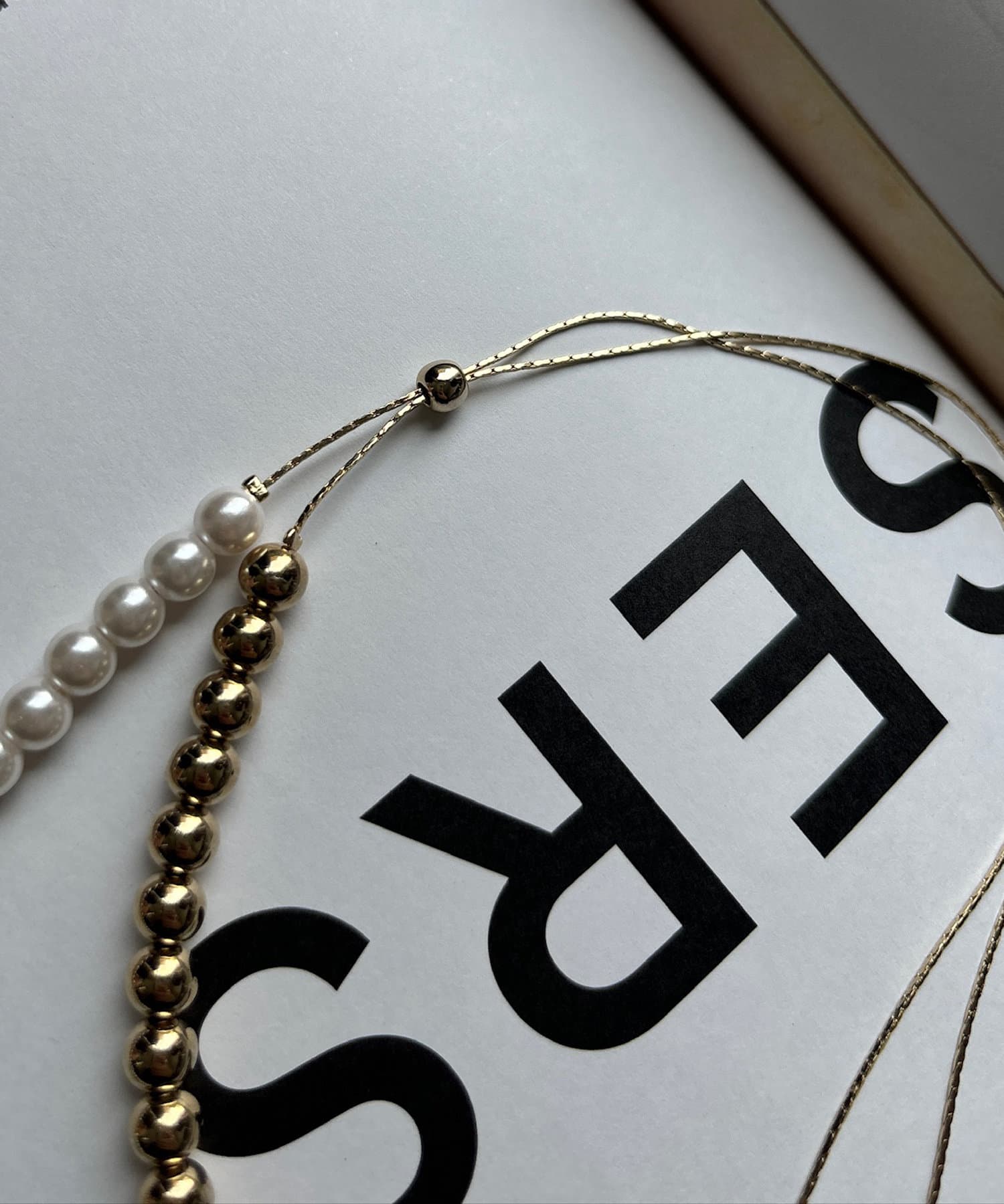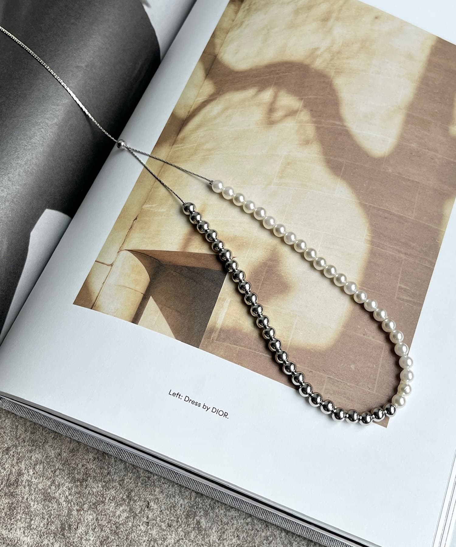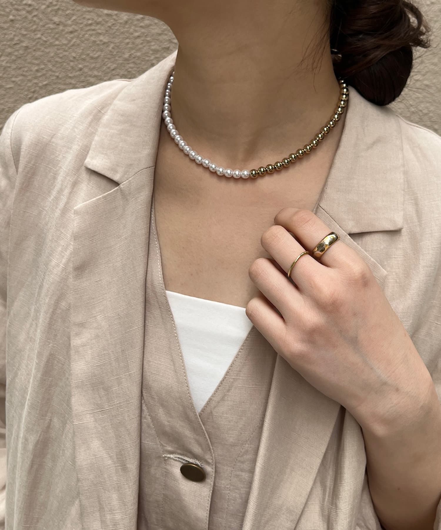 シーンを選ばず活躍間違いなしのパール×メタルスライドネックレス
