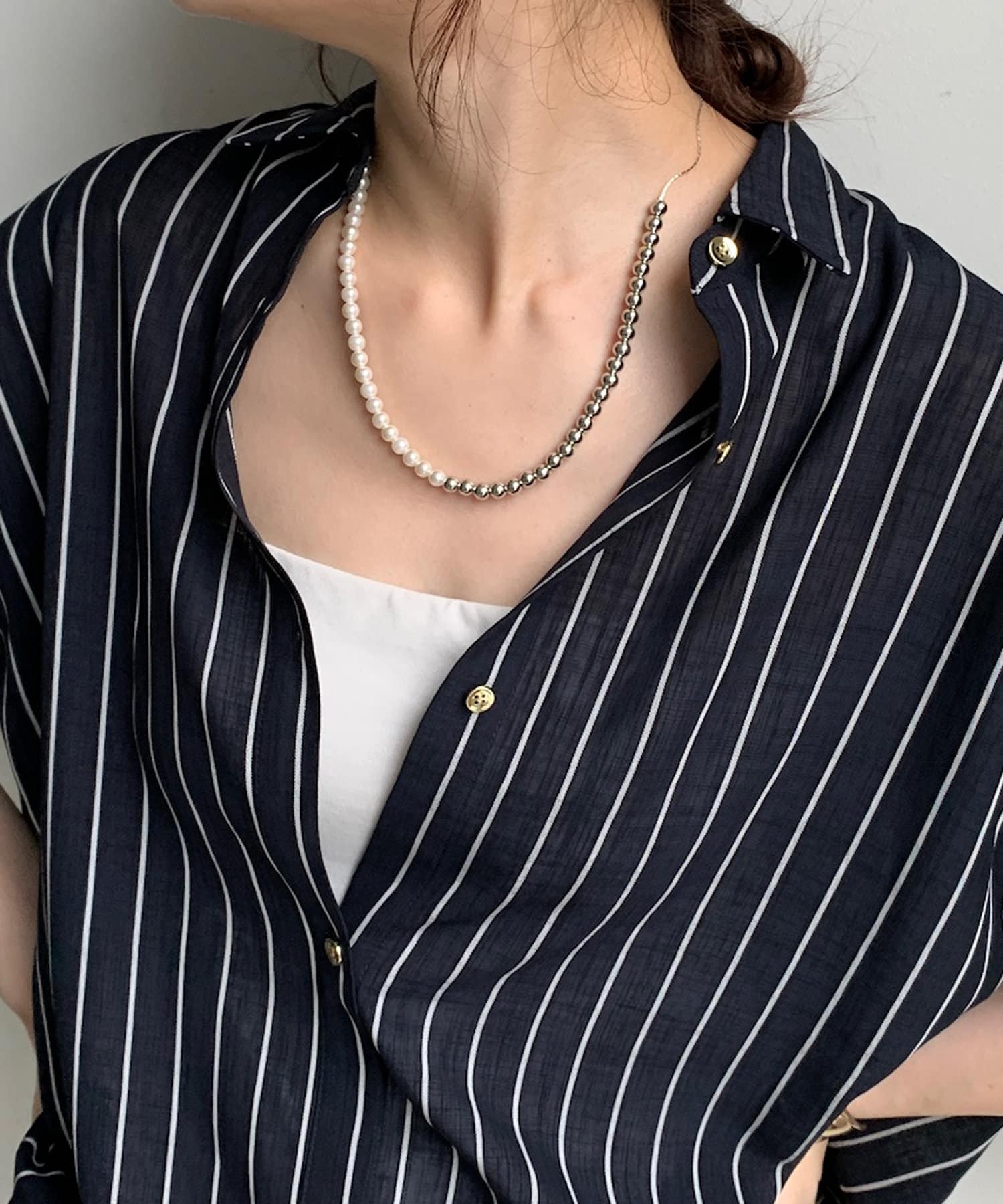 パール×メタルスライドネックレス