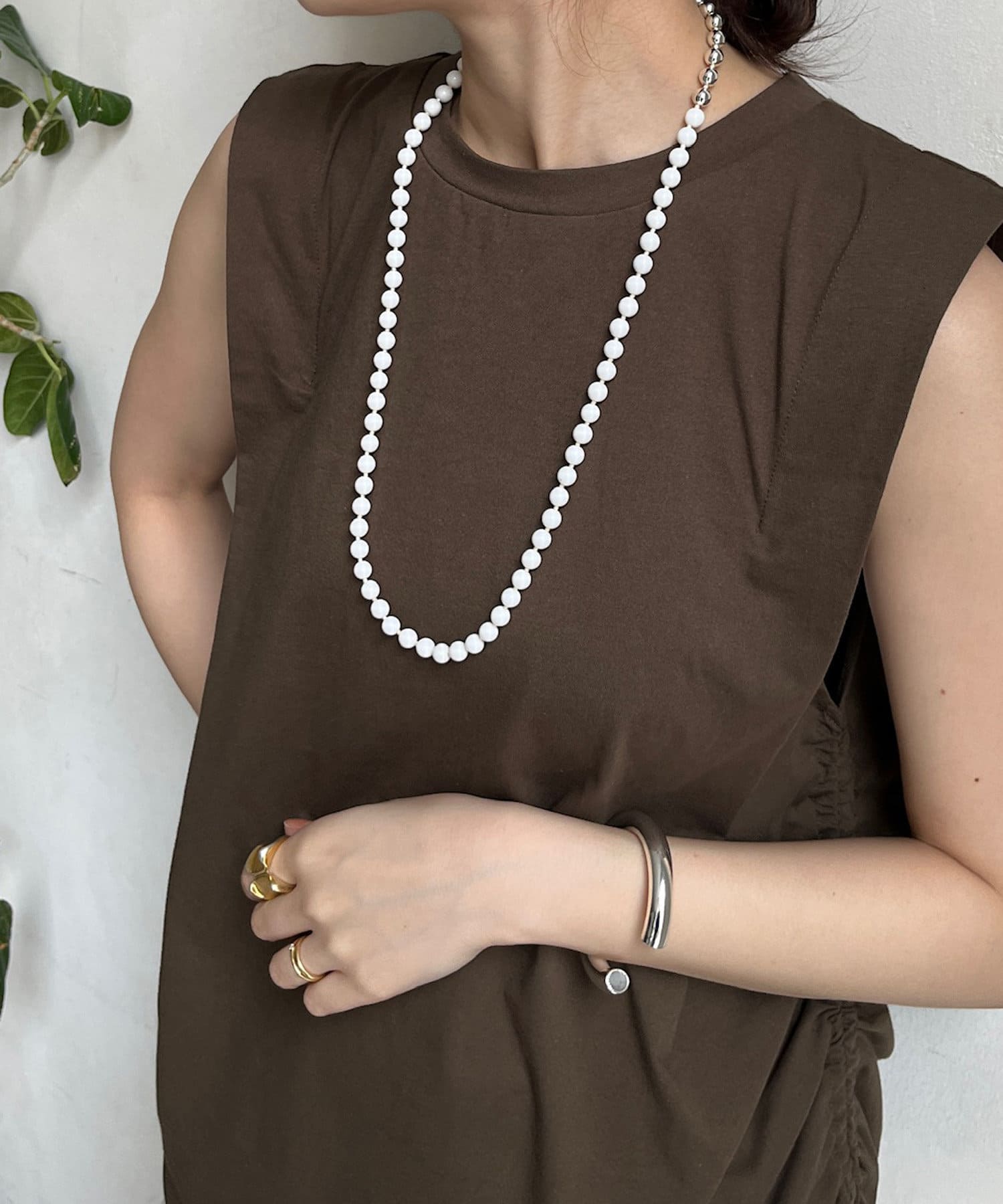 艶やかなパール調のビーズが連なり、顔周りをパッと明るく、華やかな印象に!