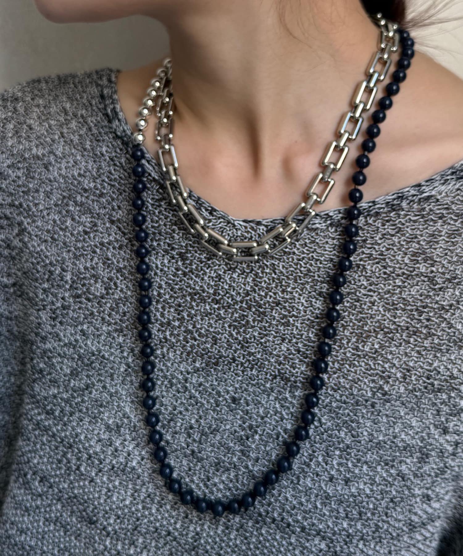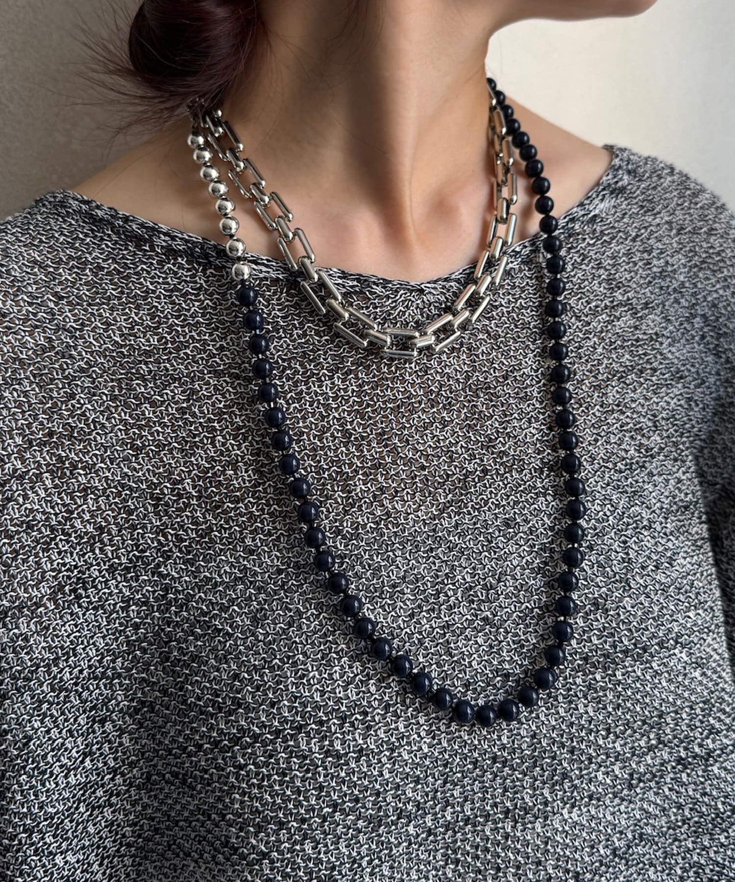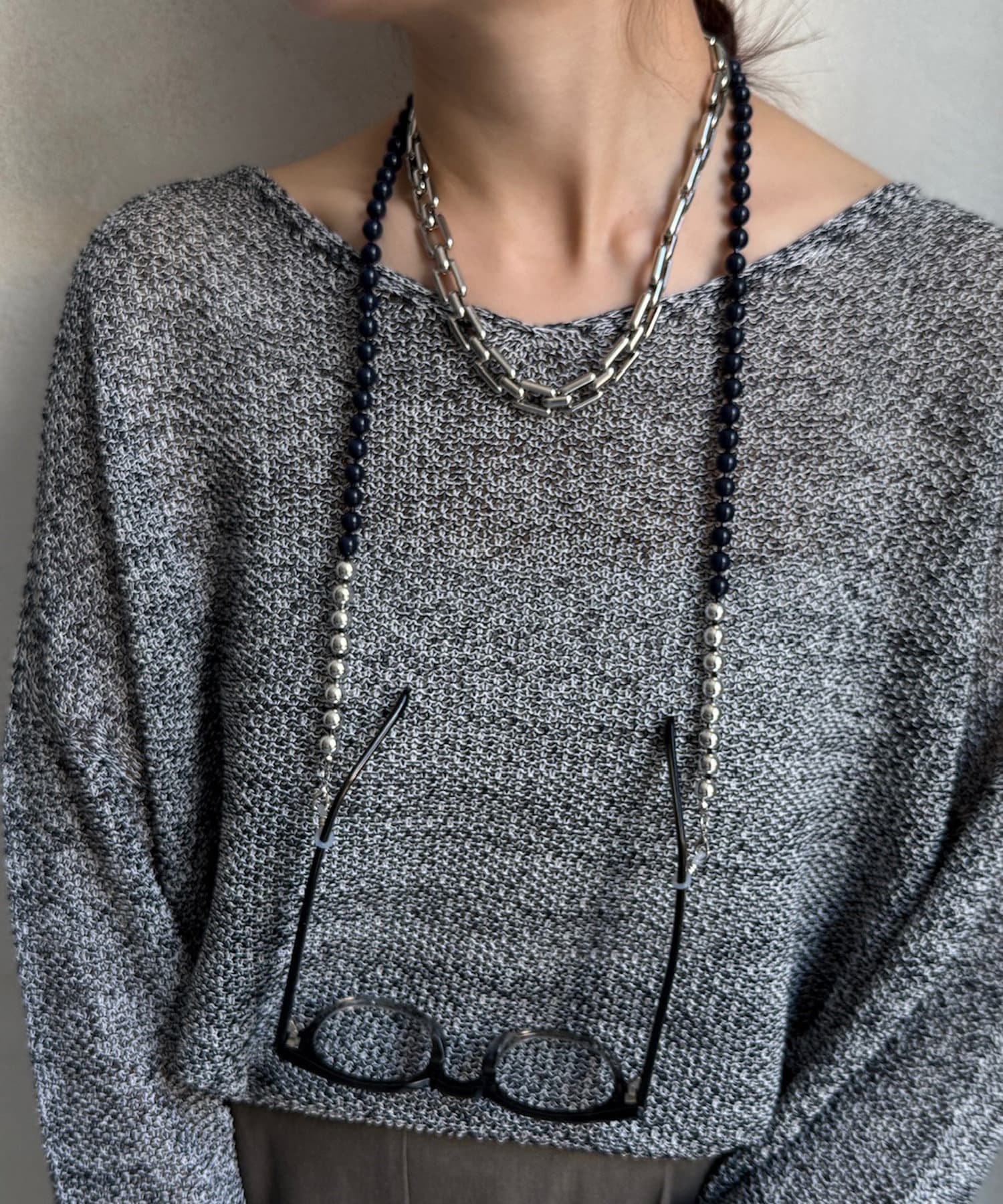 普段は上品なロングネックレスとして、胸元にエレガントなアクセントを加えてくれます。