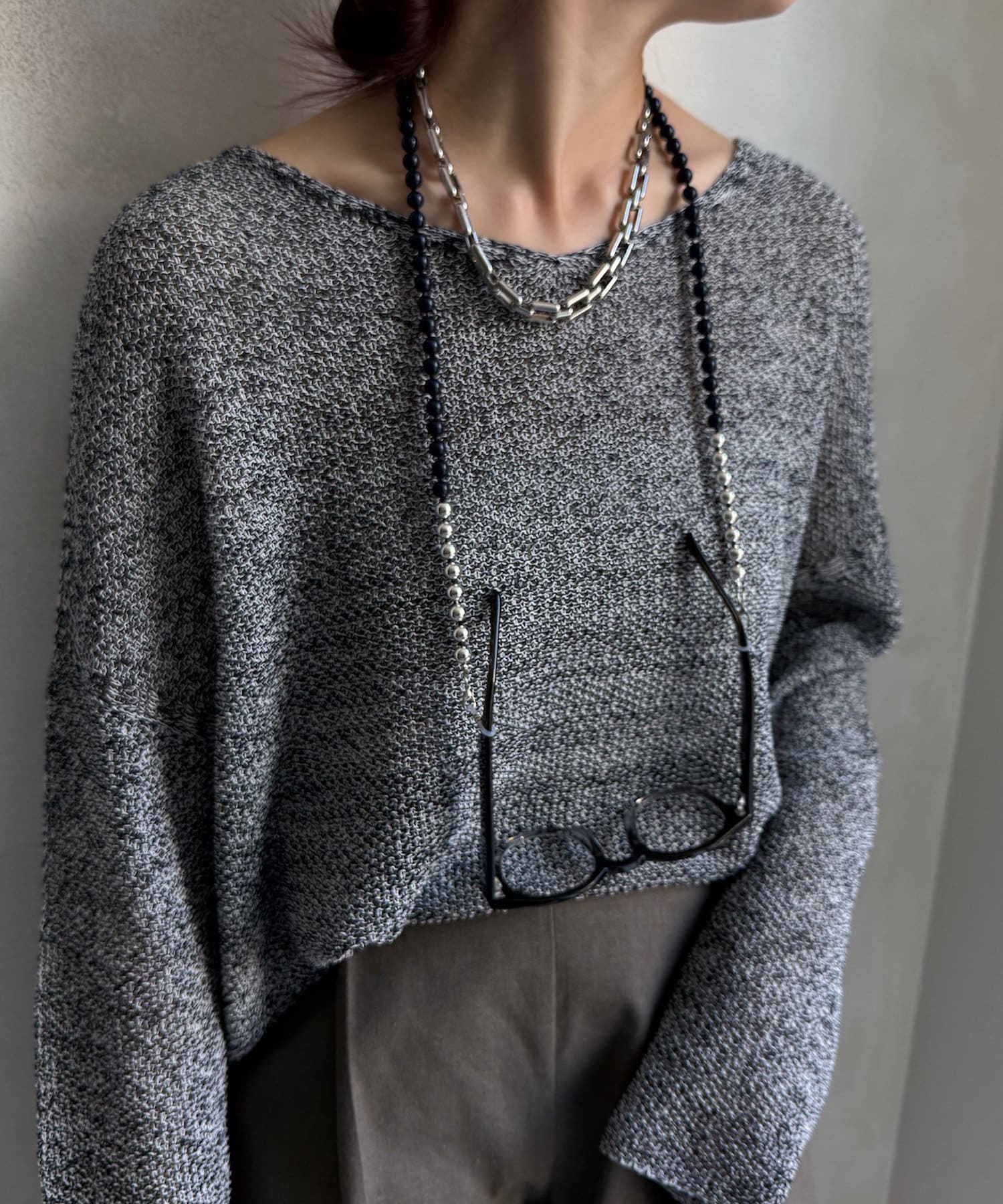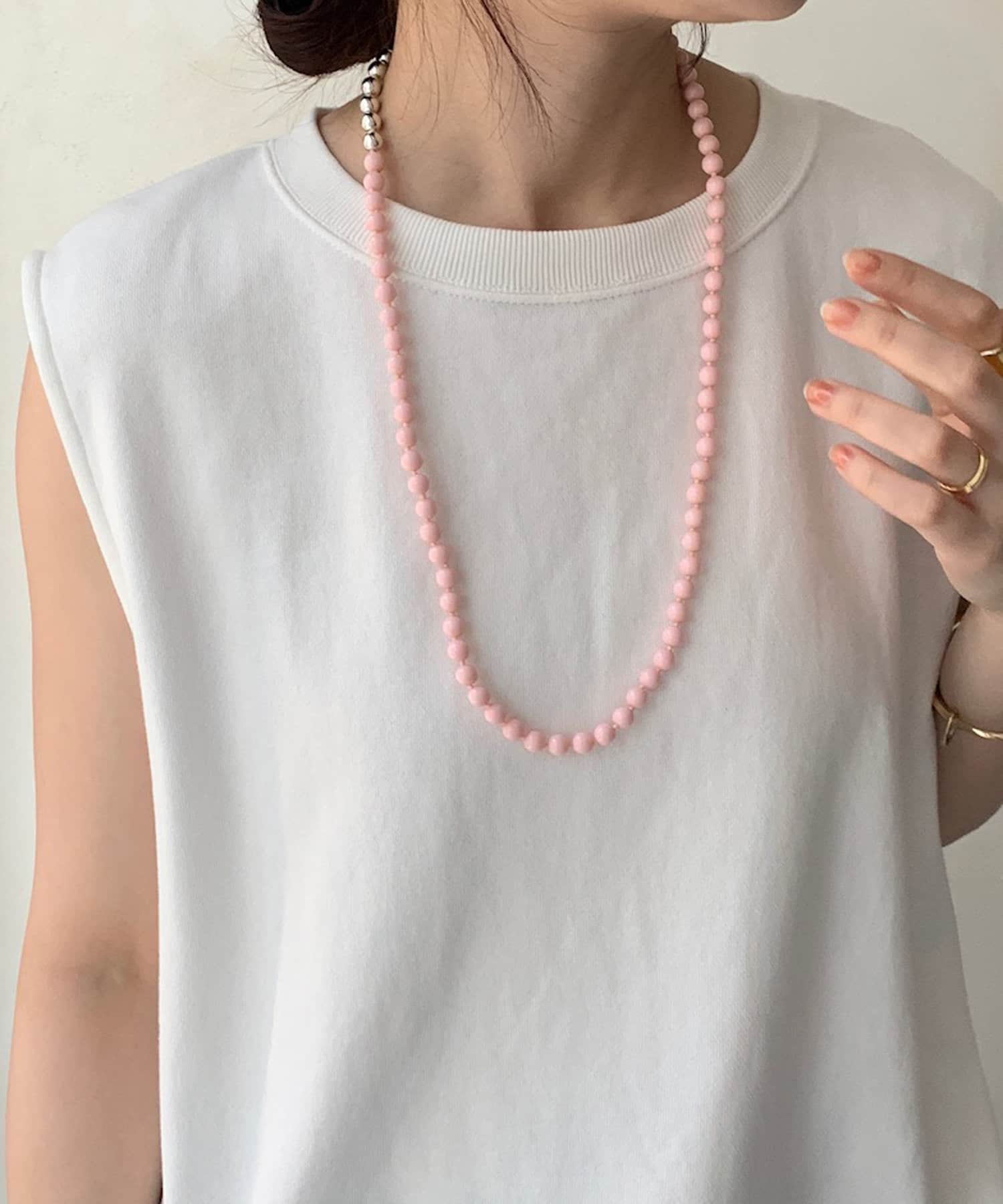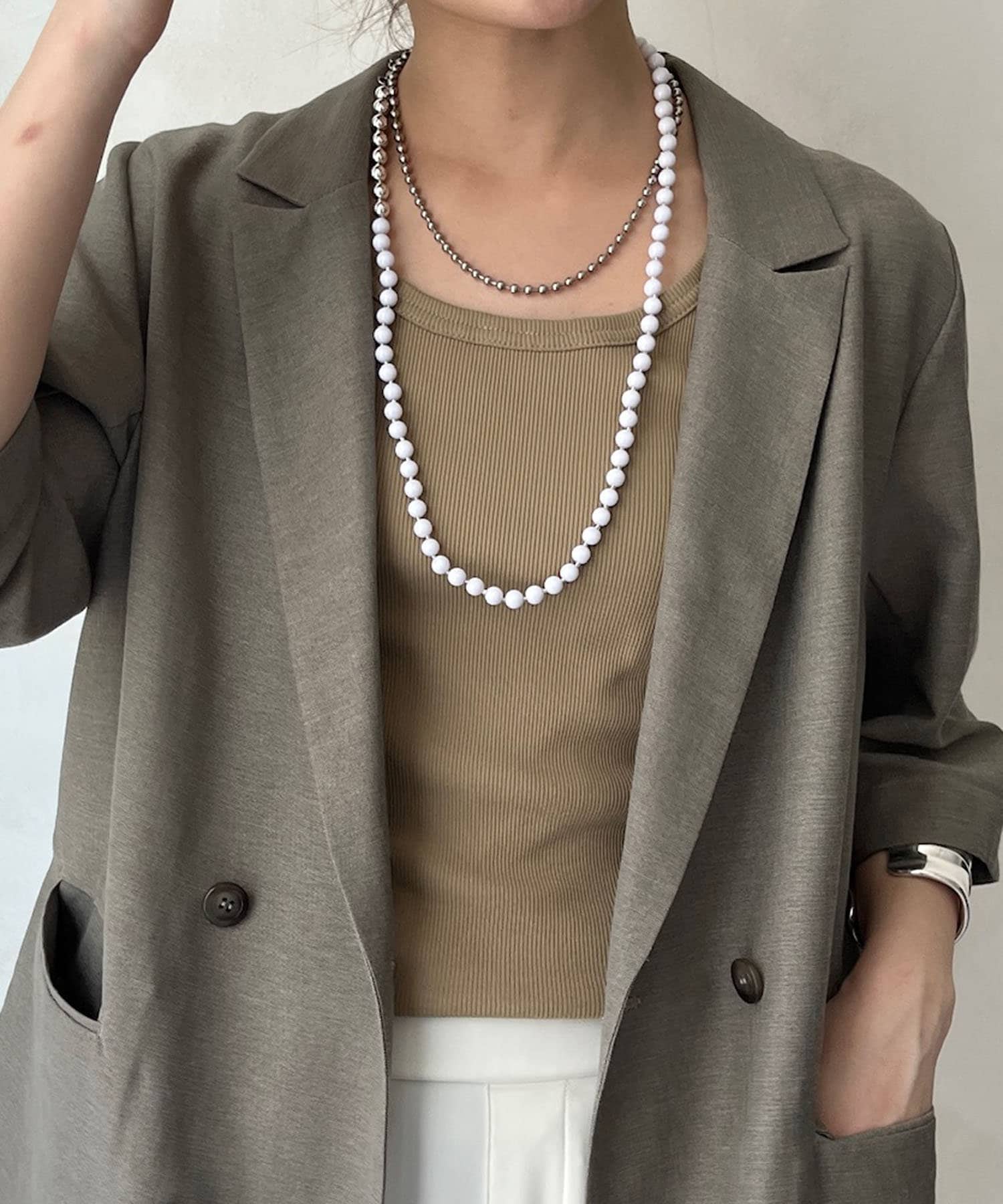 普段は上品なロングネックレスとして、胸元にエレガントなアクセントを加えてくれます。