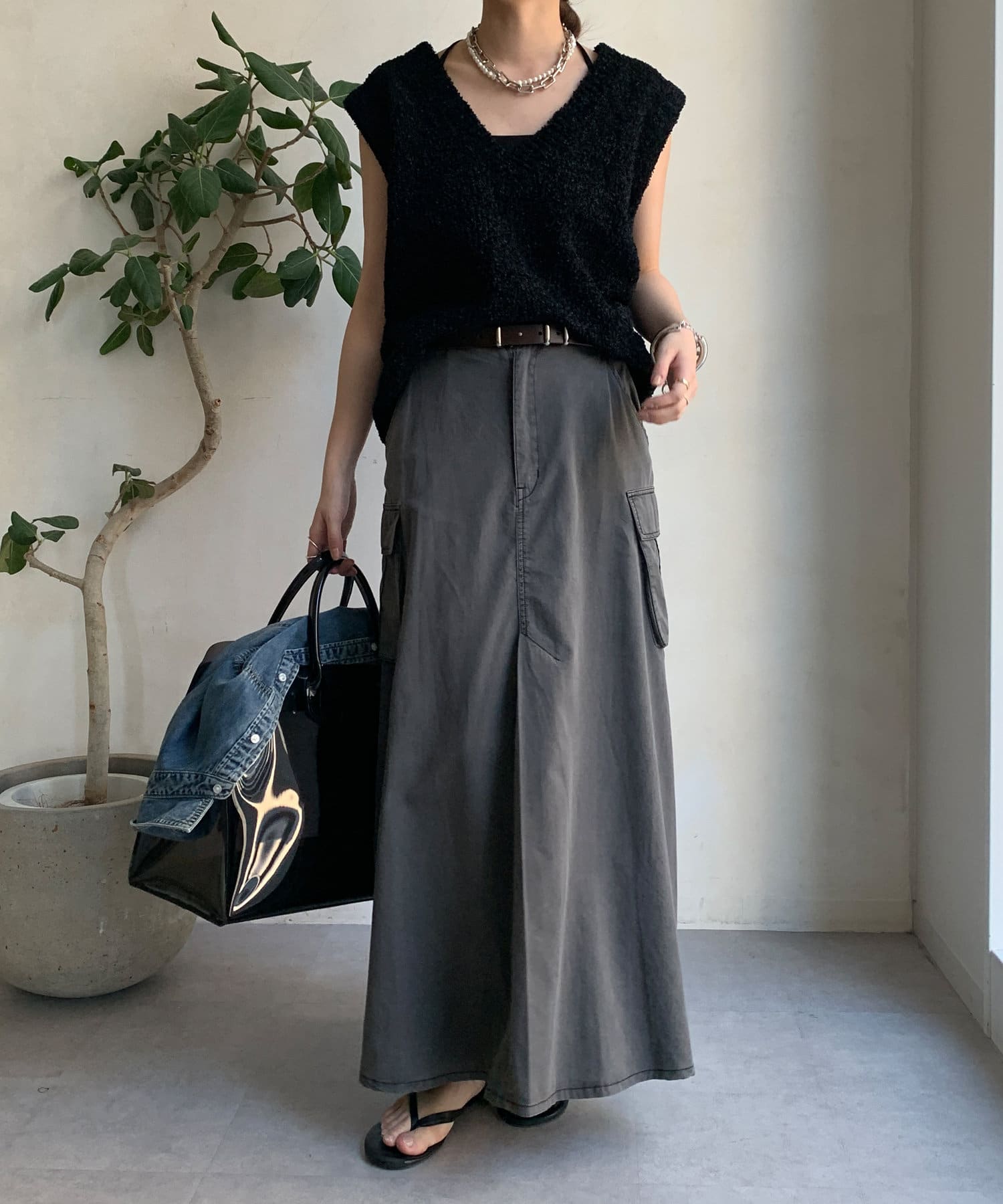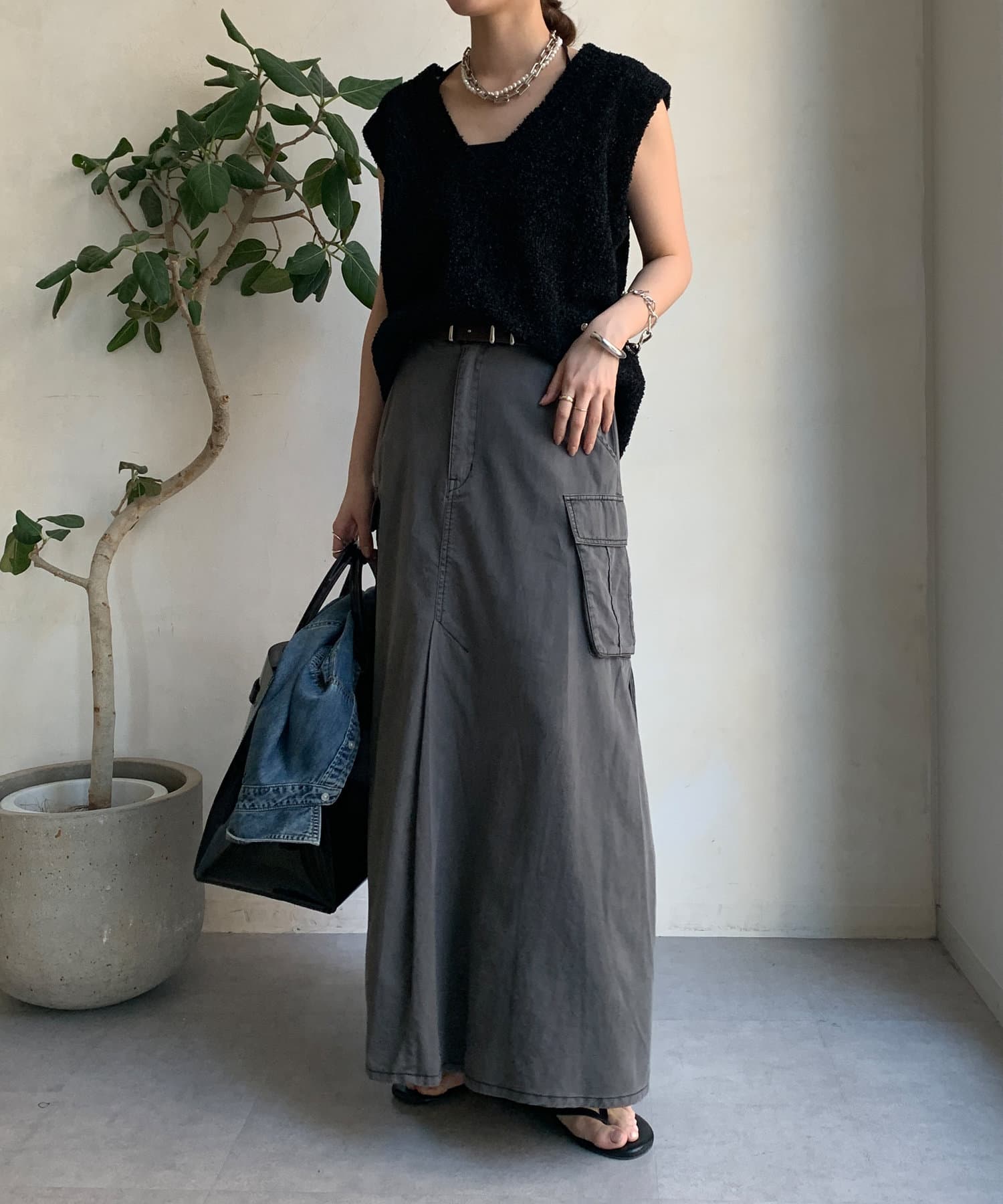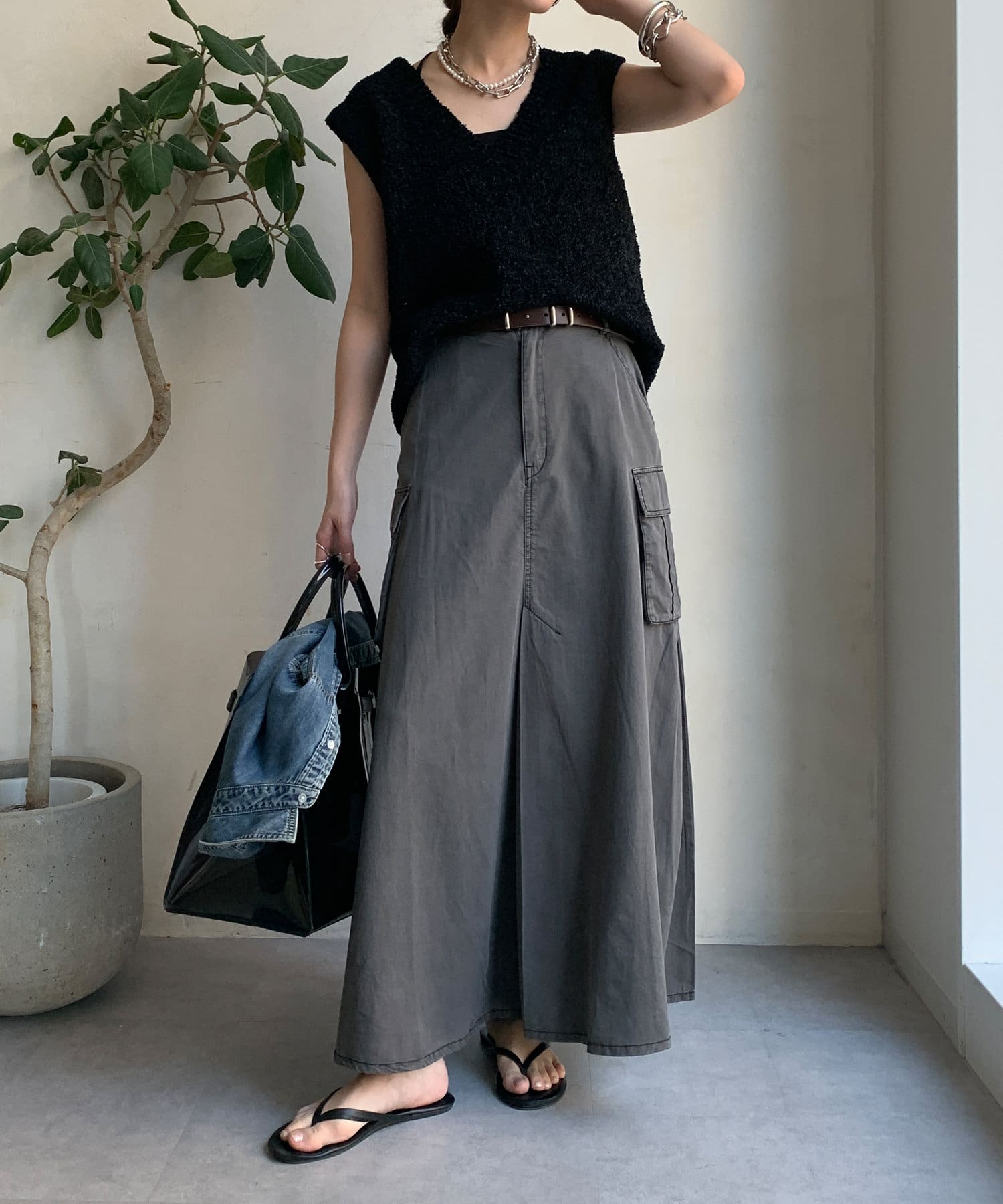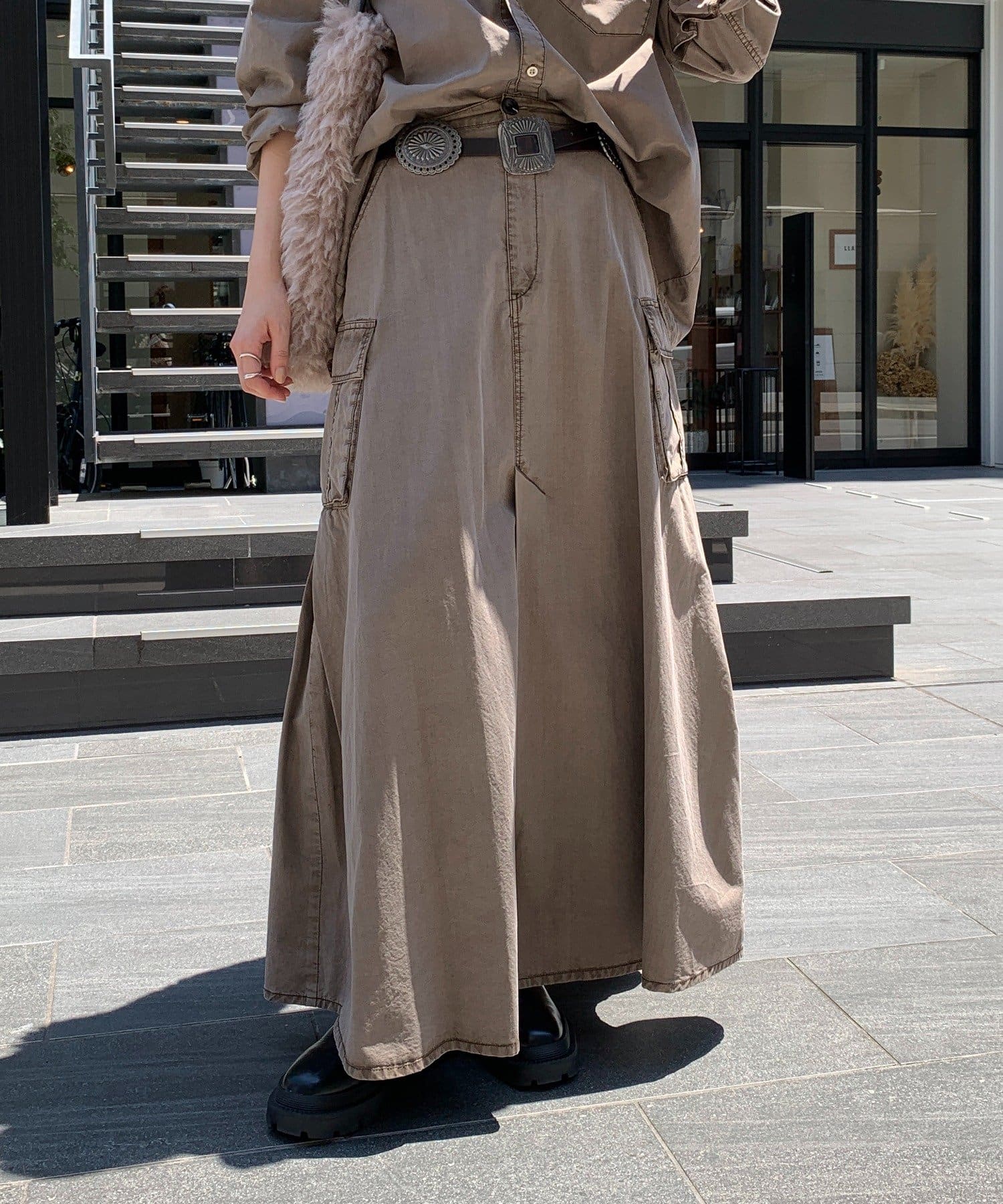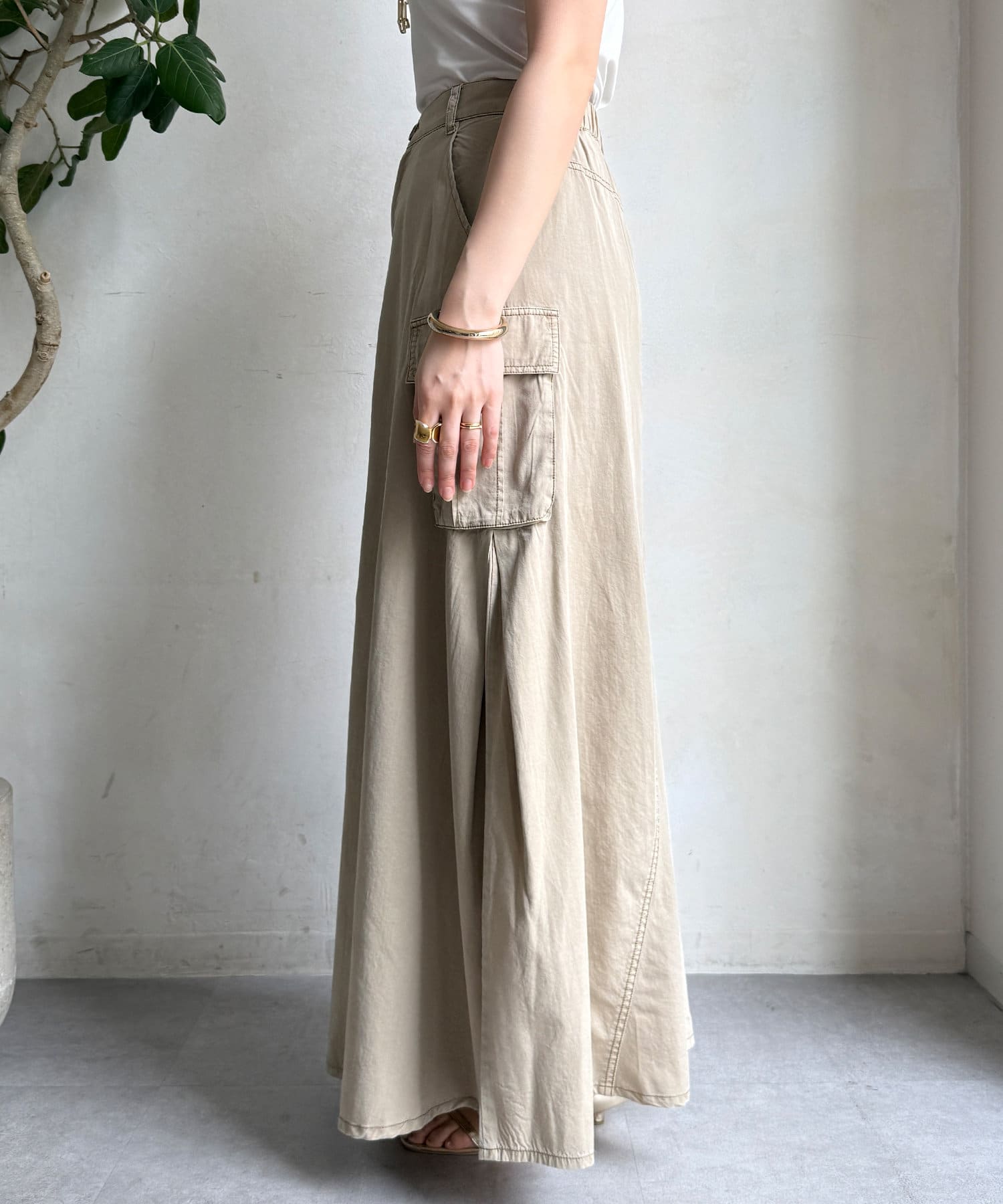 綿リヨセルピグメント加工カーゴスカート