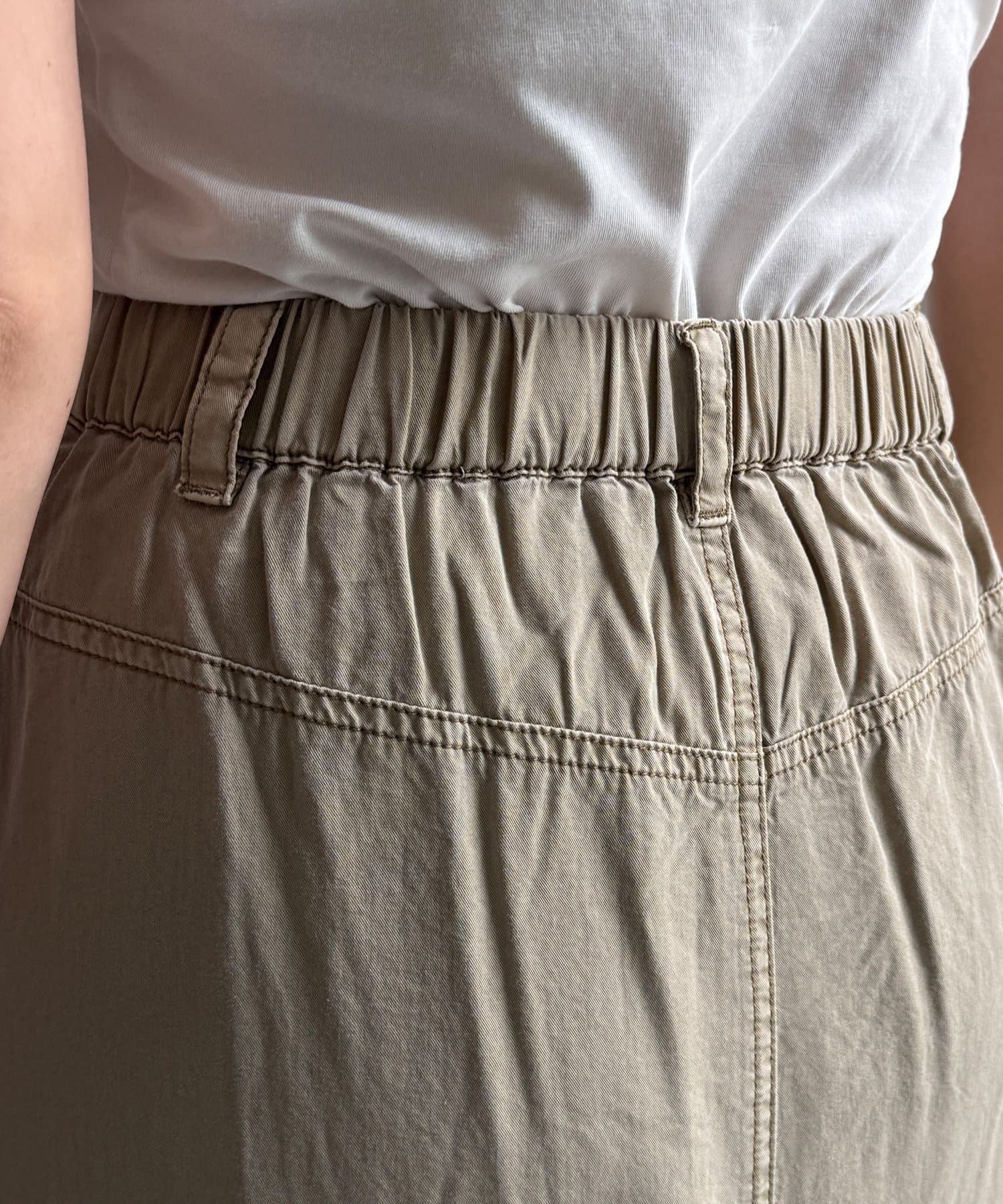ウエストはバックにゴムを施すことで、ストレスフリーな履き心地ながらもすっきりと見える仕様。