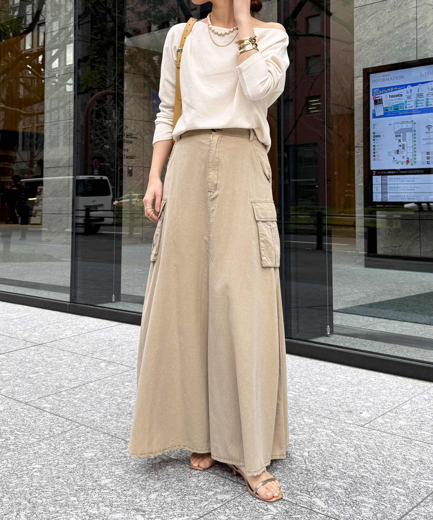 旬のワークデザインを落とし込んだスカート。