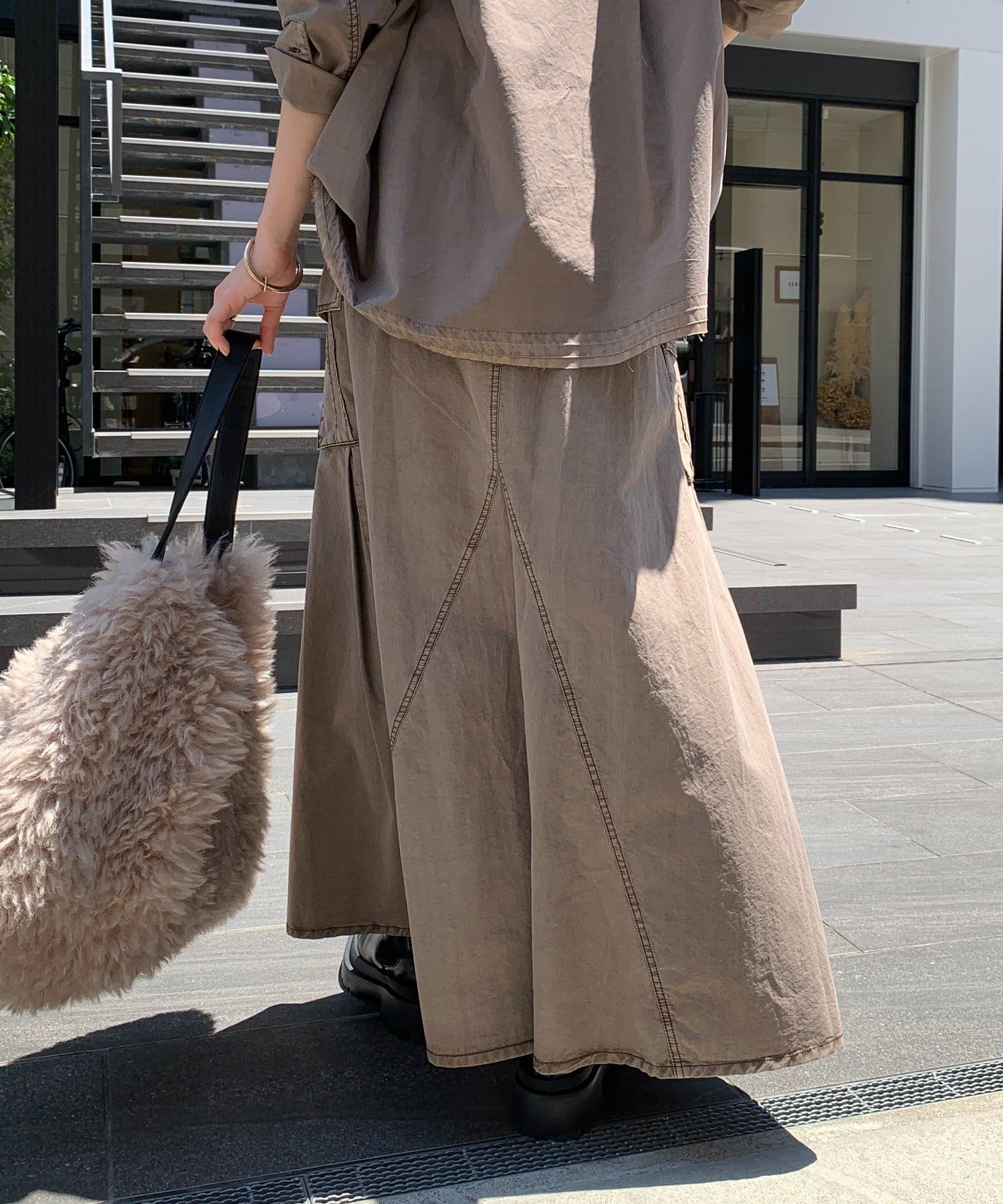 裾に向かってフレア感を持たせたラインで、広がりすぎずに綺麗なシルエットのスカート。