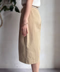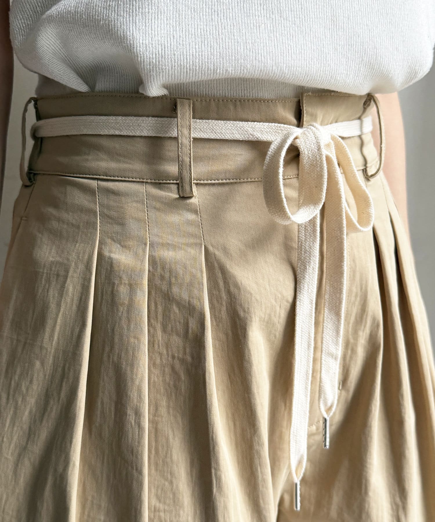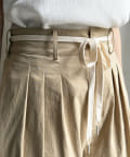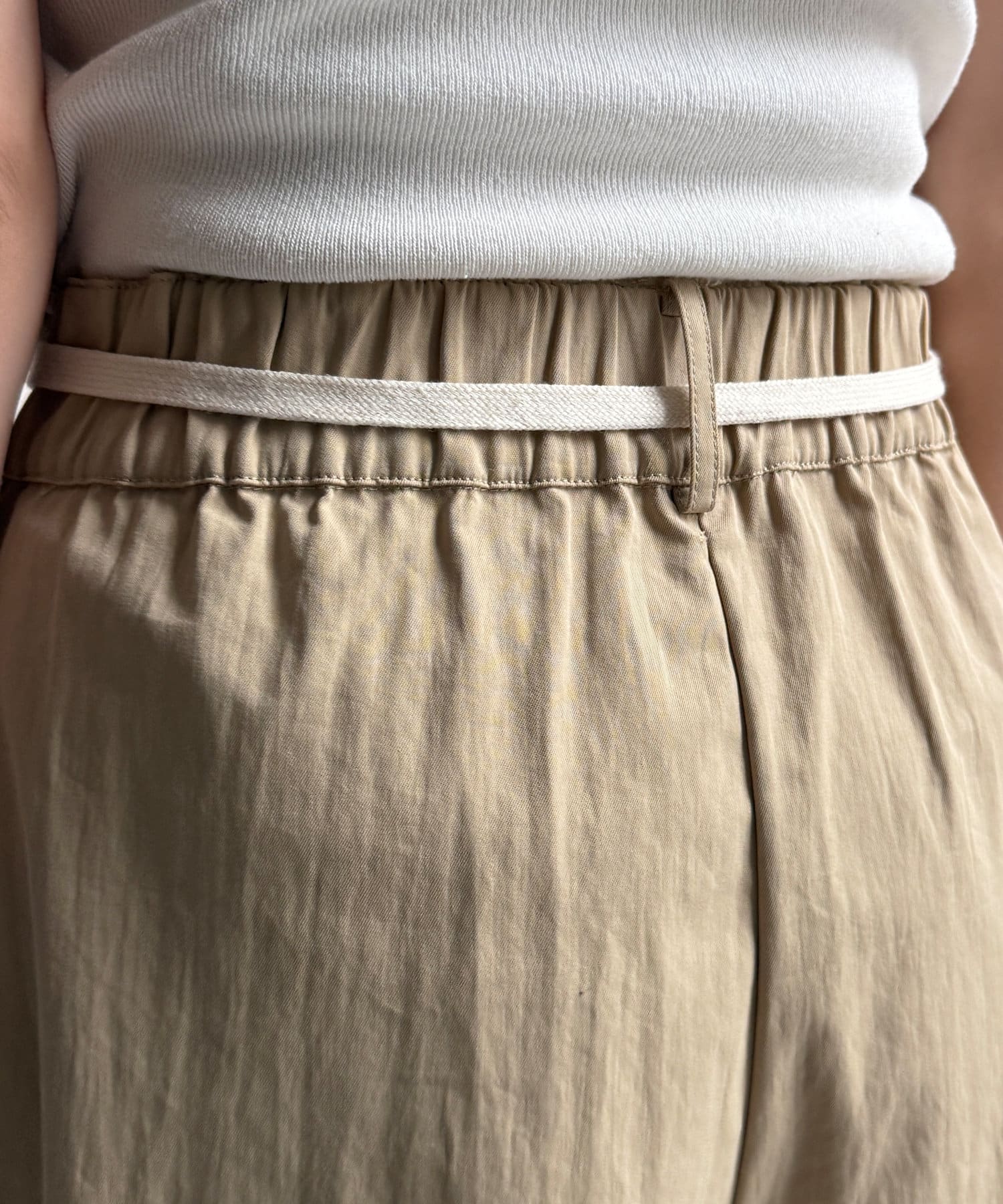 ウエスト部分の紐デザインやタックデザインがおしゃれな印象をプラスしてくれるので、トップスはインしたスタイルがおすすめですよ。