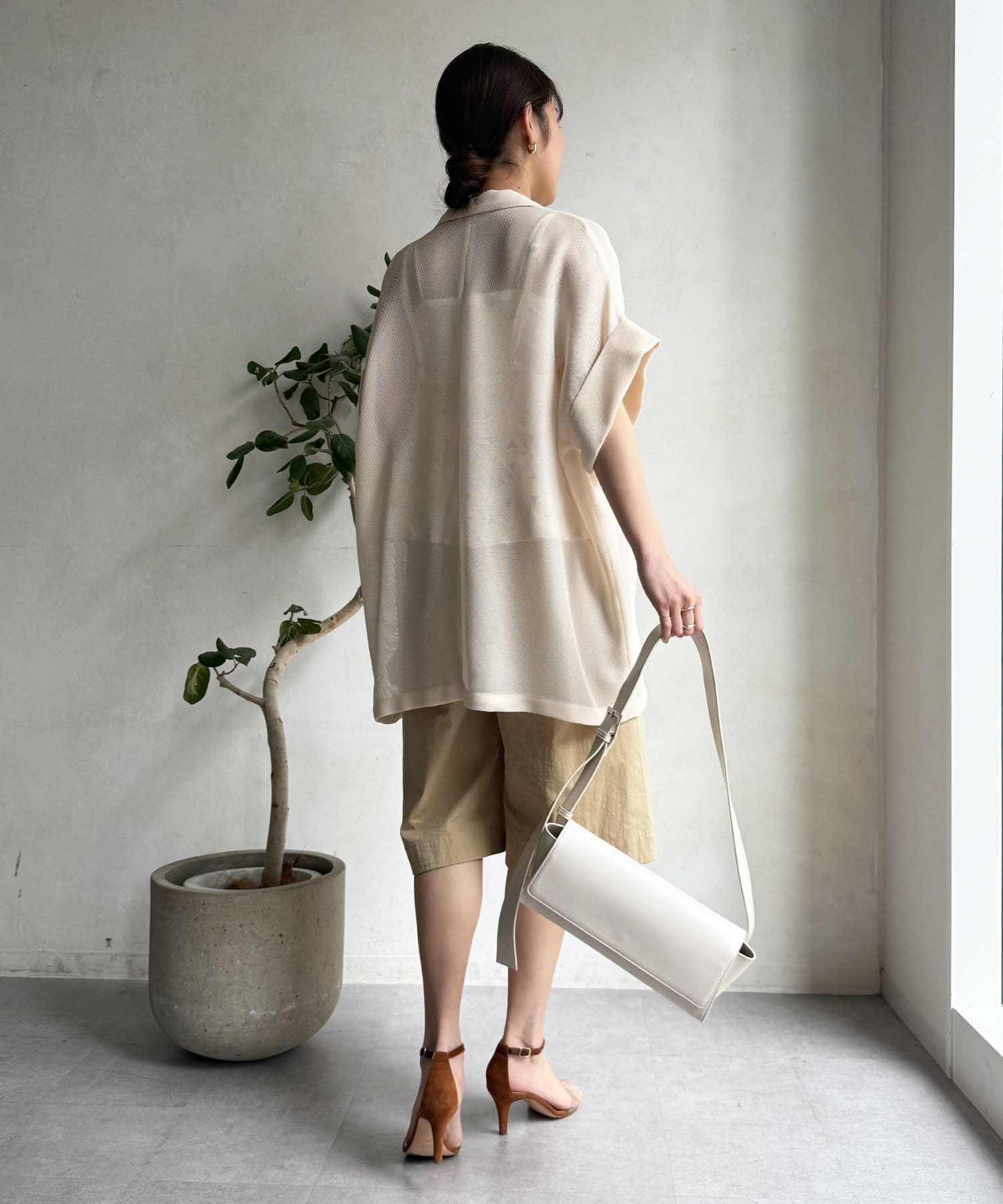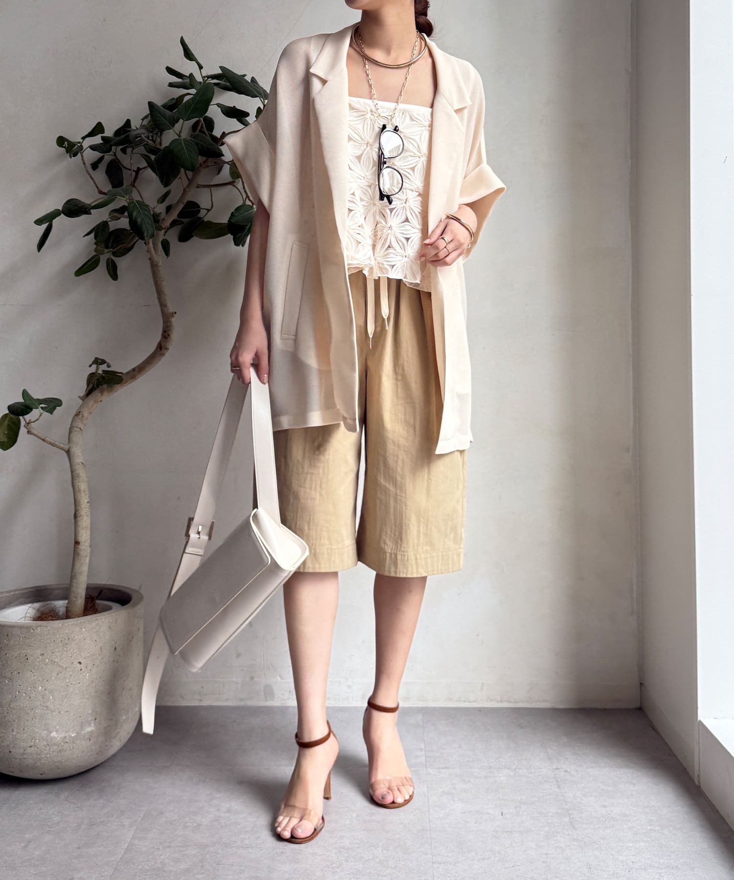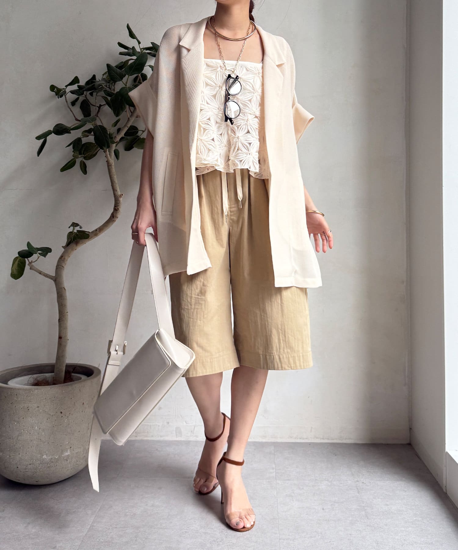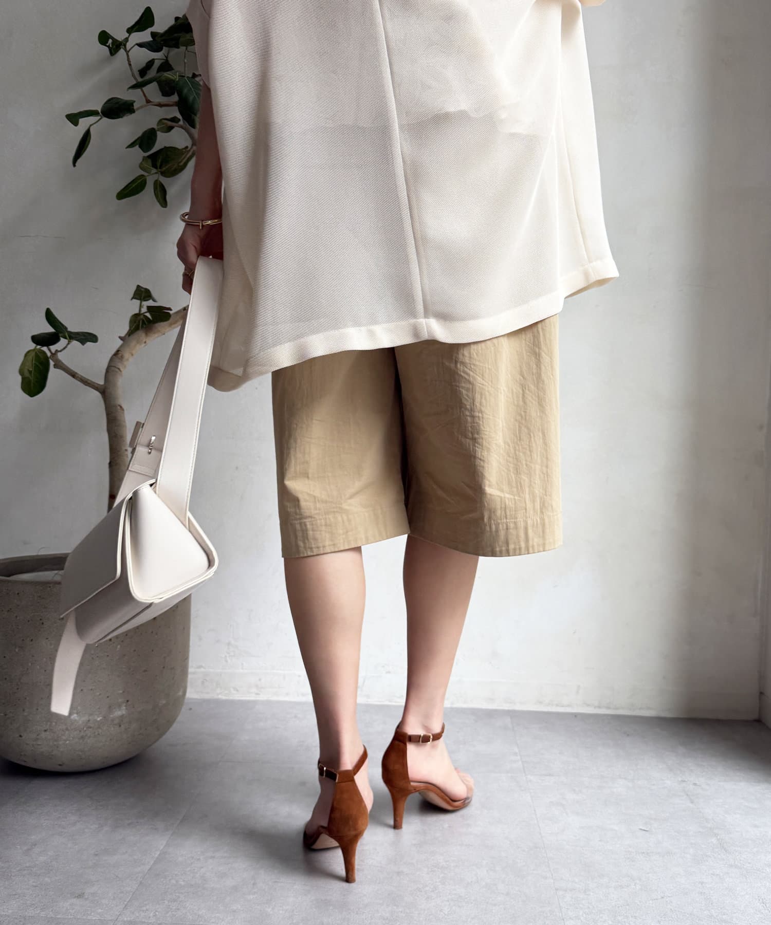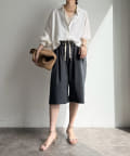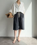 ハーフパンツをコーディネートに入れるとどうしてもカジュアルで子供っぽくなりがちですが、こちらは程よい丈感でキレイめコーデに入れても浮かないので使いやすそうです。