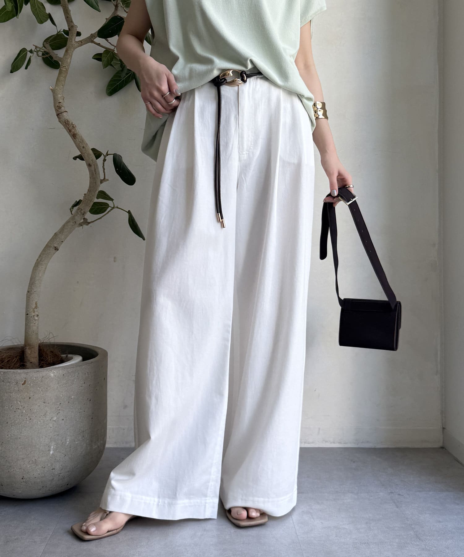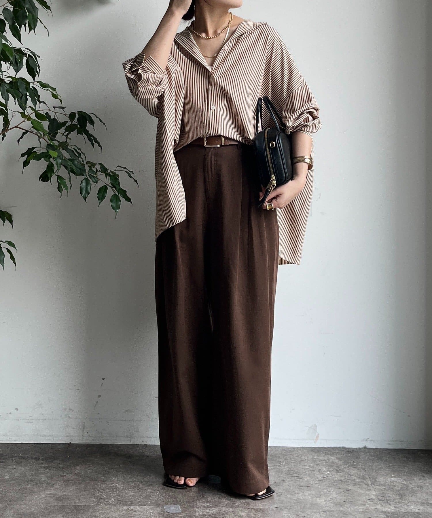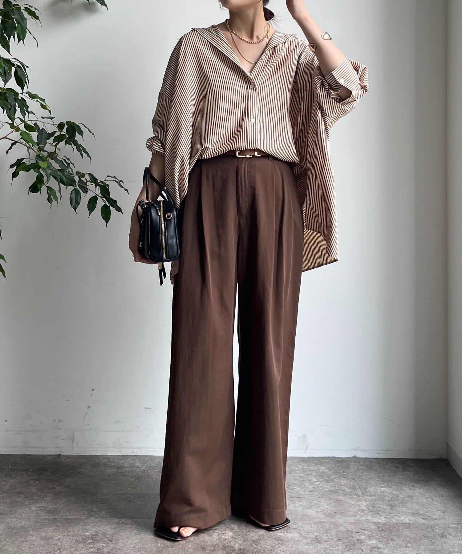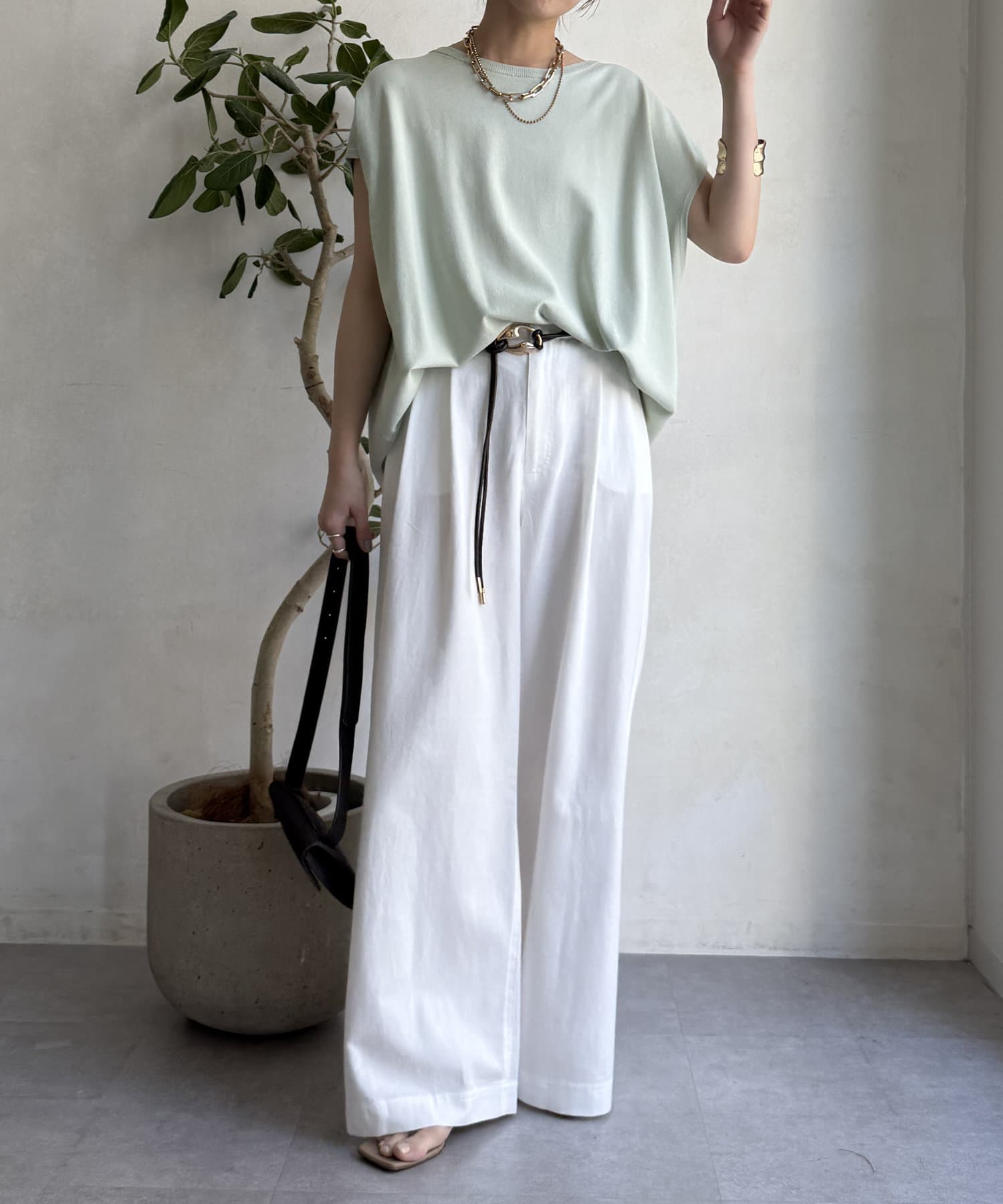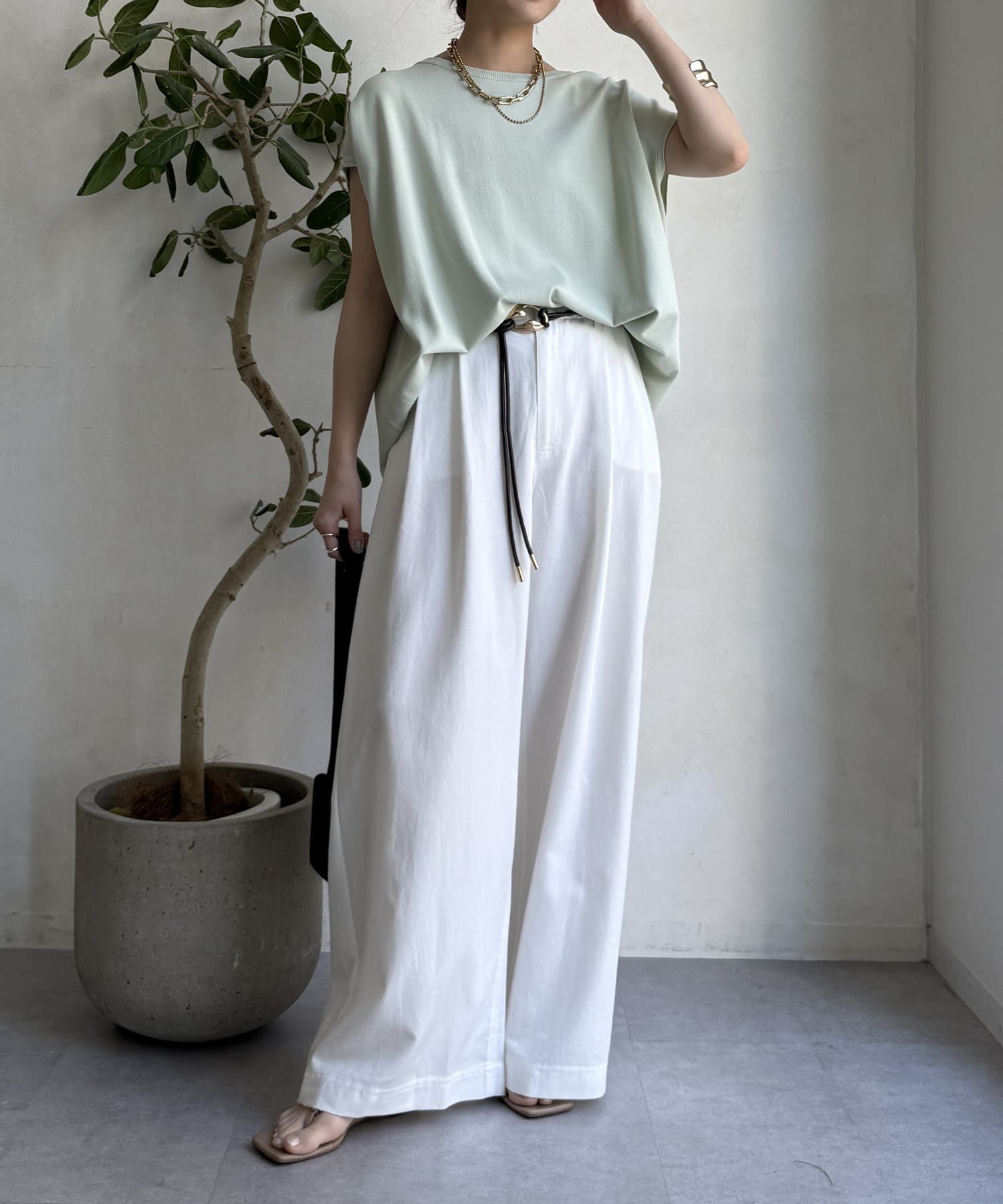 トレンドのワイドシルエットながら、すっきり見えるような絶妙ラインが大人に着こなせます。