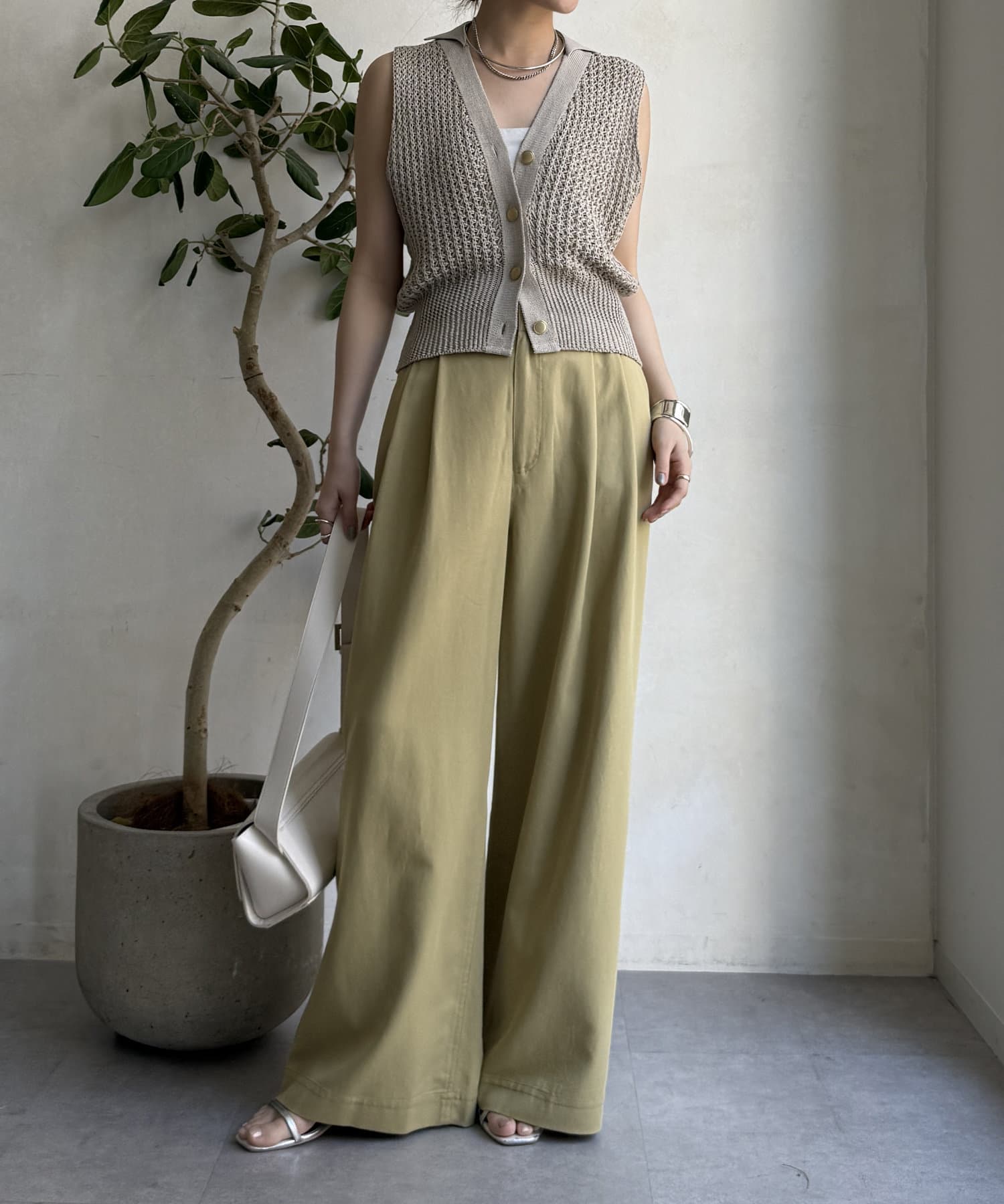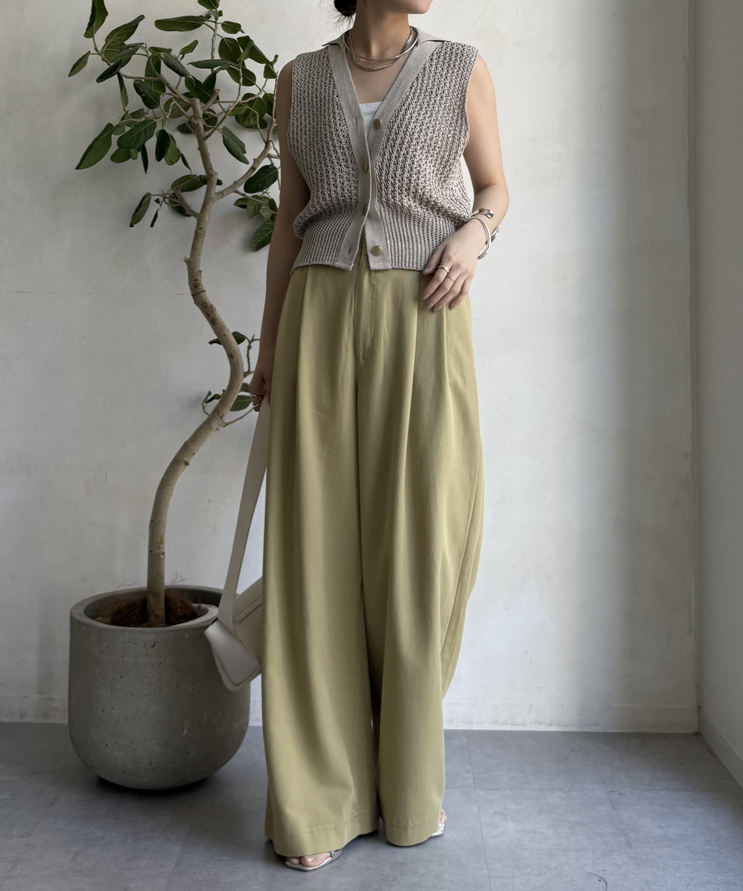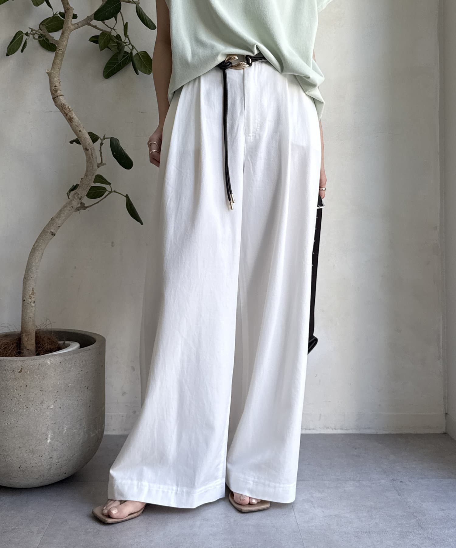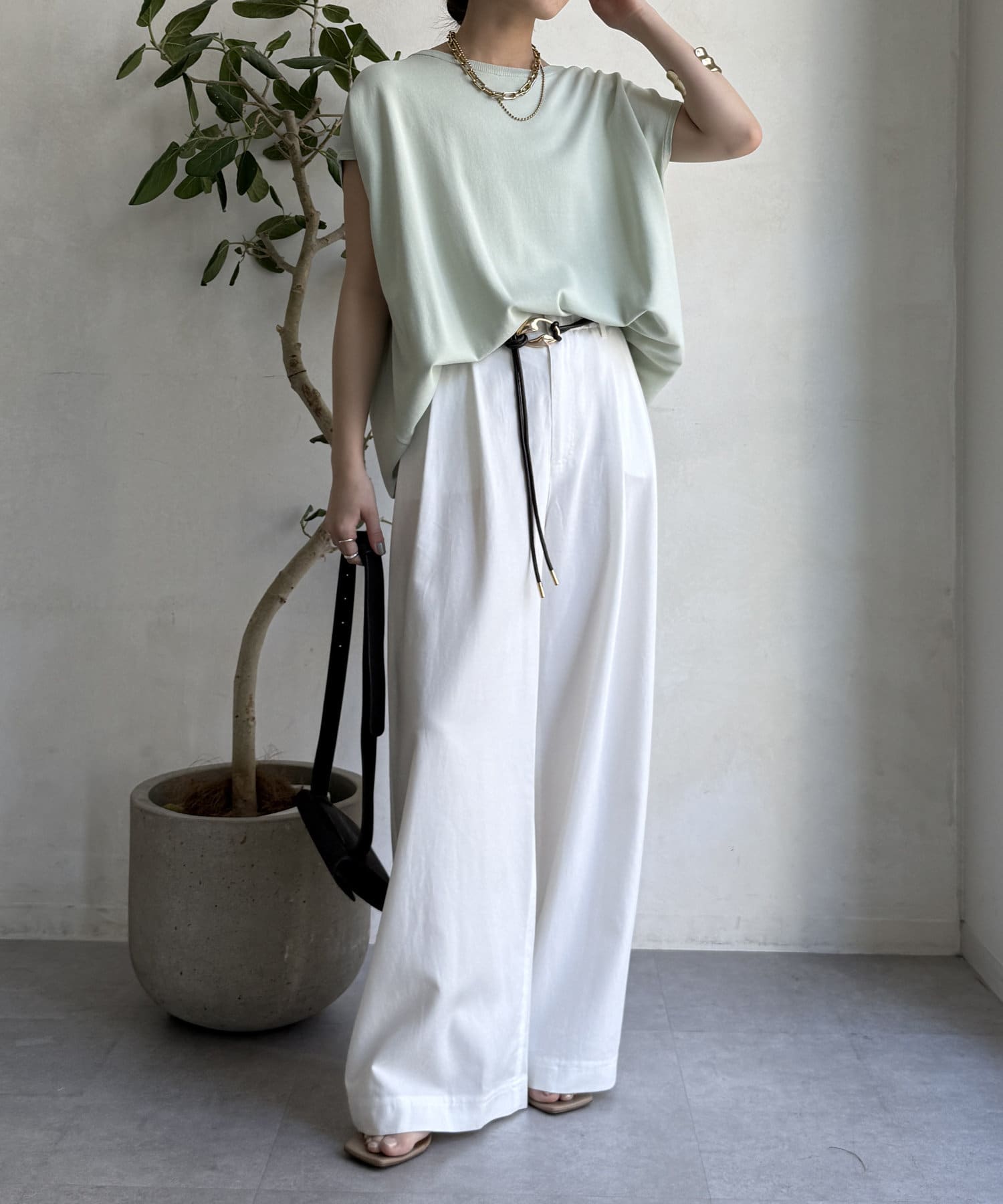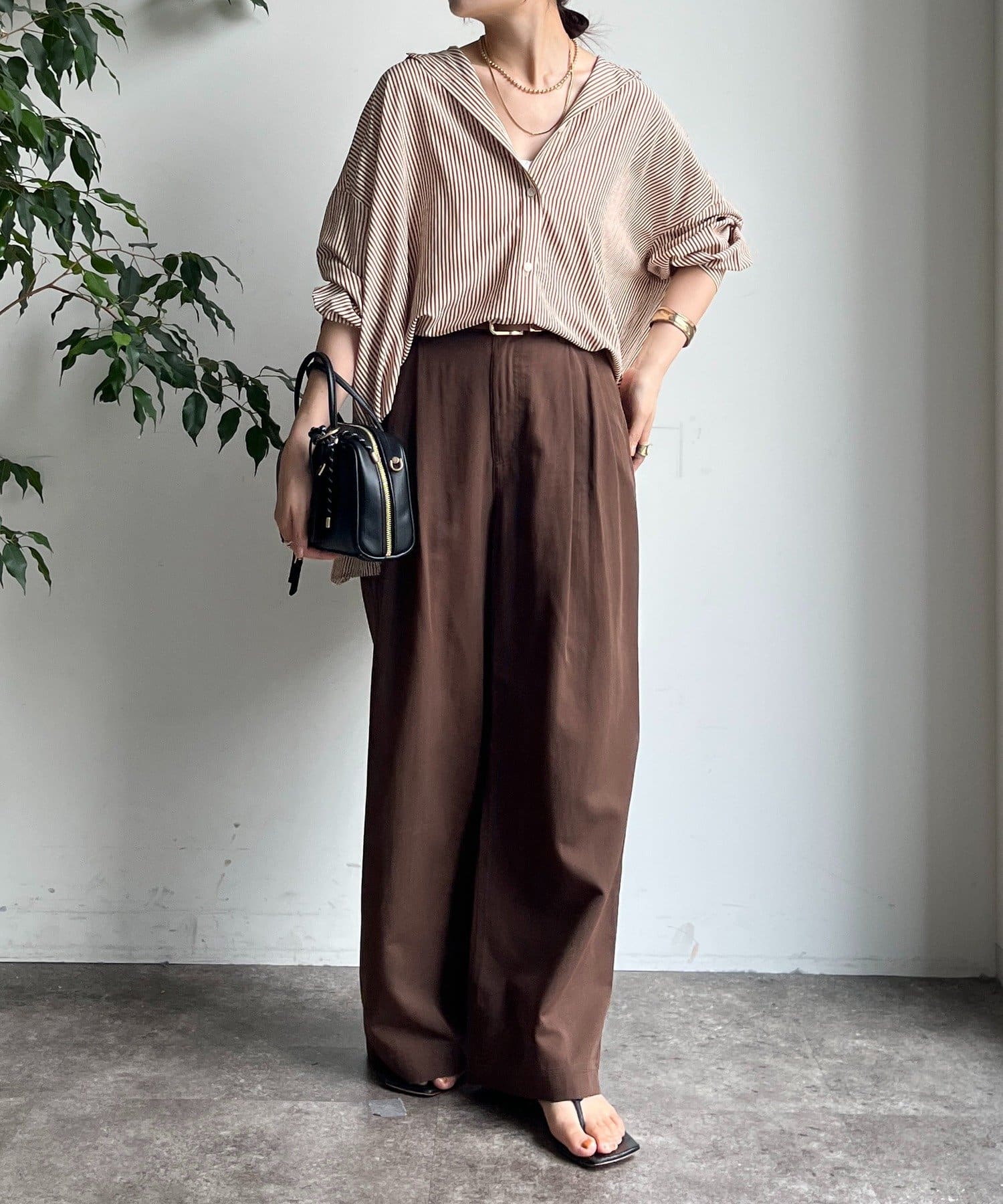 トレンドのワイドシルエットながら、すっきり見えるような絶妙ラインが大人に着こなせます。