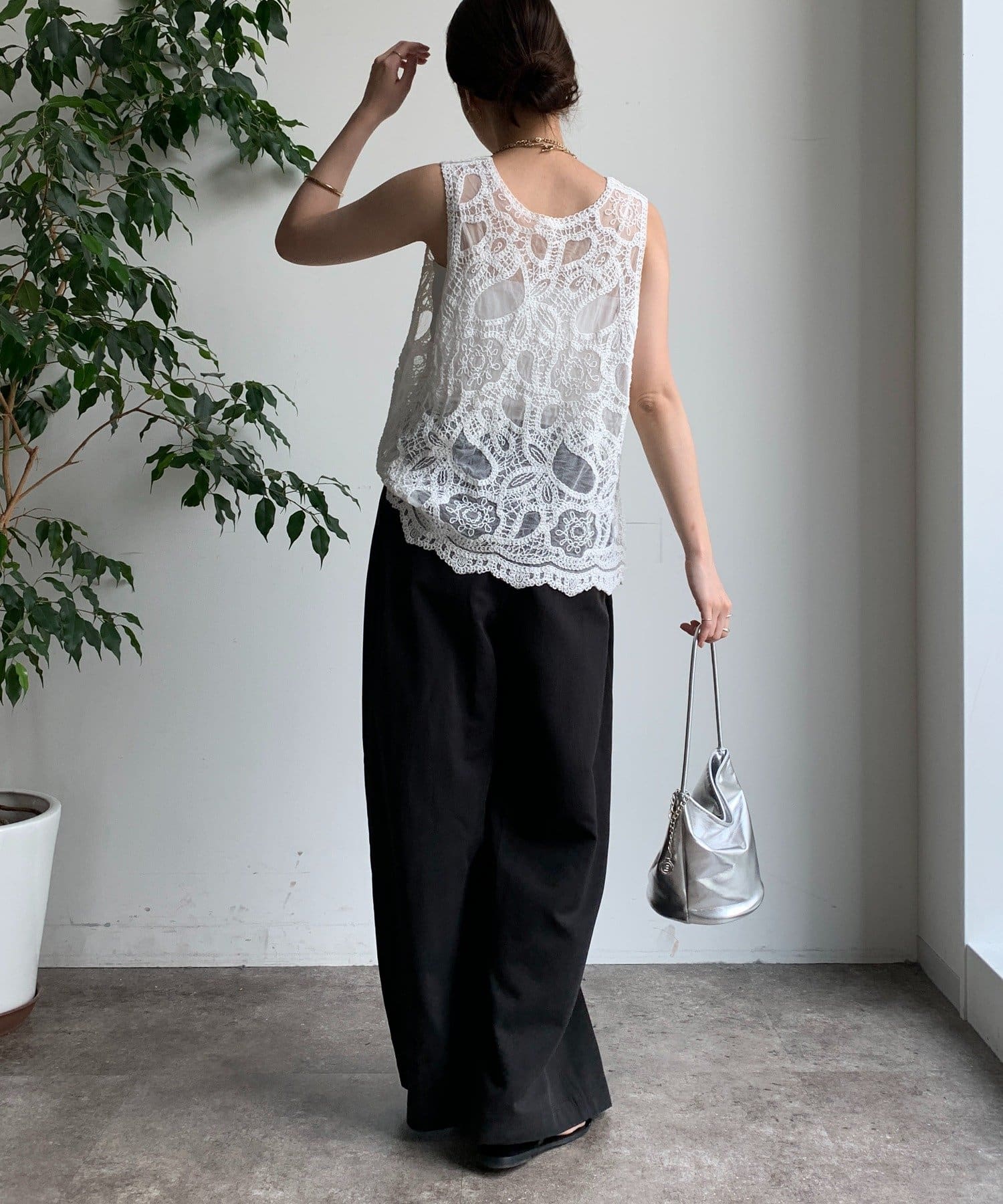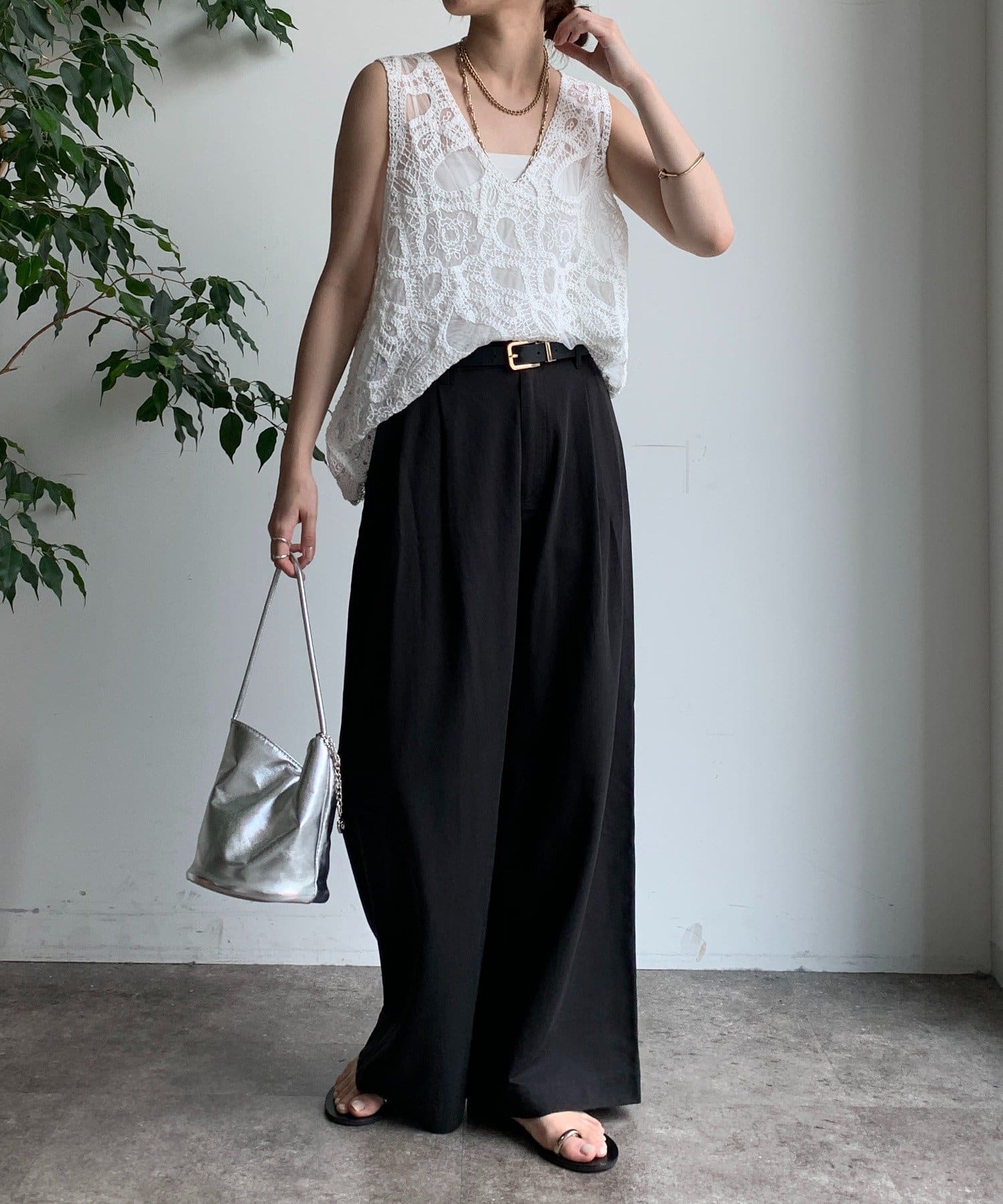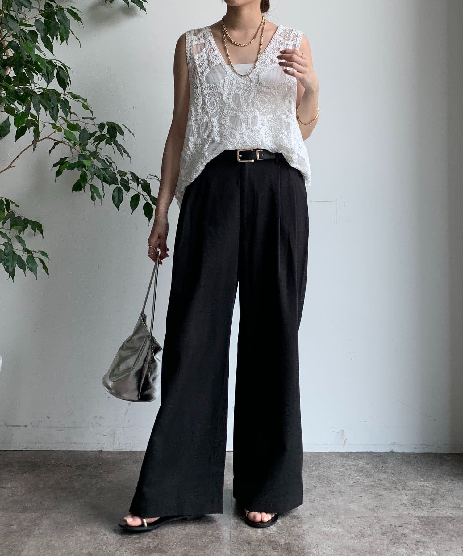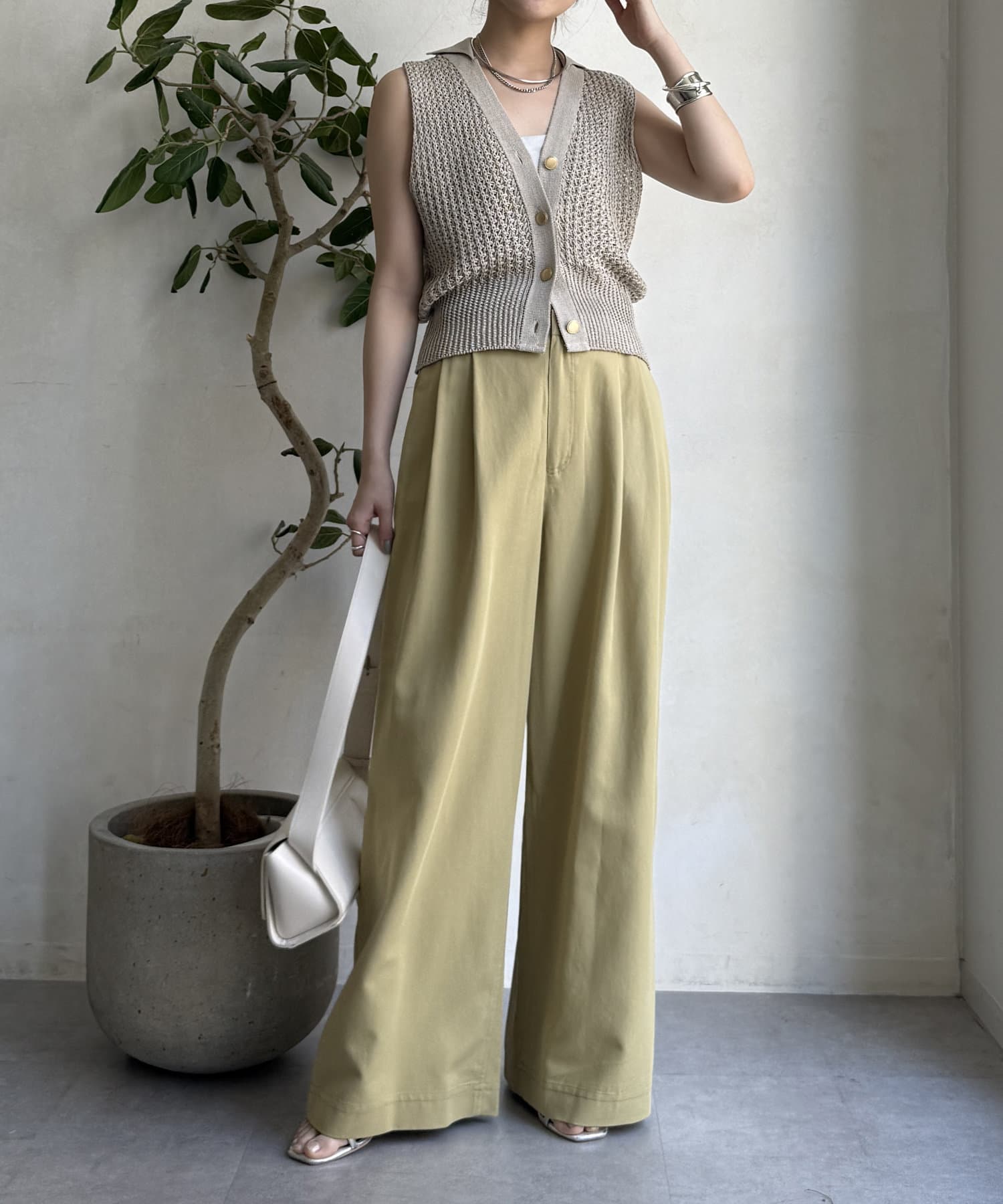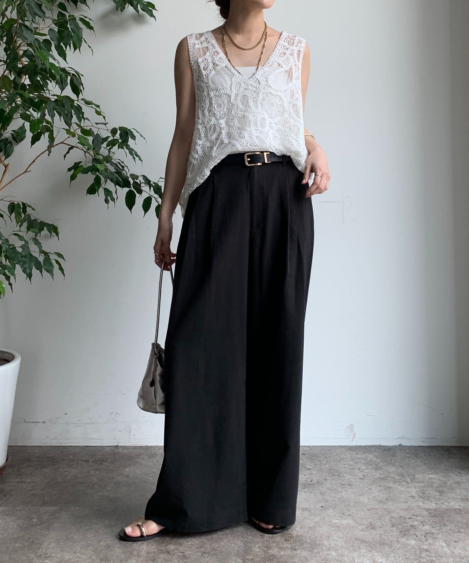 トレンドのワイドシルエットながら、すっきり見えるような絶妙ラインが大人に着こなせます。