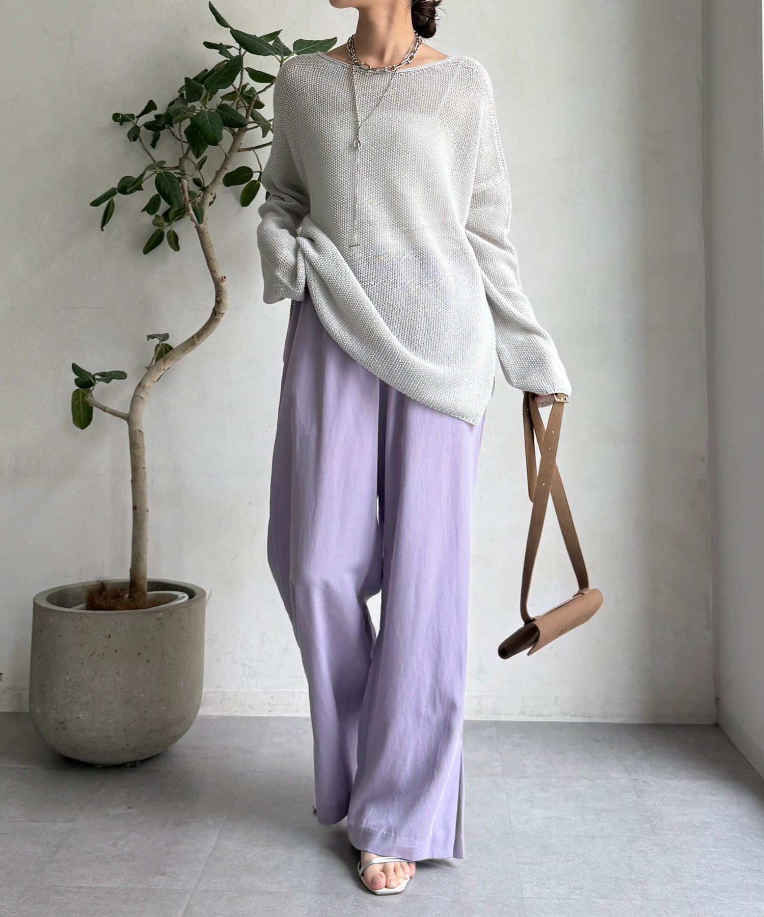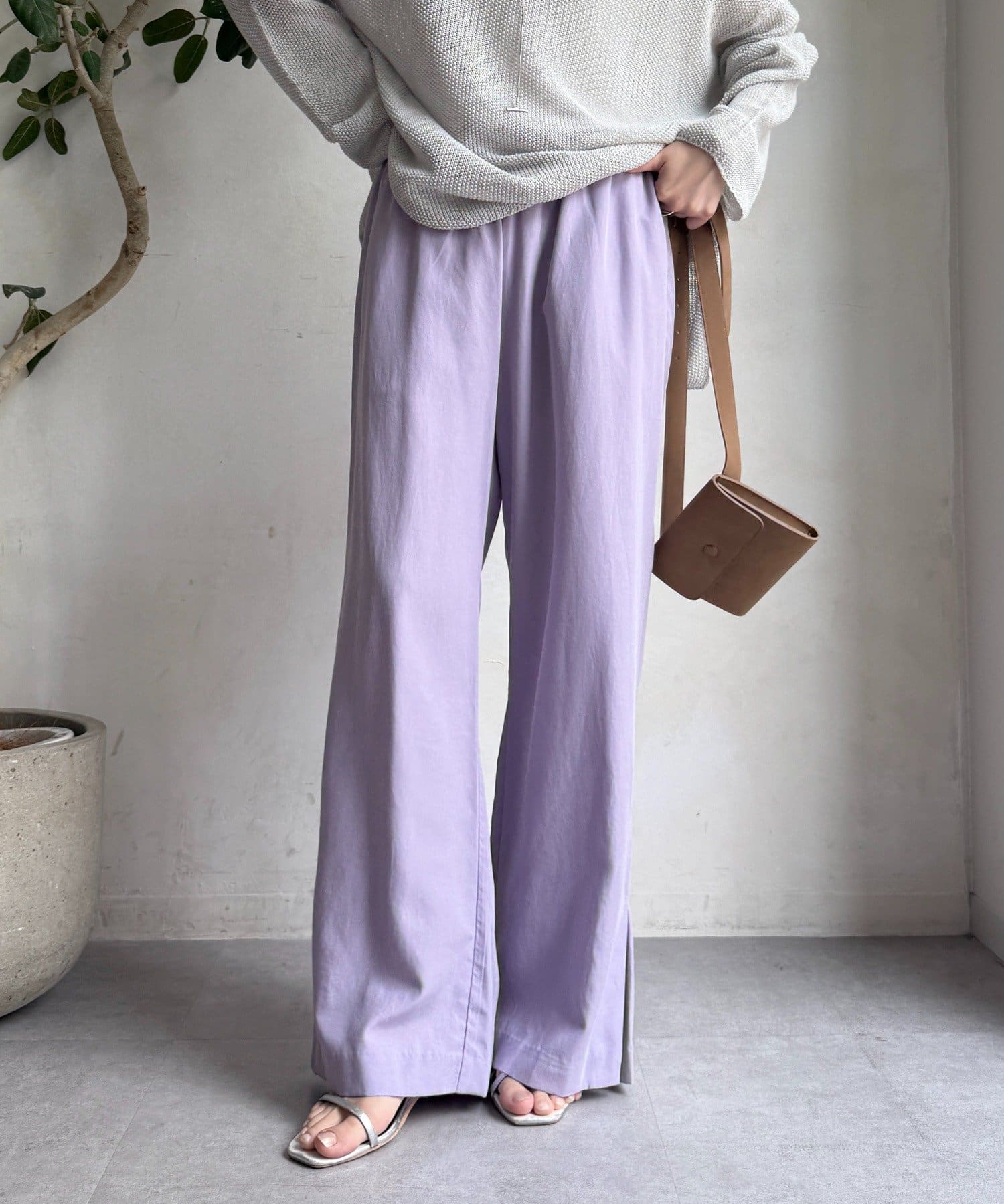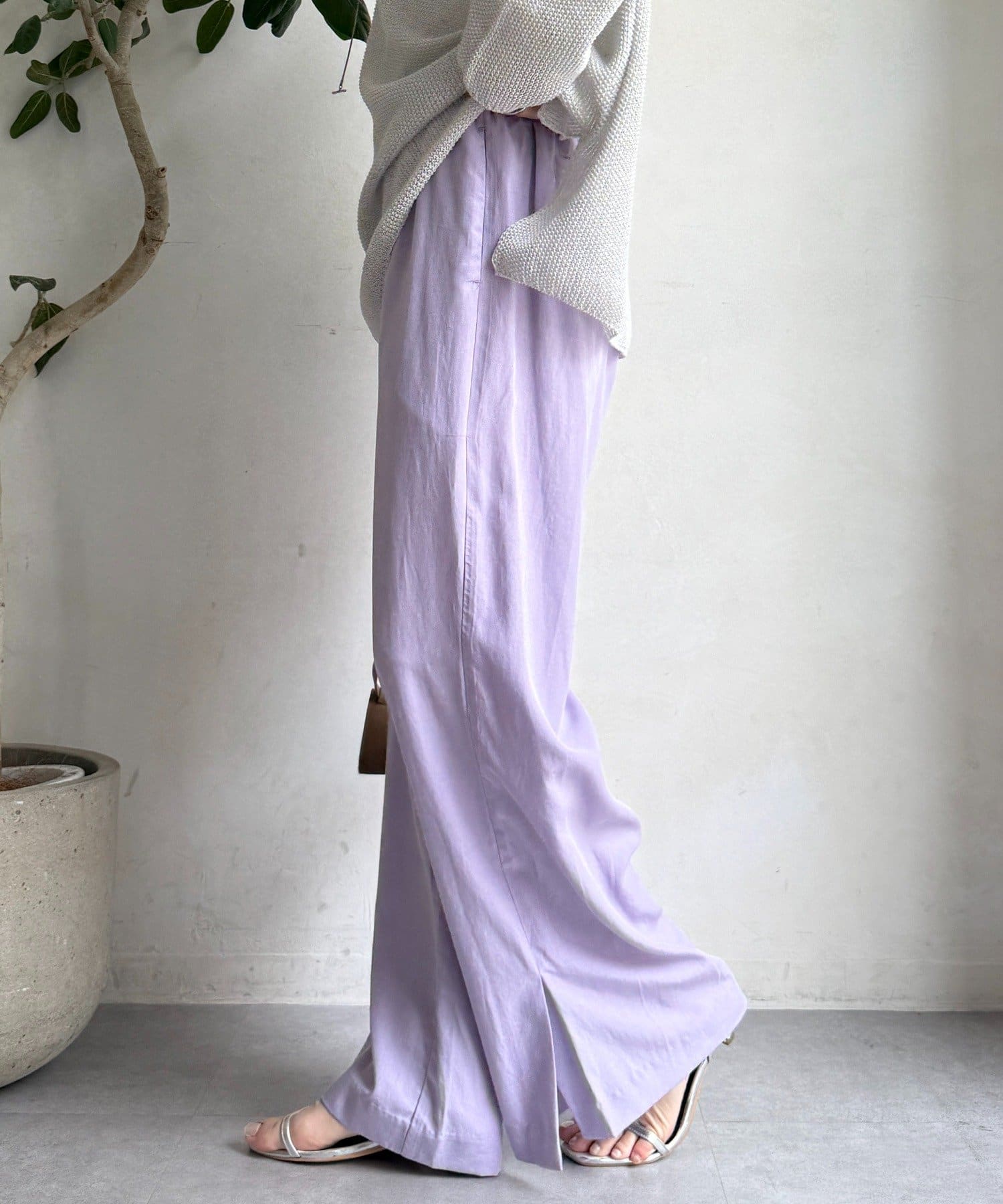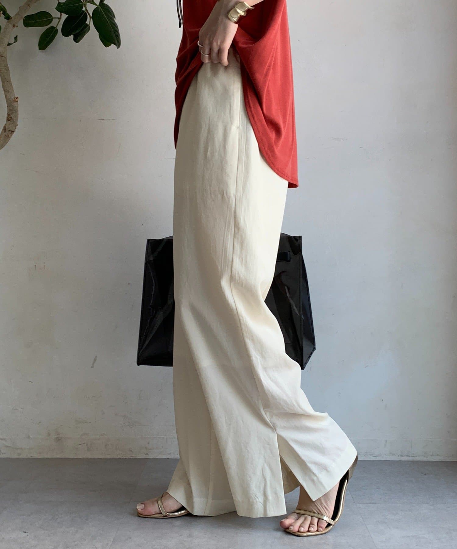 涼やかリネン素材!大人のリネンレーヨンスリットパンツ