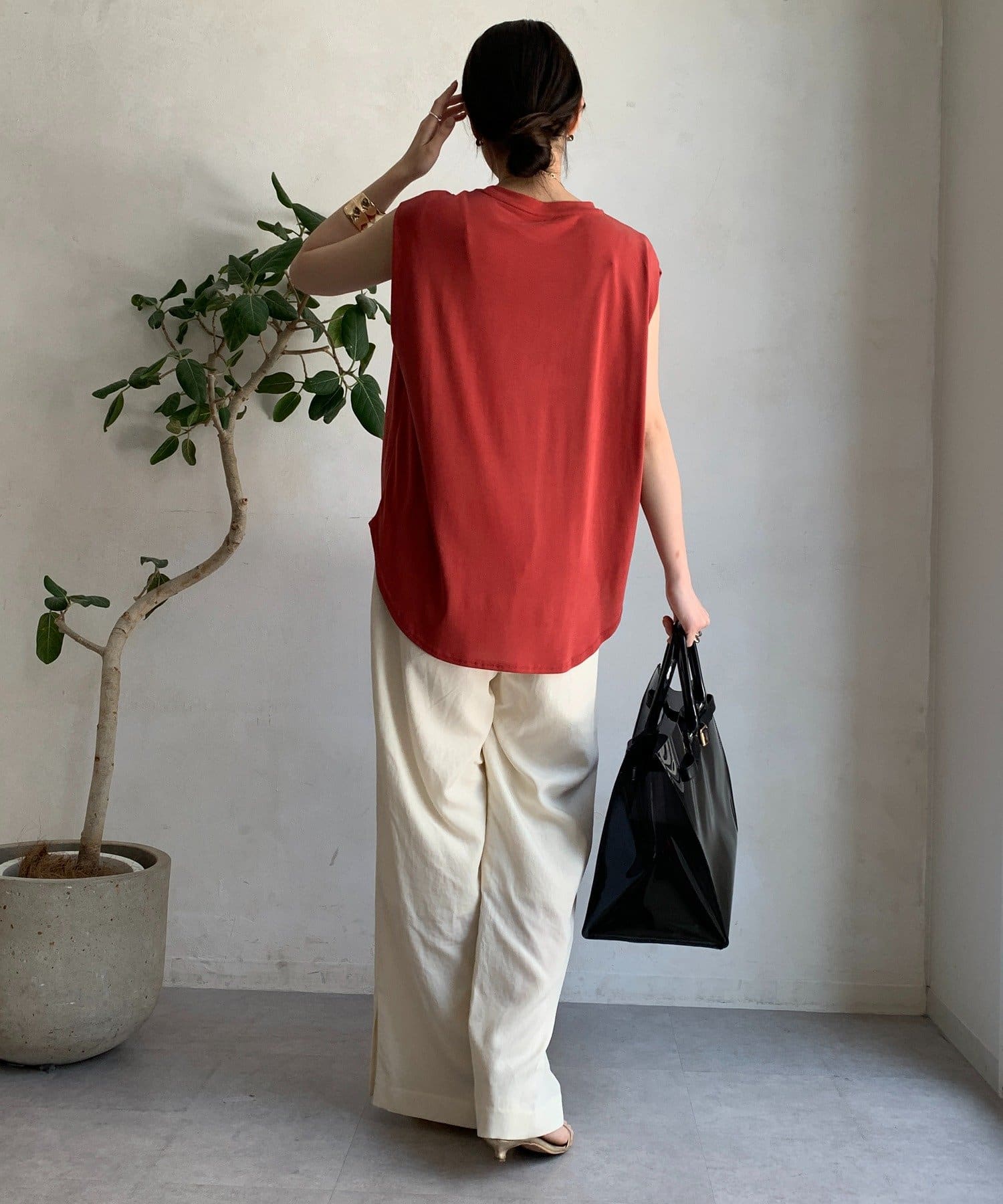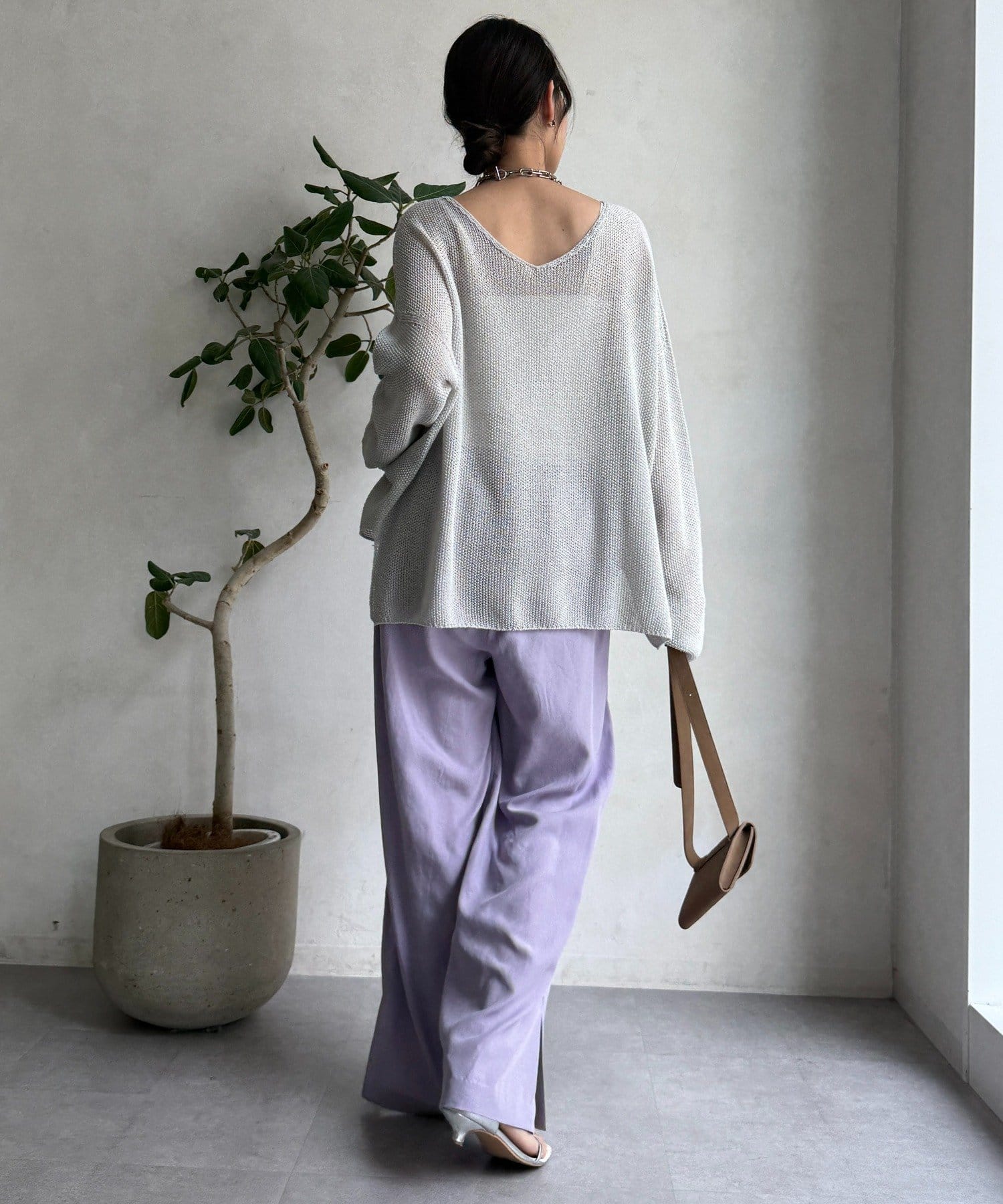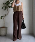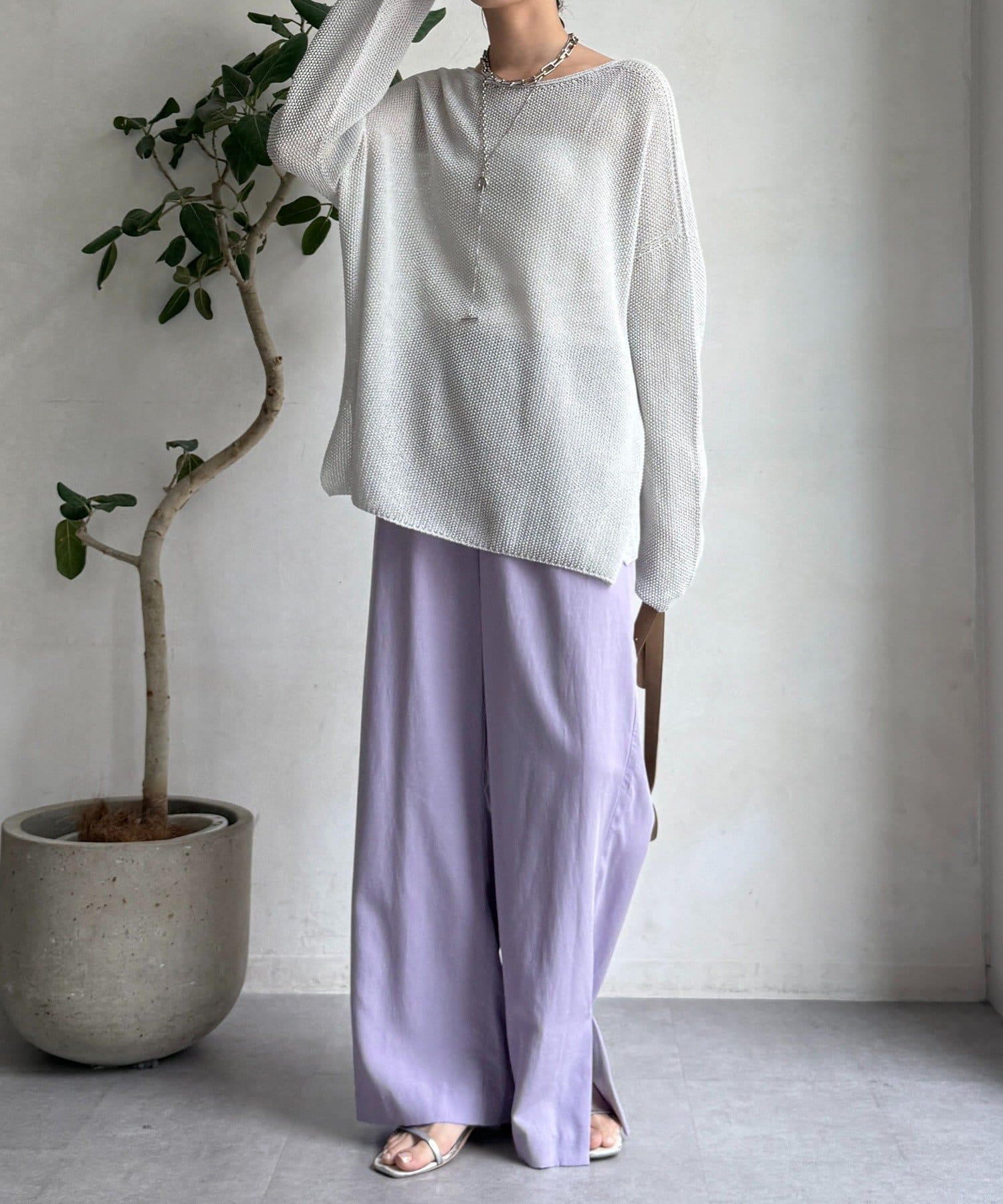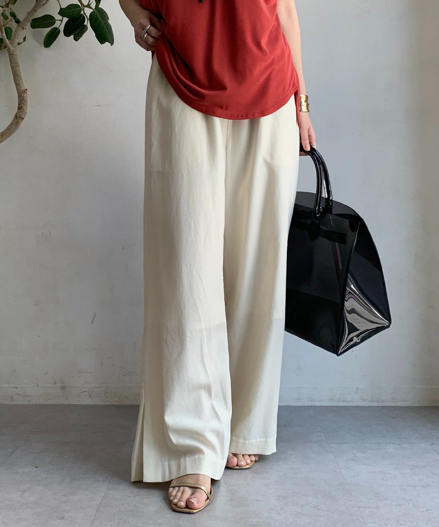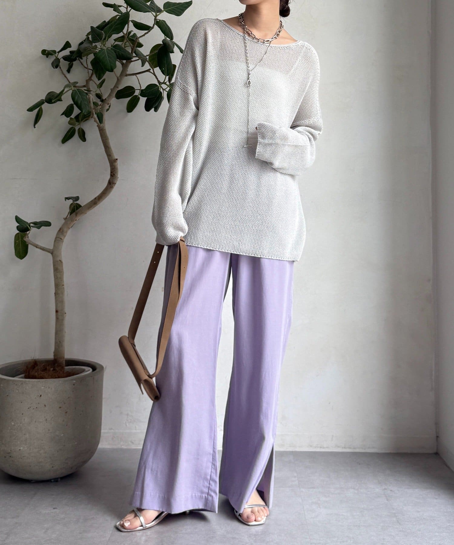 涼やかリネン素材!大人のリネンレーヨンスリットパンツ