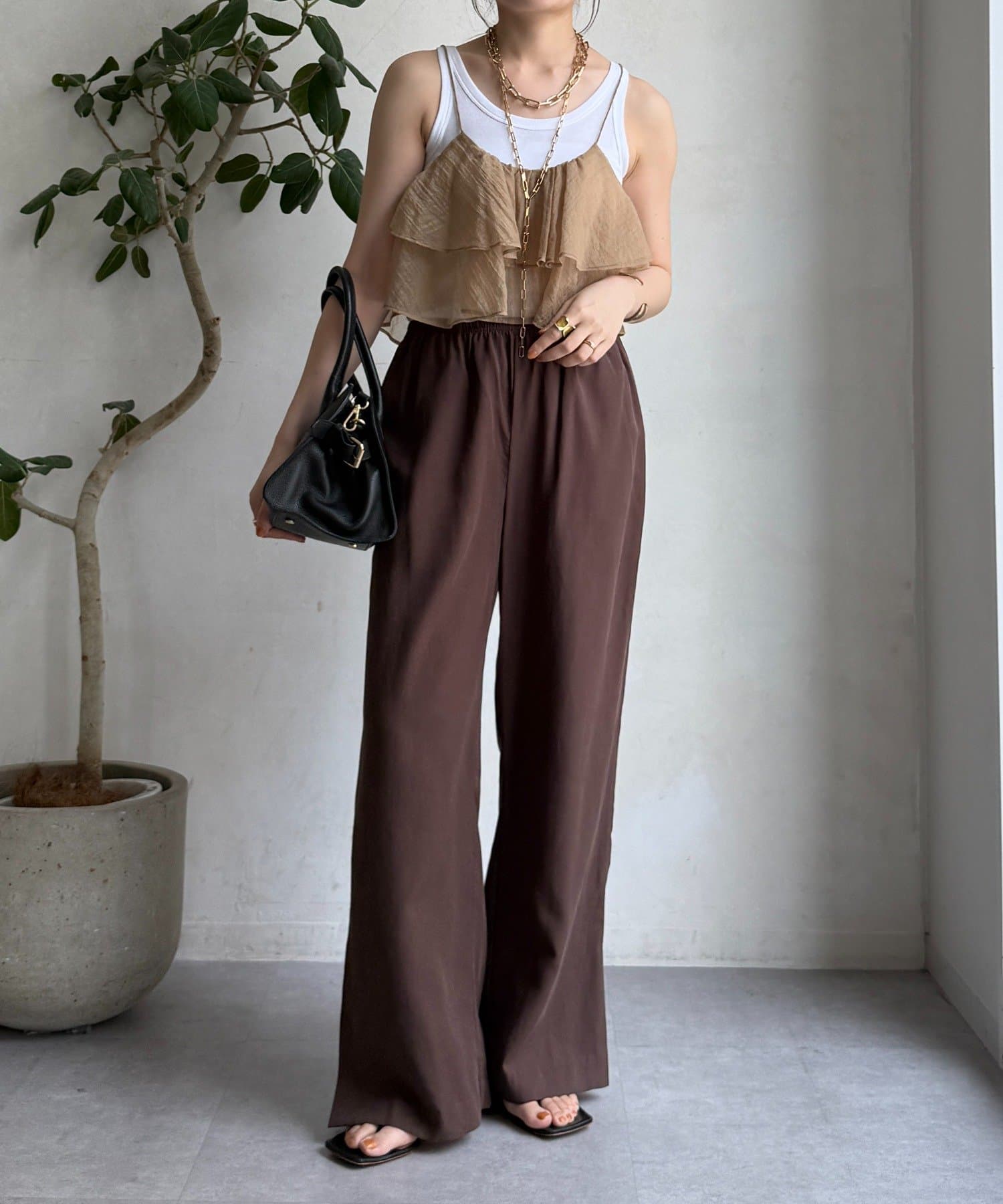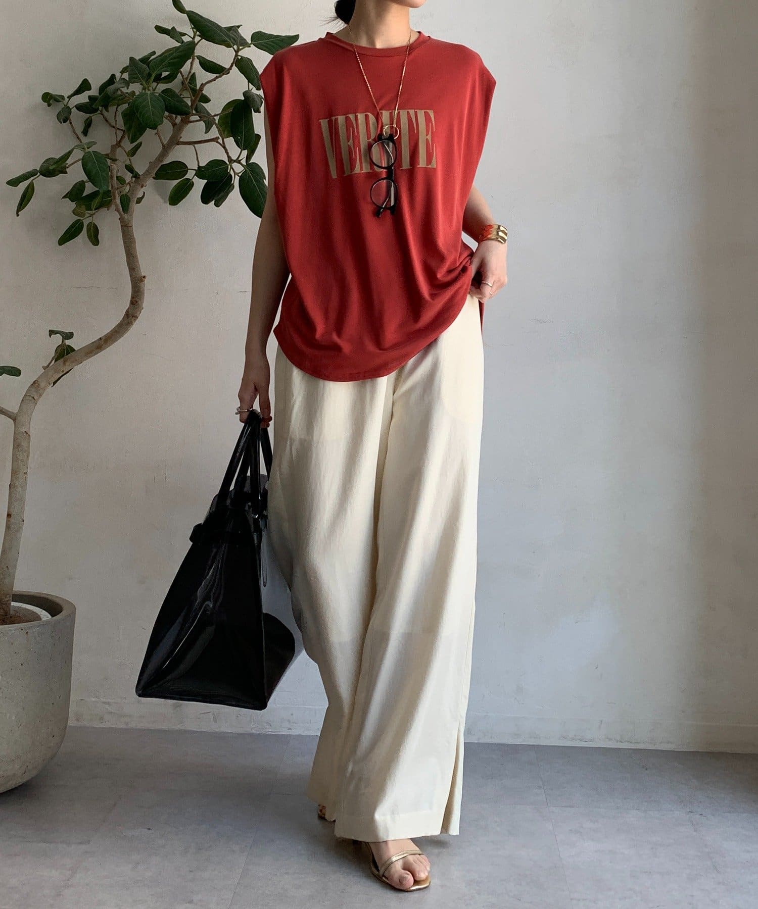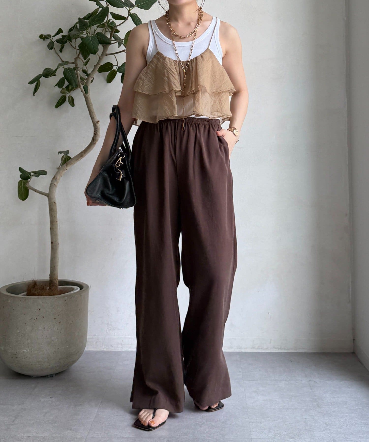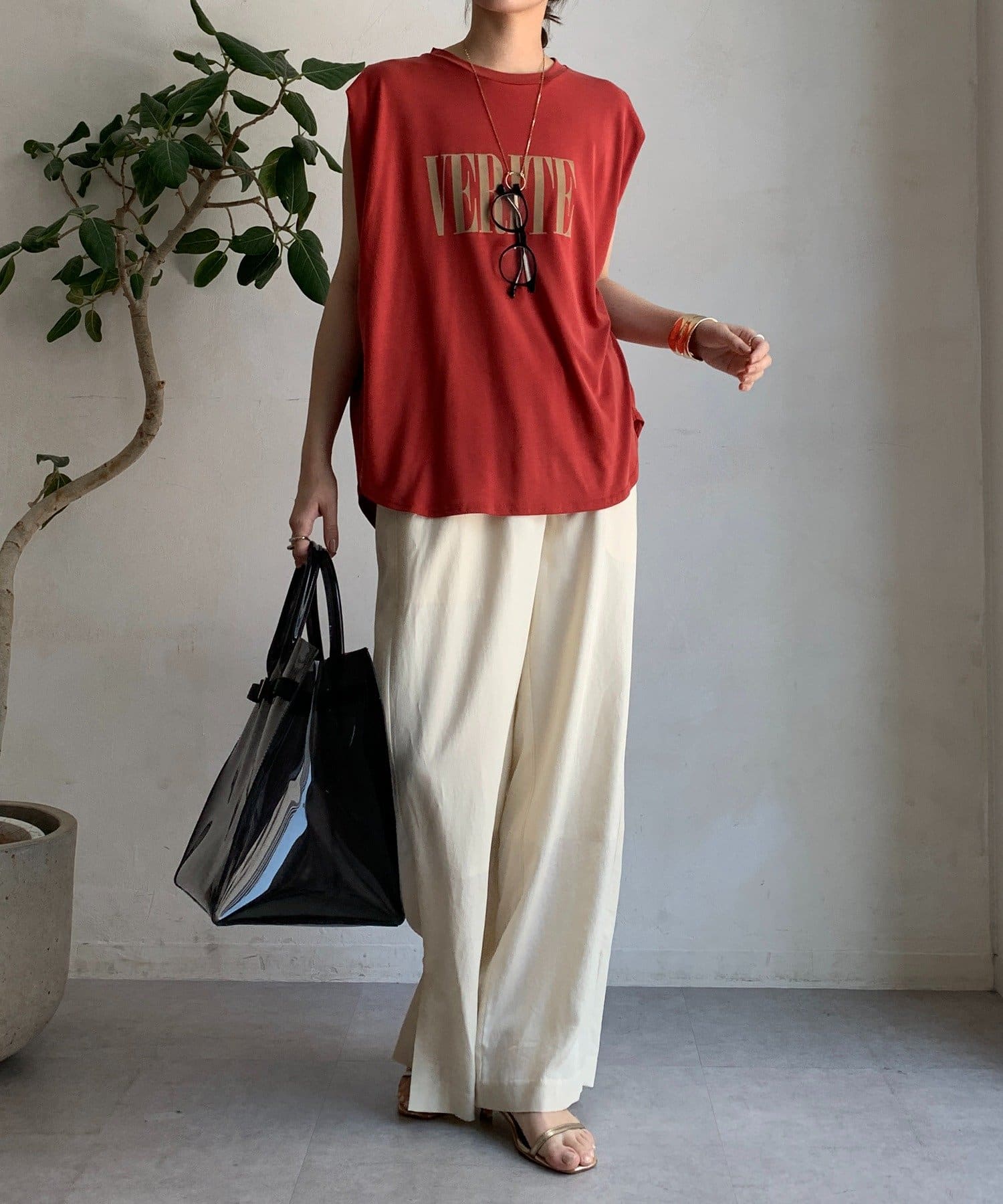 涼やかリネン素材!大人のリネンレーヨンスリットパンツ