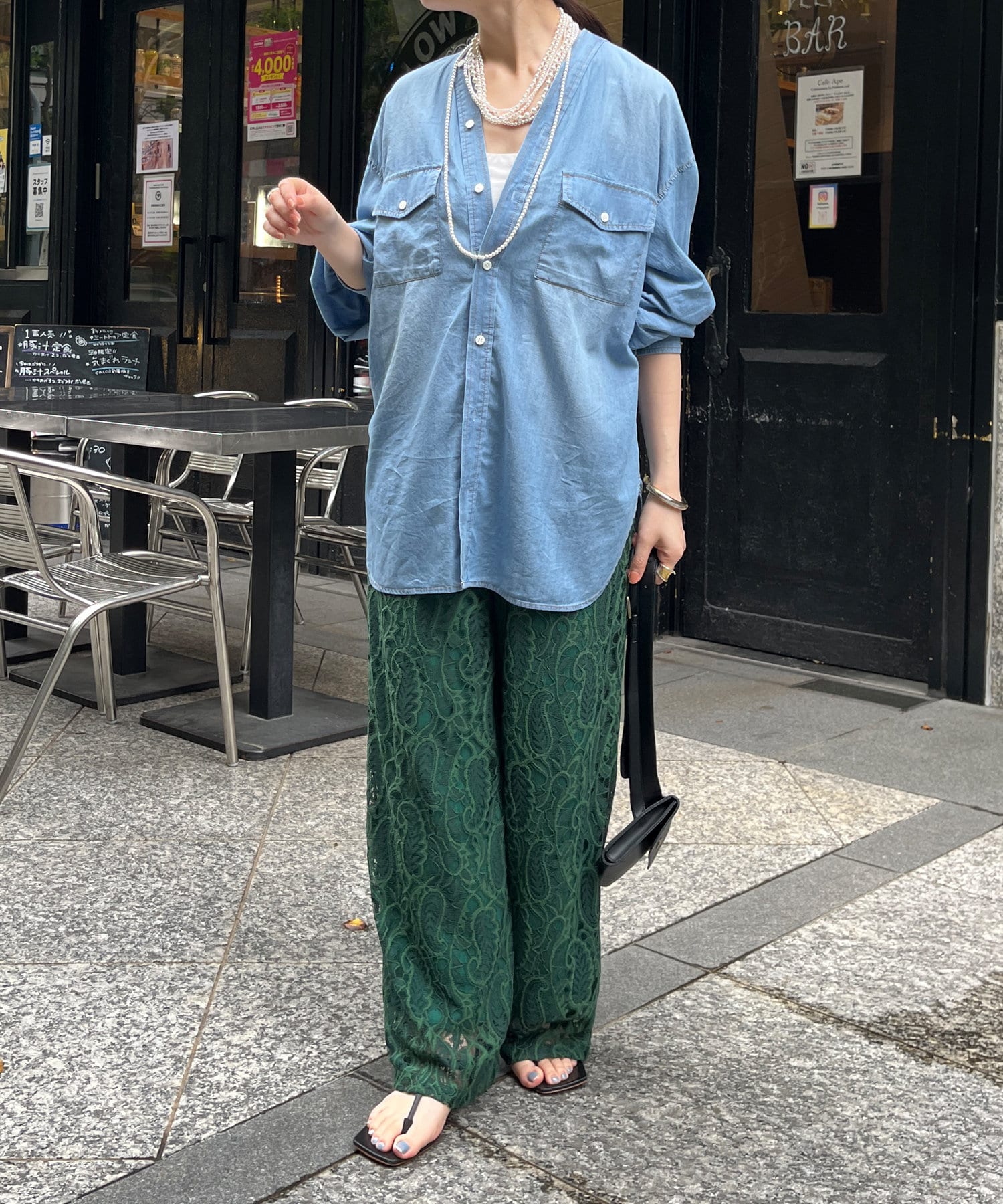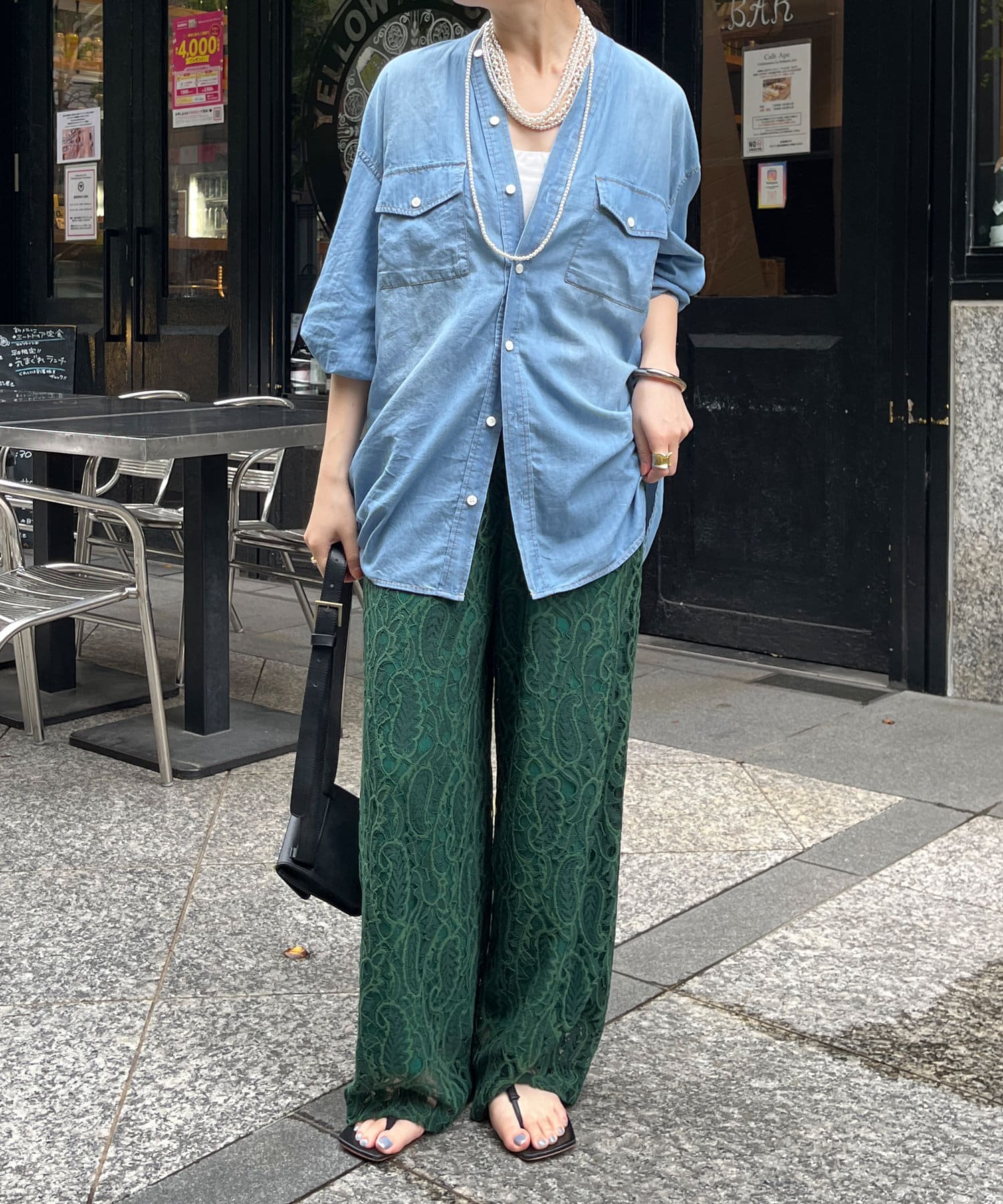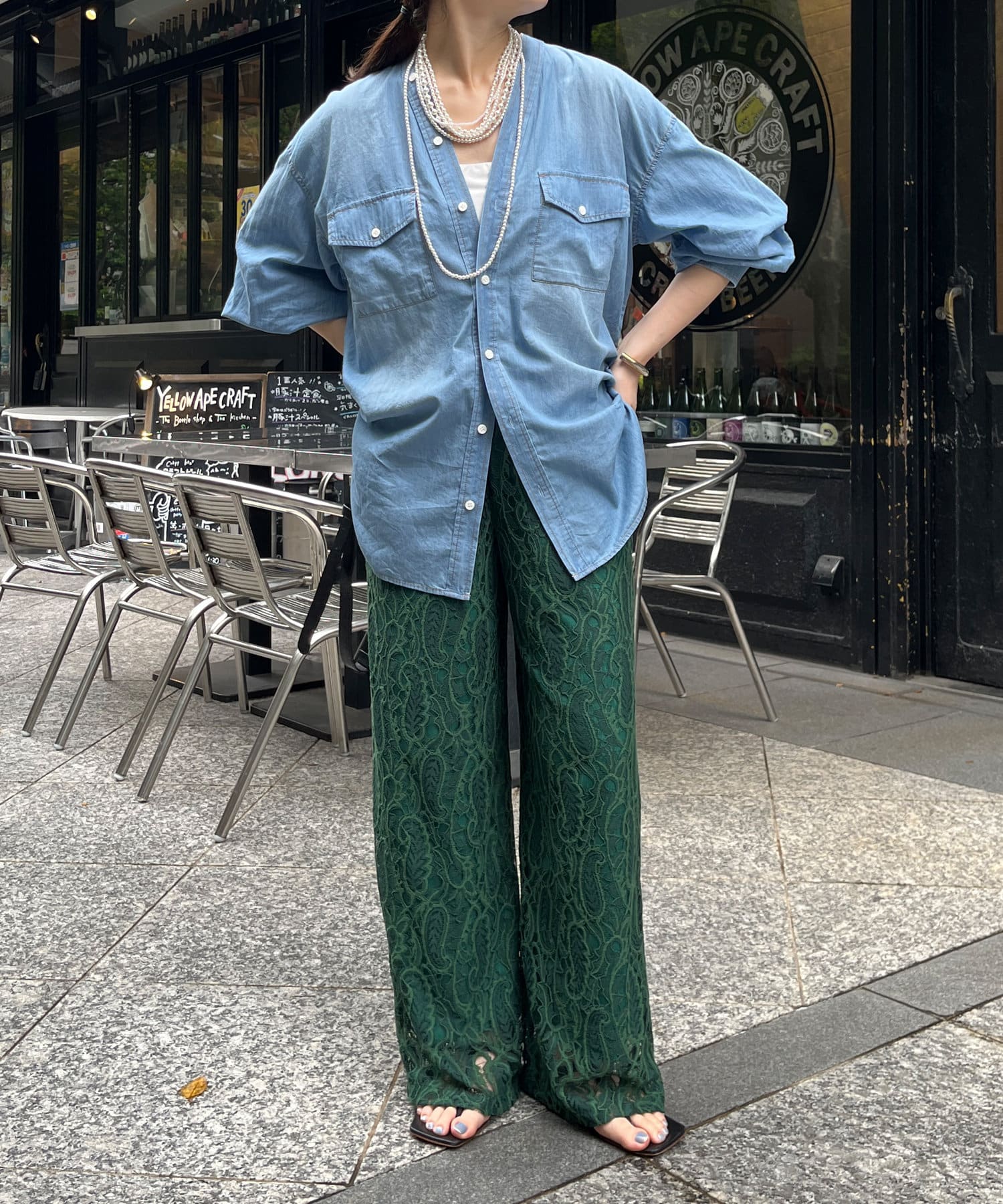 ペイズリーのレース柄が他とは違う印象を醸し、大人カジュアルにフィットするデザインに。