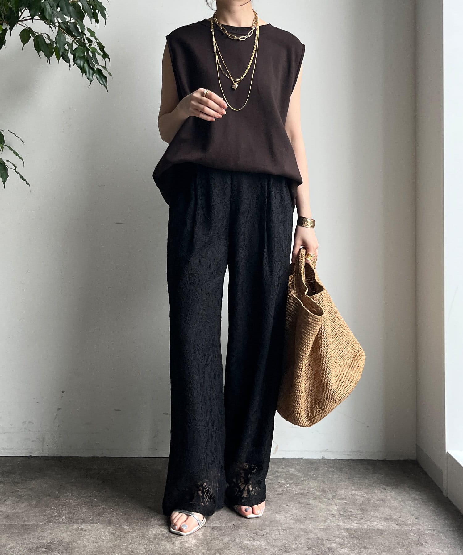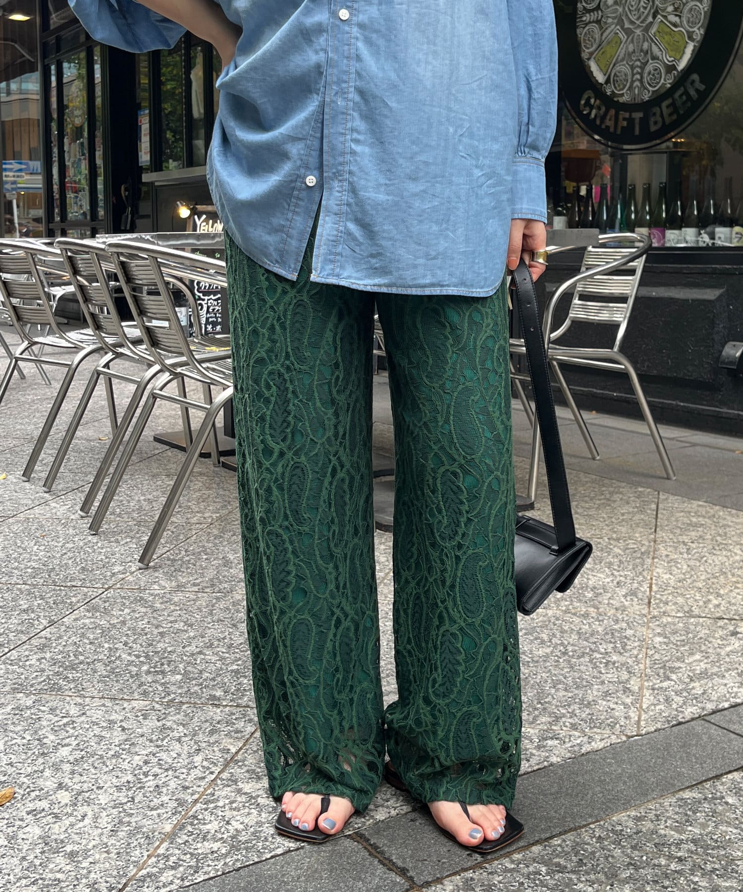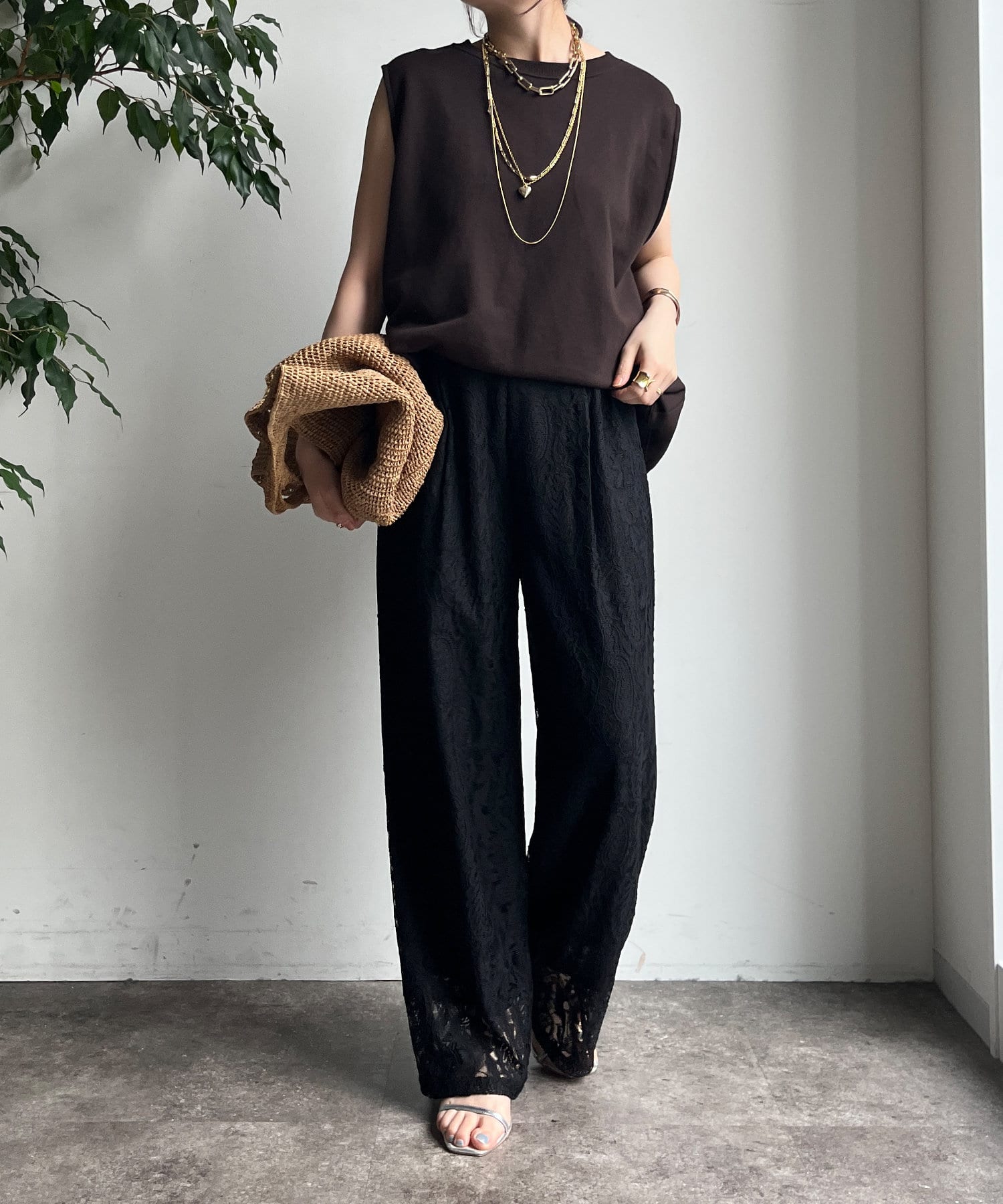 ペイズリーのレース柄が他とは違う印象を醸し、大人カジュアルにフィットするデザインに。