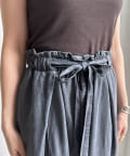 フロントでキュッと結んだリボンが、コーディネートのアクセントになり、トップスをインしたスタイルも可愛らしく決まります!