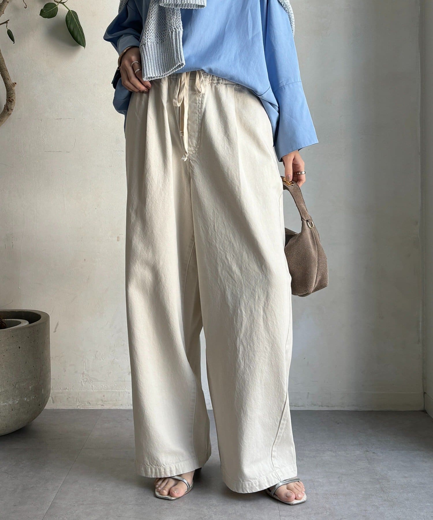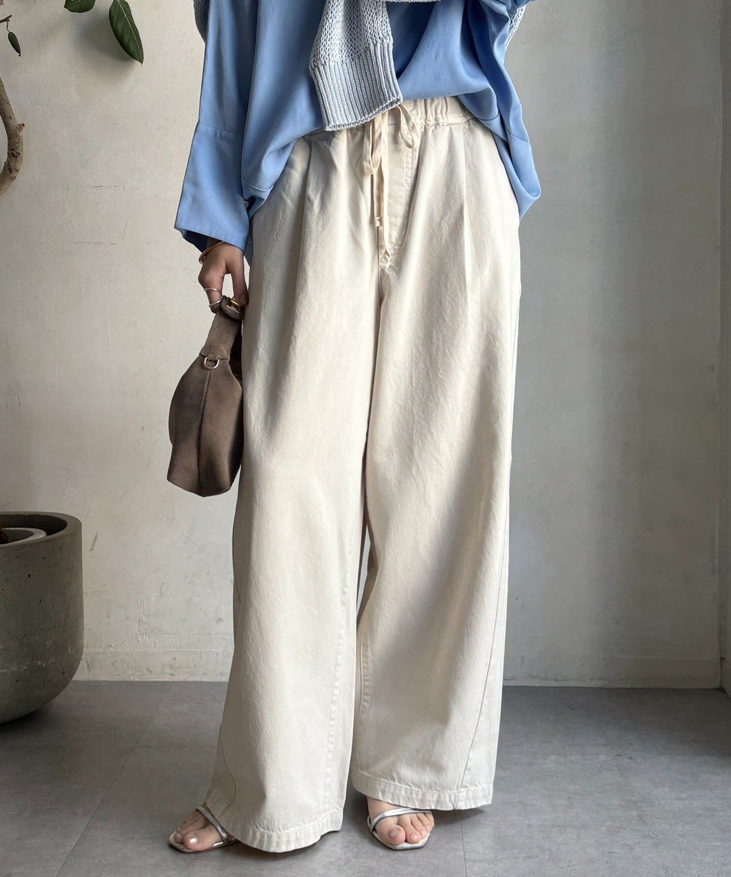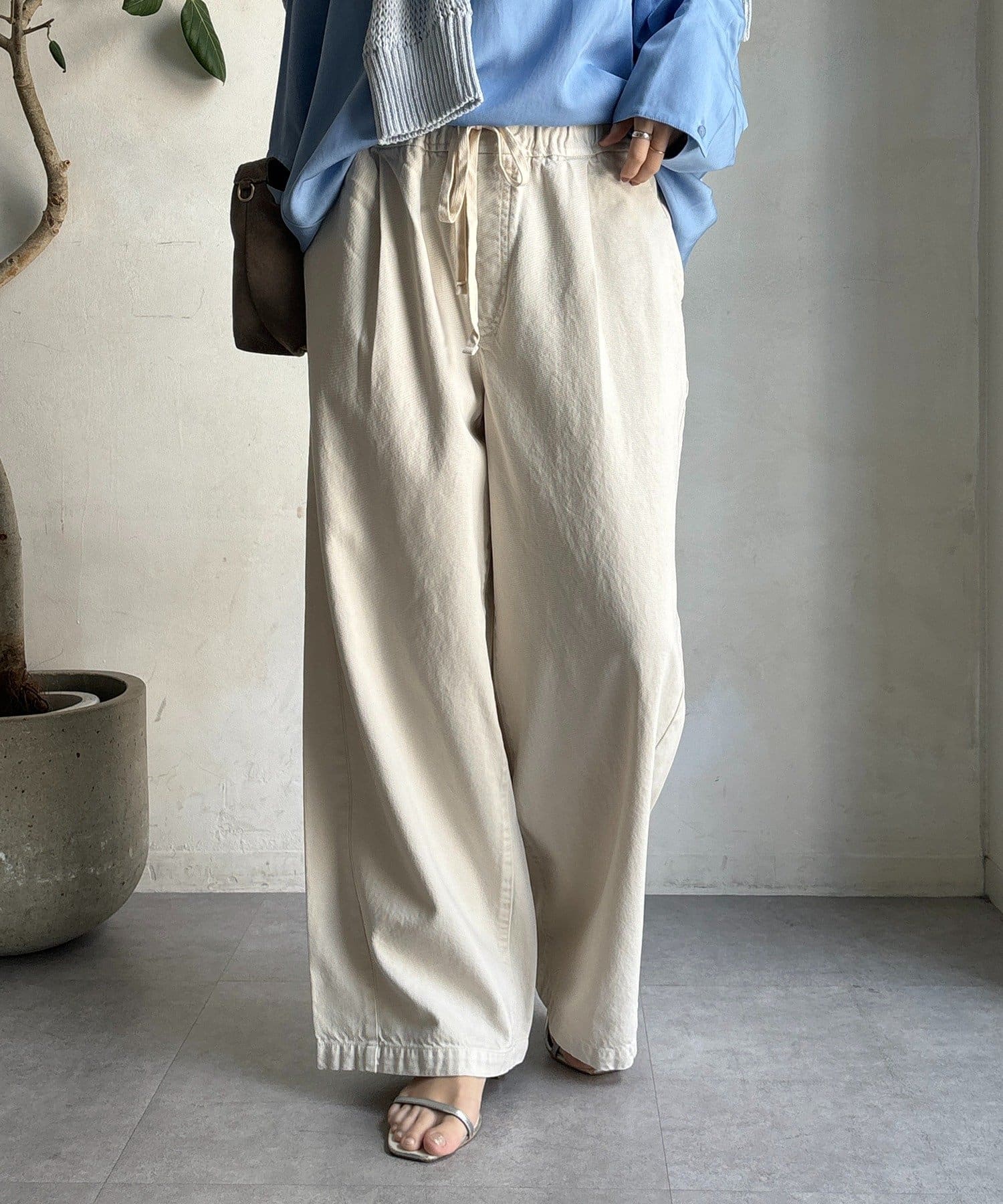 ワイドなシルエット+オールゴム仕様でイージーなデニムパンツ。